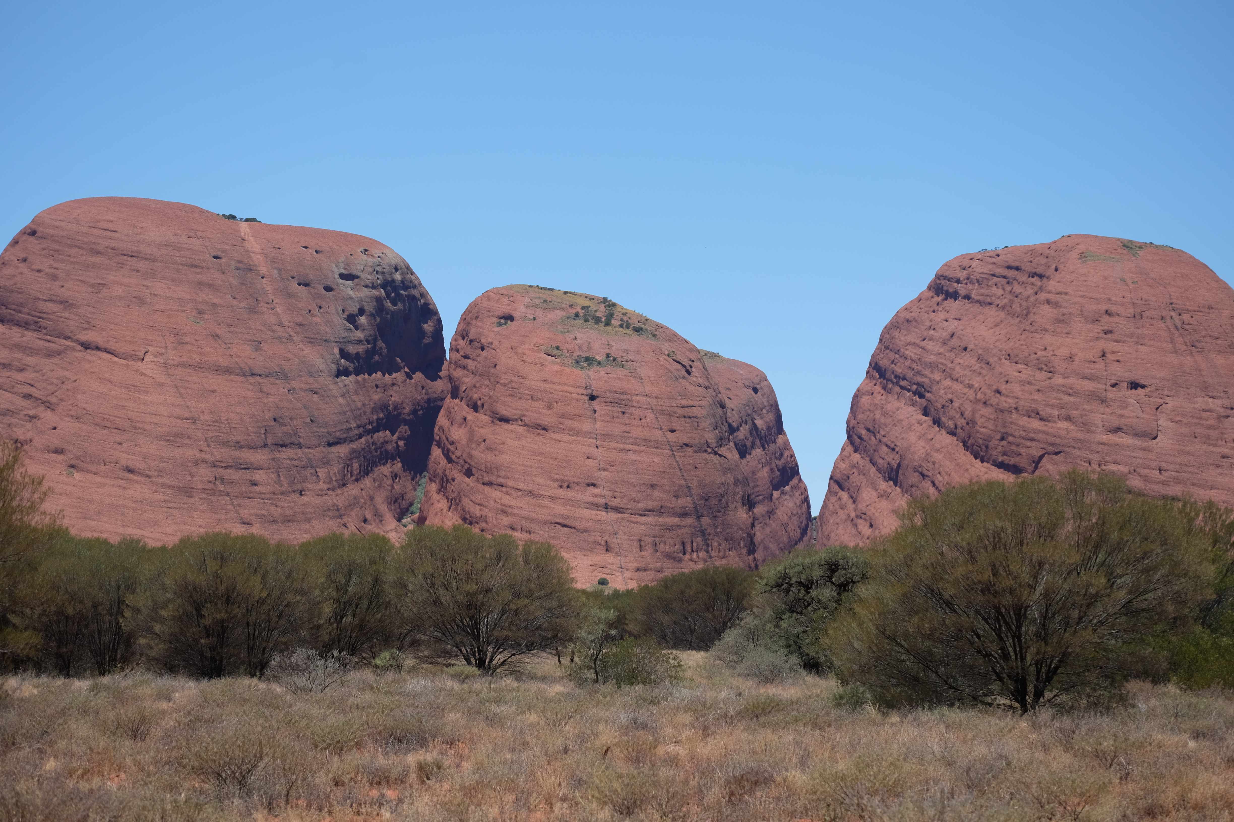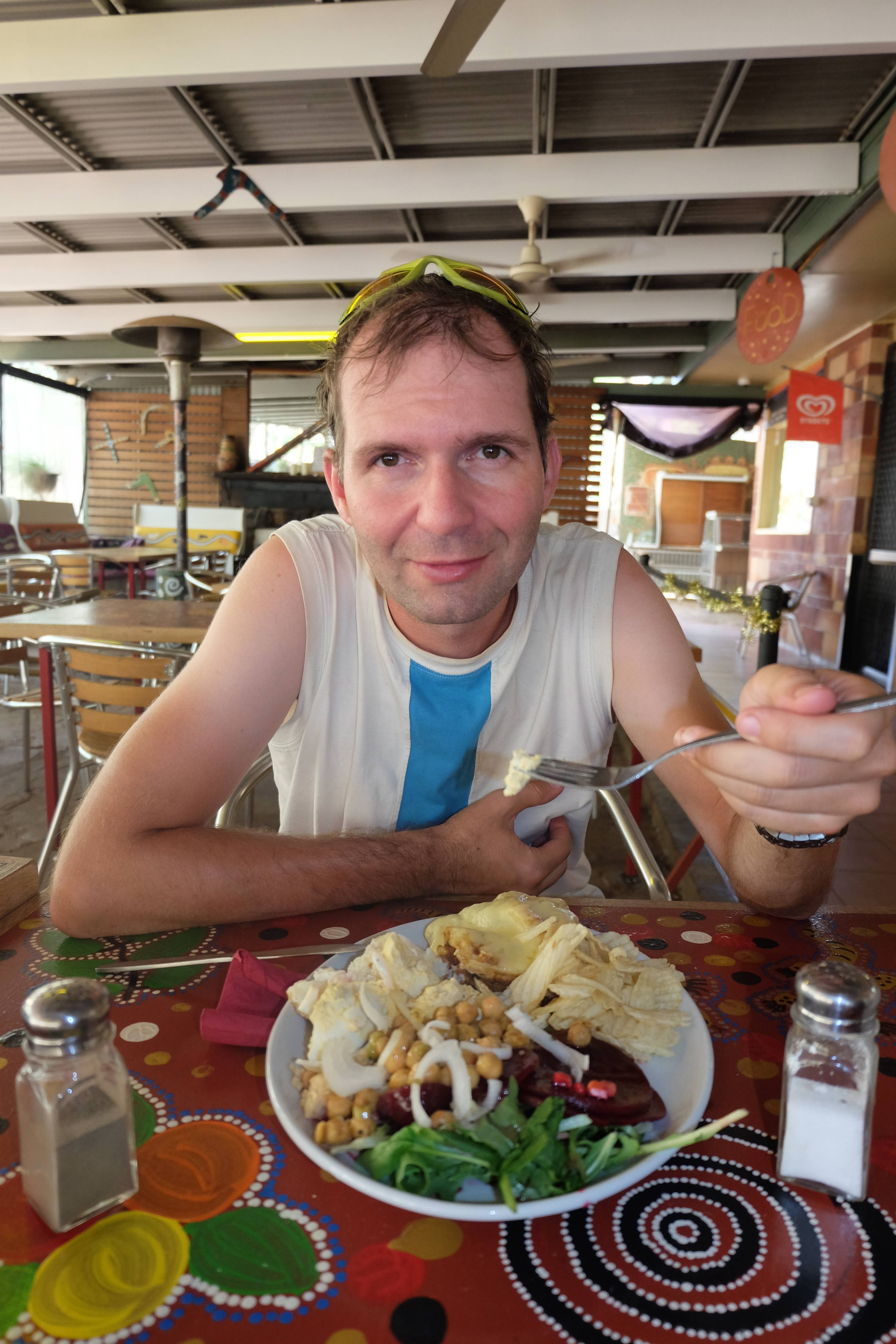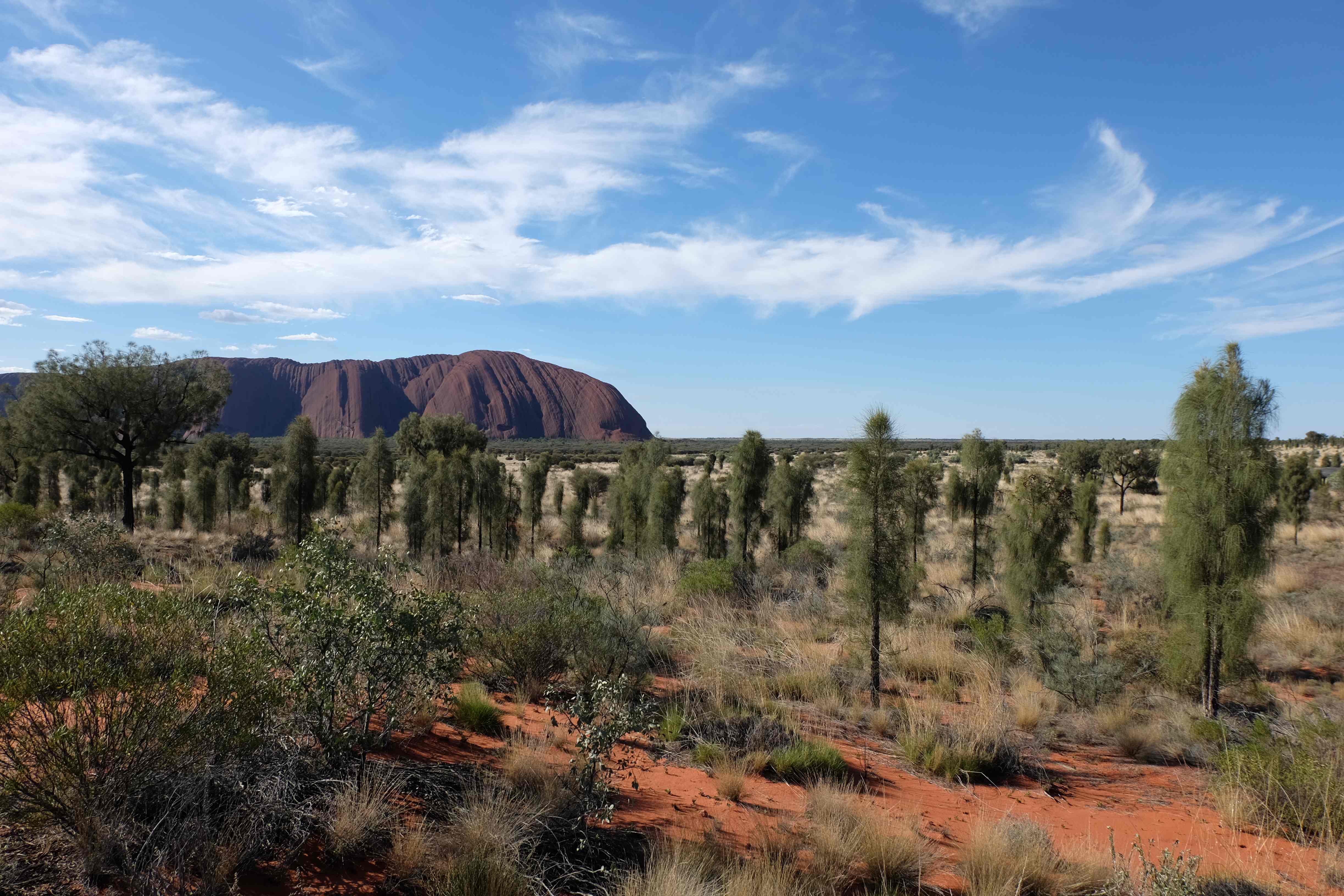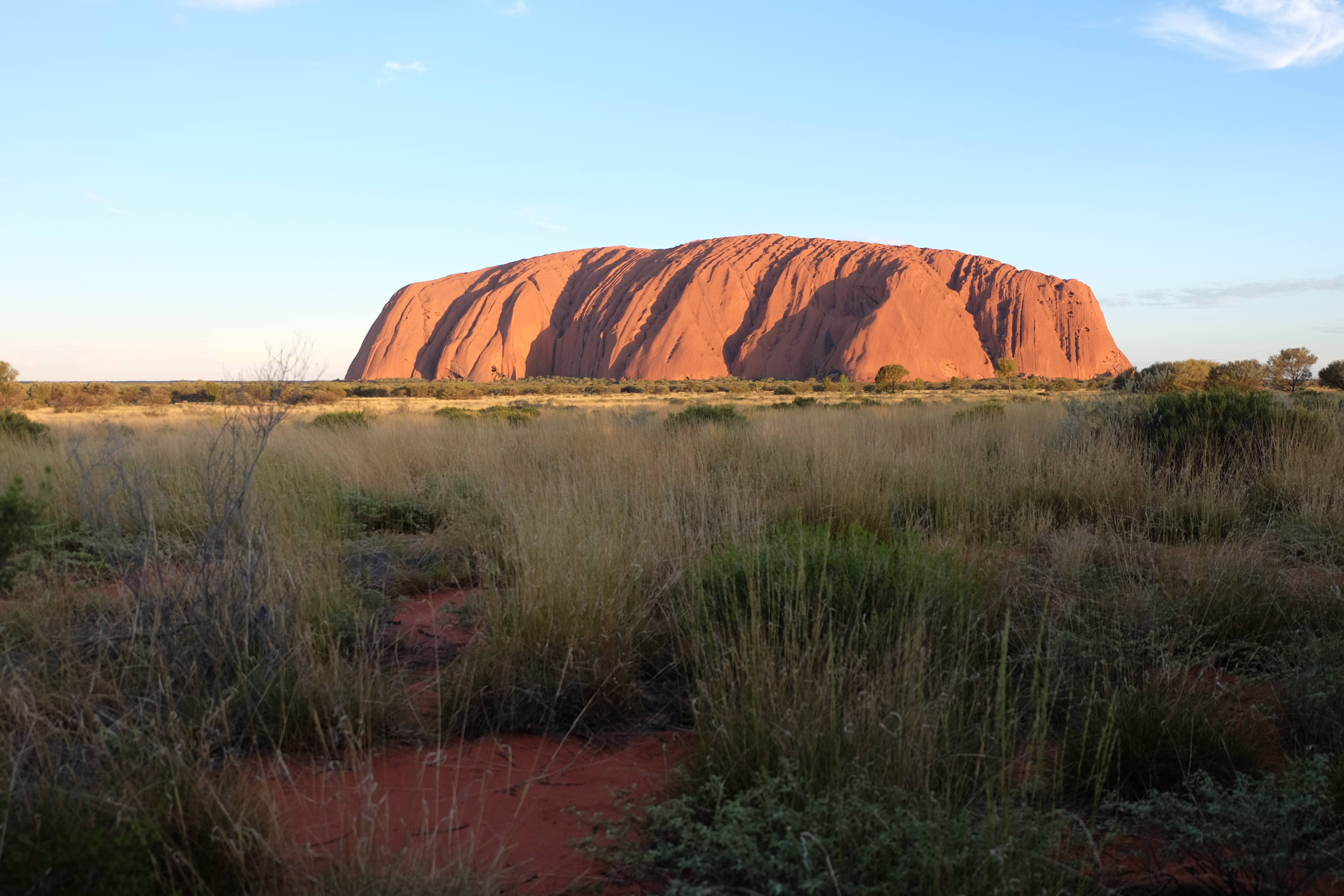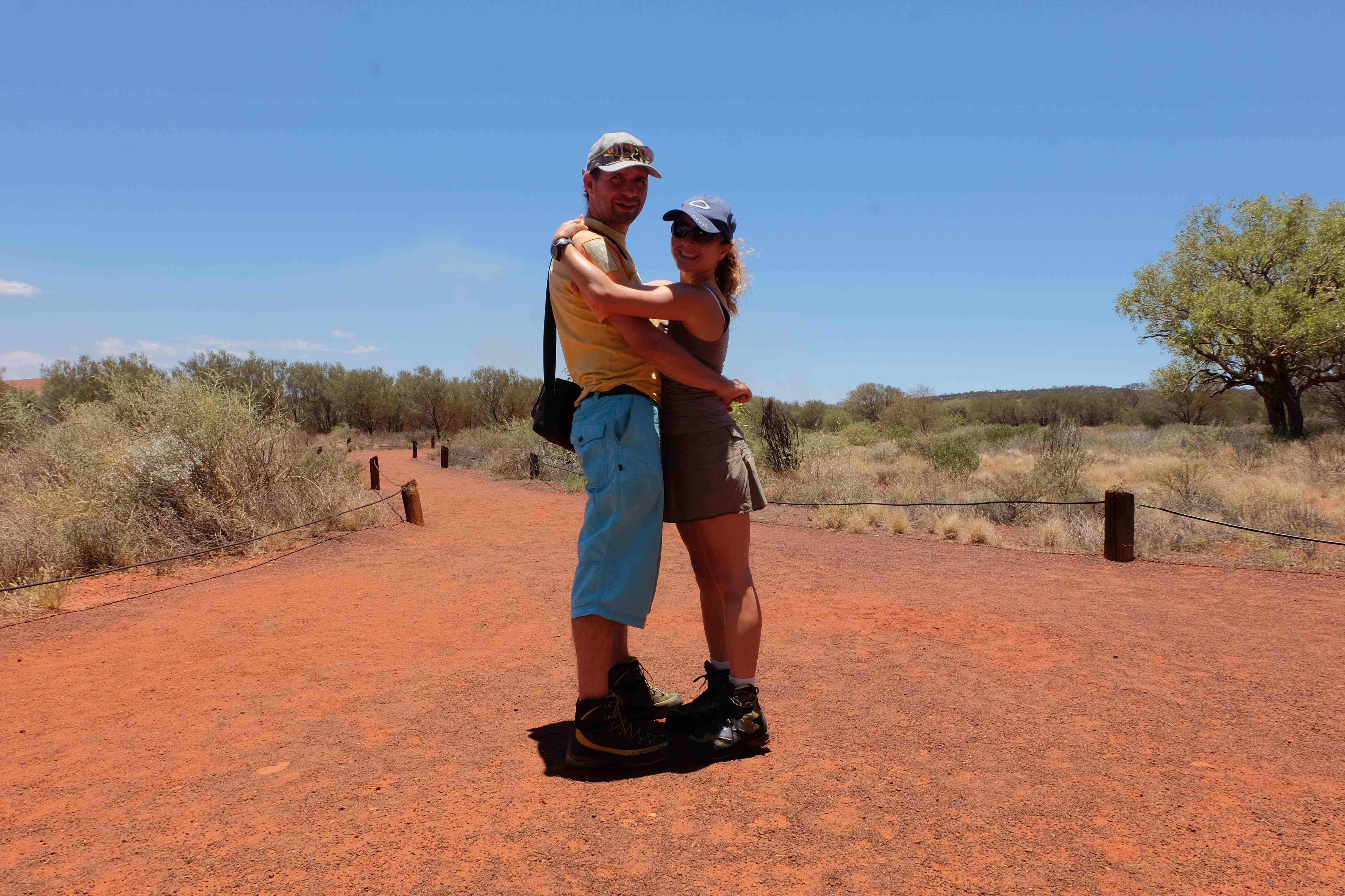 Kurz nachdem die erlösende Nachricht kam, ich müsse doch nicht in Papua Neu-Guinea Asyl beantragen, sondern dürfe in Australien einreisen, taten wir dies auch. Nach einem kurzen Halt in Sydney um bei einem Bekannten aus den schönen Manaslu-Besteigungs-Zeiten die Hälfte des Gepäckes loszuwerden, ging es schnurstracks weiter ins feurige Zentrum: das trockene, wüstenhafte Ayers-Rock. Nun, stellt euch mal folgendes Szenario vor: 2 homo europaeicus schauen sich die Australien-Karte an, sehen dort mitten in Nirgendwo einen Flughafen und eine Stadt: Yulara – und buchen überglücklich zwei Flugtickets dorthin statt ins 600 km weitergelegene Alice Springs, meinend sie hätten somit viel Geld und Zeit gespart: Ayers Rock und die schönen Nationalparks unterwegs seien schlussendlich der Grund des dortigen Aufenthaltes, was gibt es also Besseres als direkt dort zu landen? So würde man schön ein Auto mieten können, die gewünschten Sehenswürdigkeiten erkunden und budget-schonend die Strecke bis Alice Springs nur in eine Richtung zurücklegen. Ach, klingt das doch gut! Ach, war das so anders als wir dort ankamen! Der Flughafen: lediglich eine Landebahn in der Wüste mit einem modern ausgestatteten Gebäude. Anzahl dort anwesender Autovermietungen: 3, Anzahl verfügbarer Autos zu normalen Preisen: 0. Ok, klar doch, wer kommt doch auf die Idee das direkt am Flughafen zu mieten? In der Stadt ist es sicher um Welten billiger! Anzahl verfügbarer Shuttle-Busse Flughafen-Stadt: 3 pro Tag, Anzahl zu wartender Stunden bis zur nächsten Fahrt: ebenfalls 3, da es doch so schön ist! 🙂