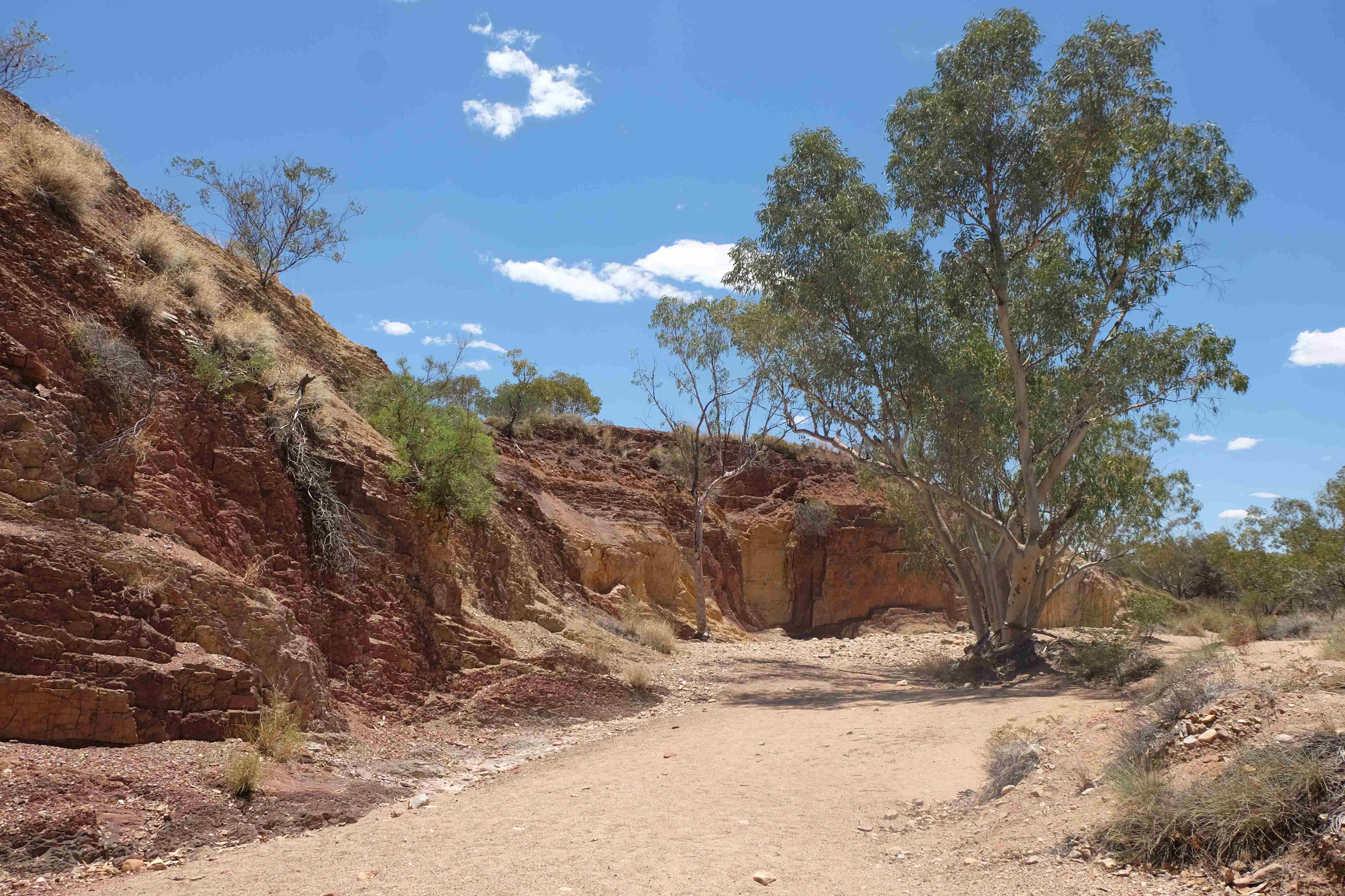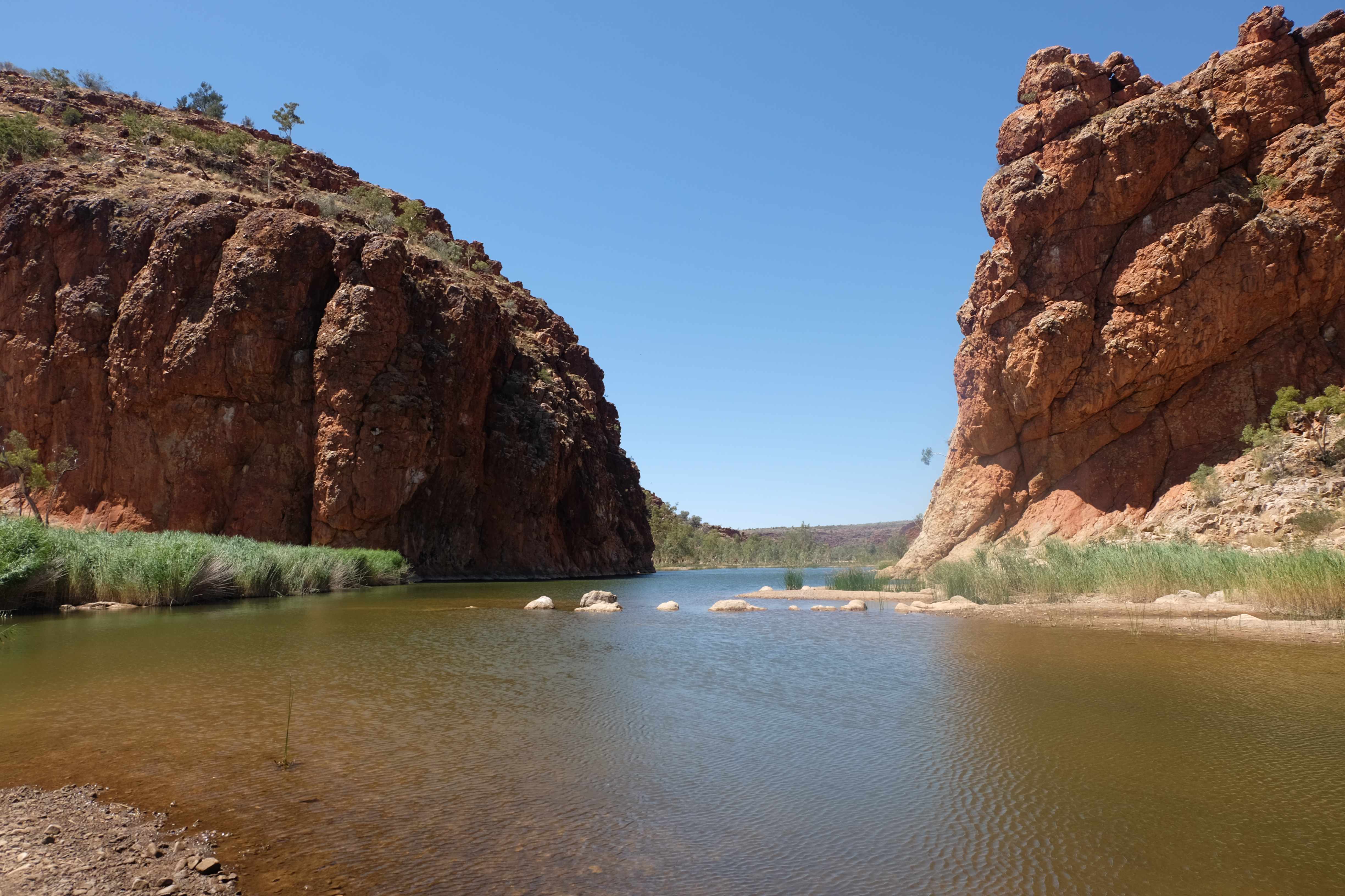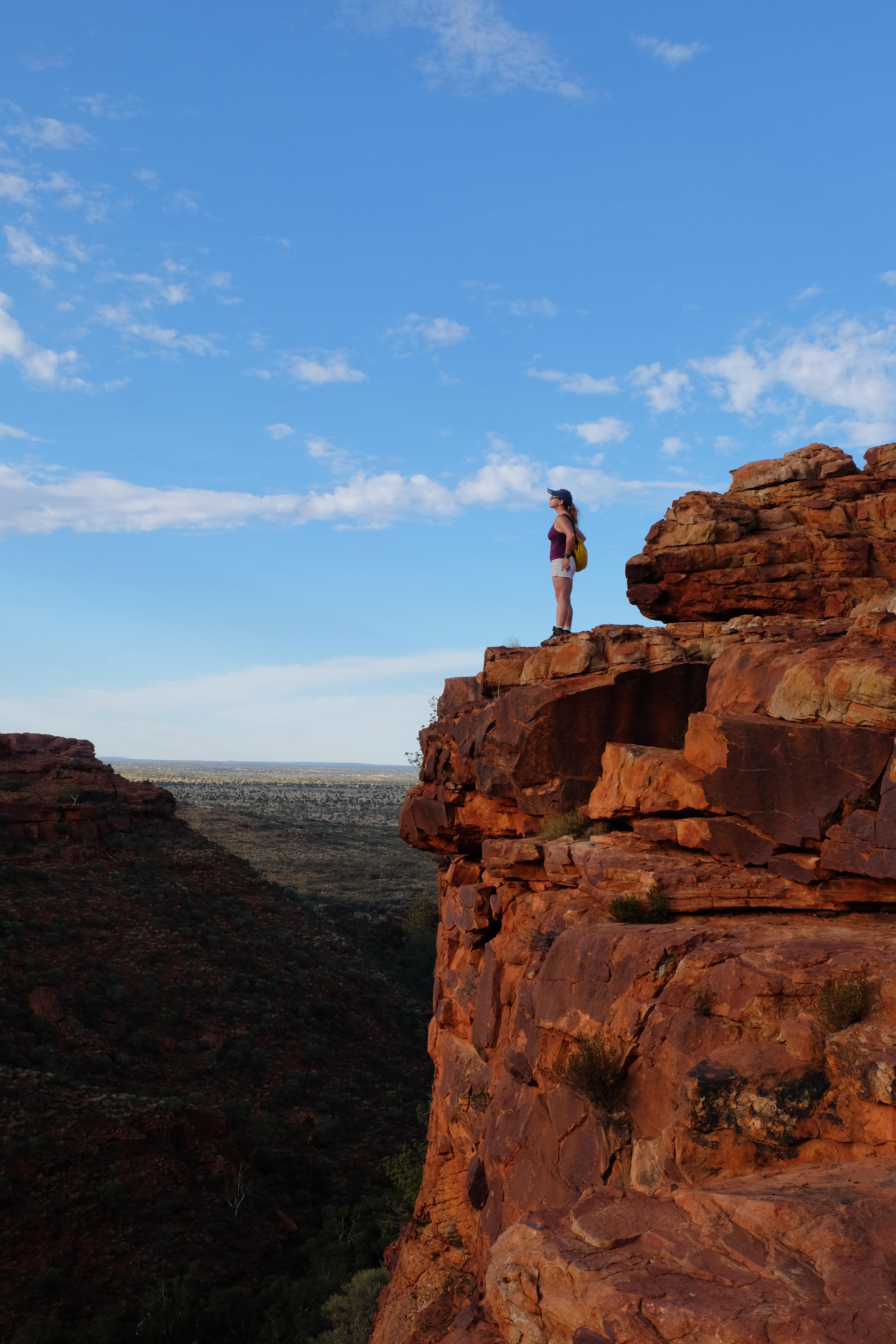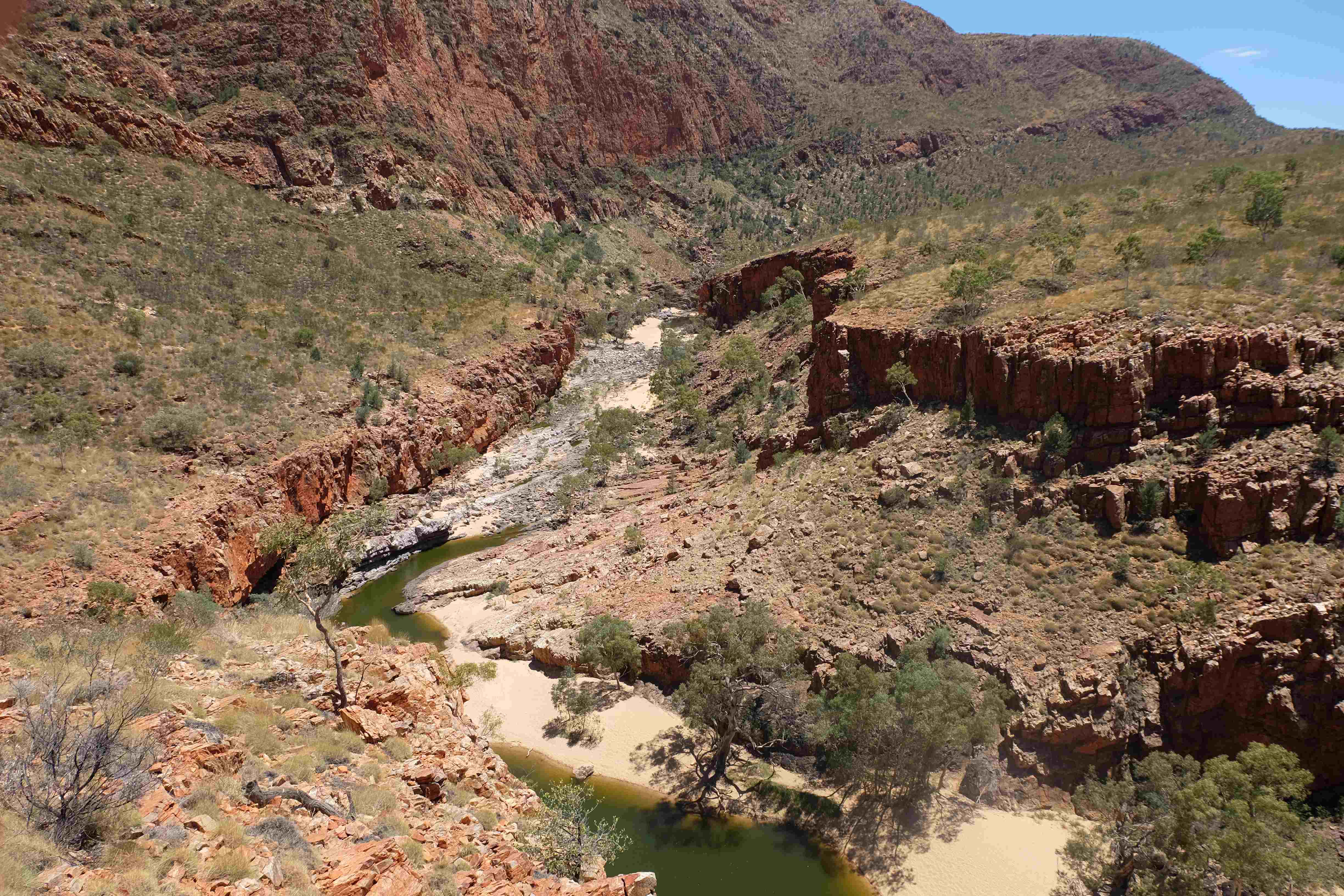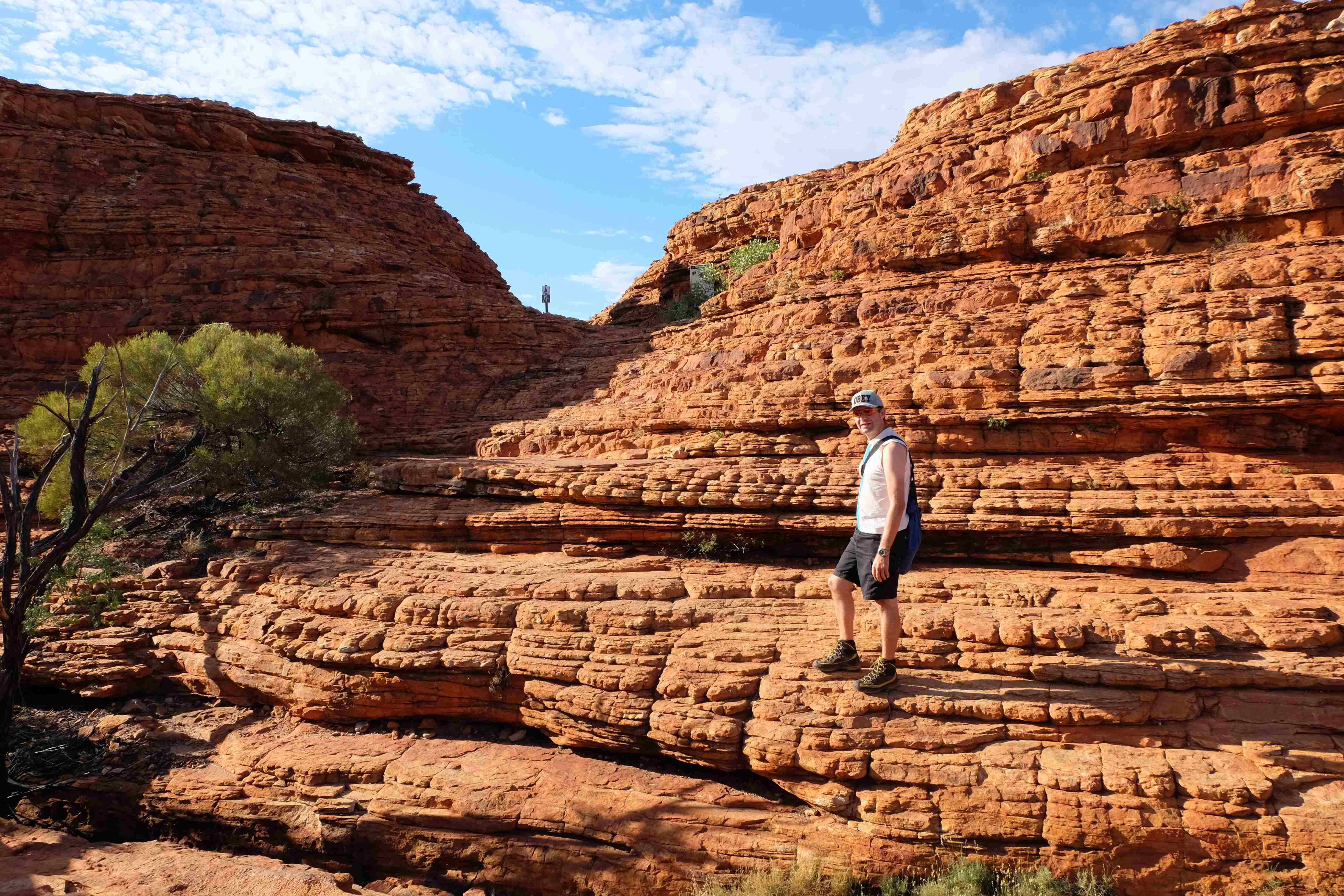 Nach der ersten im Auto verbrachten und mit einem unglaublichen Sonnenaufgang belohnten Nacht ging es morgens früh los – sehr früh, da die Wanderrouten hier aufgrund der lebensbedrohlichen Hitze und Dürre bereits um 9 Uhr morgens geschlossen werden. Wir unterschätzten ein wenig den Kampf gegen die aggressiven australischen Fliegen – die einem scharenweise beim Nasen- , Augen- und Ohrenputzen helfen wollen und sich somit in jedes Loch den Weg bahnen – sowie die vorgegebenen Flüssigkeitsmengen pro Stunden – 1 Liter Wasser pro Stunde ist doch nur normal wenn man der Gattung Kamel angehört! – Erschöpft und erschlagen erreichten wir nach guten 4 Stunden unsere Luxus-Residenz: unser neon-grünes Toyota, welches überhitzt auf uns auf dem Parkplatz wartete. Die Situation schrie einfach nur noch nach einer kalten Dusche, welche wir uns auch gönnten! Wo, fragt ihr euch? In einer der Duschanlagen der überteuerten Ressorts auf der Strecke, welche ebenfalls Mehrbetten-Zimmer mit geteilter Dusche anboten und wo wir uns einbrechermässig hereinschlichen – als seien wir zahlende Gäste – und uns erfrischten. 🙂 Da wir ja wussten, dass zwei weitere nächtliche Luxus-Aufenthalte in unserem Toyota folgten, mussten wir doch einen Weg finden unsere Geruchssinne zu schonen und – sei es auch nur einbrechermässig – zu duschen! 🙂 Frisch, sauber und als hätten wir nichts Unerlaubtes getan stolzierten wir aus den Duschanlagen heraus, begaben uns – als wären wir dortige Gäste – zu unserer schön im Schatten parkierten Luxus-Residenz und setzten unsere Reise fort. 🙂