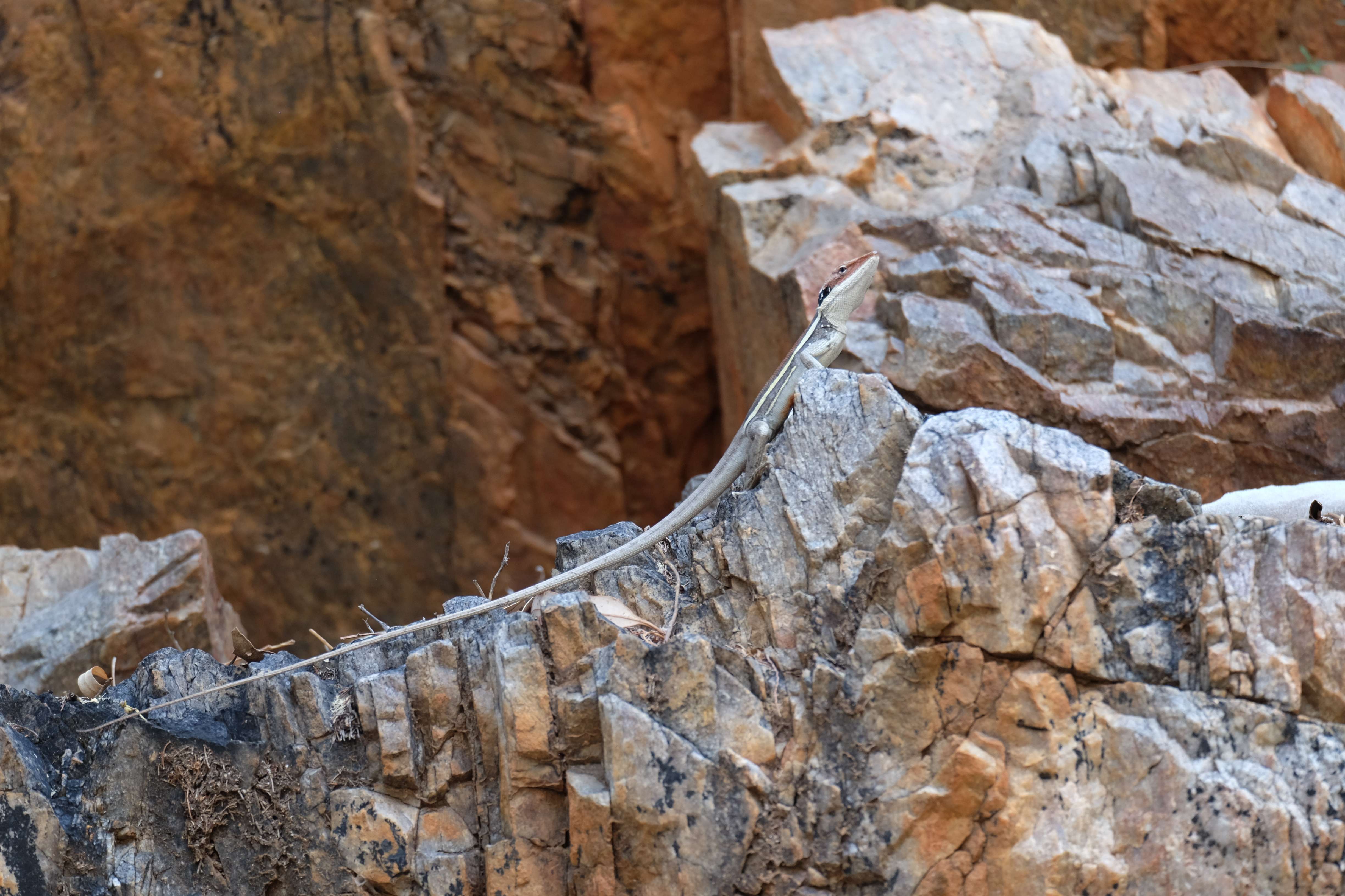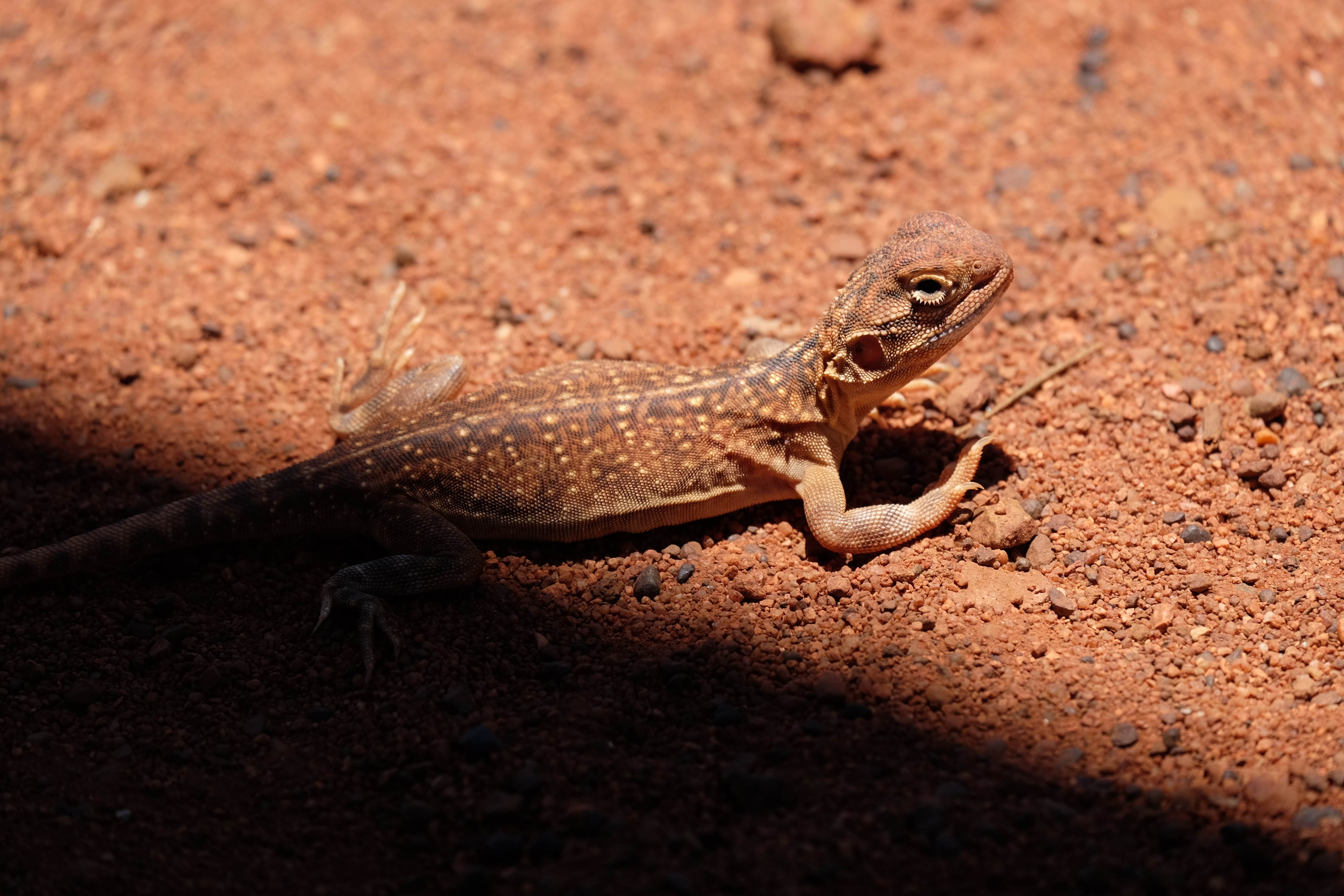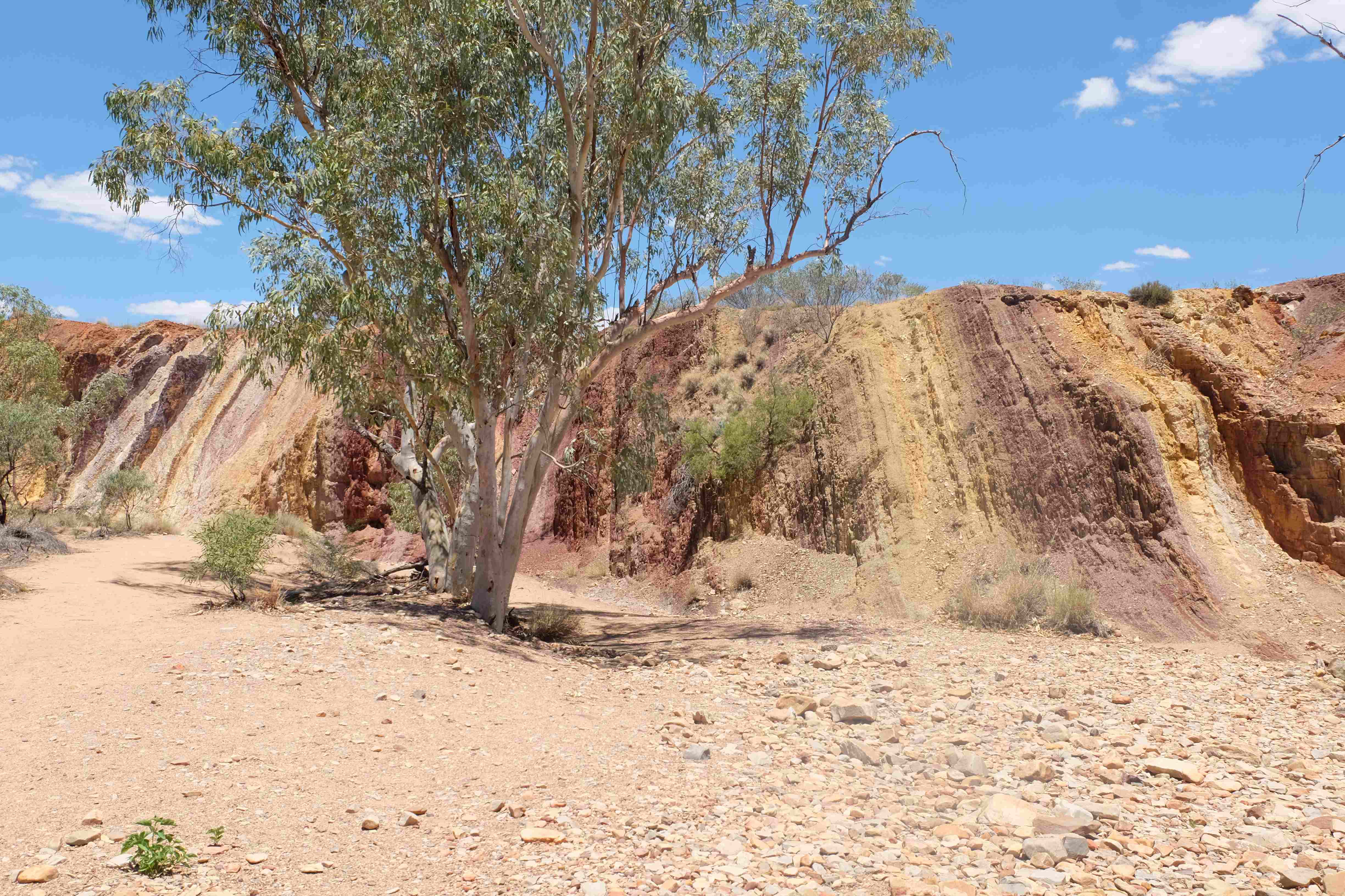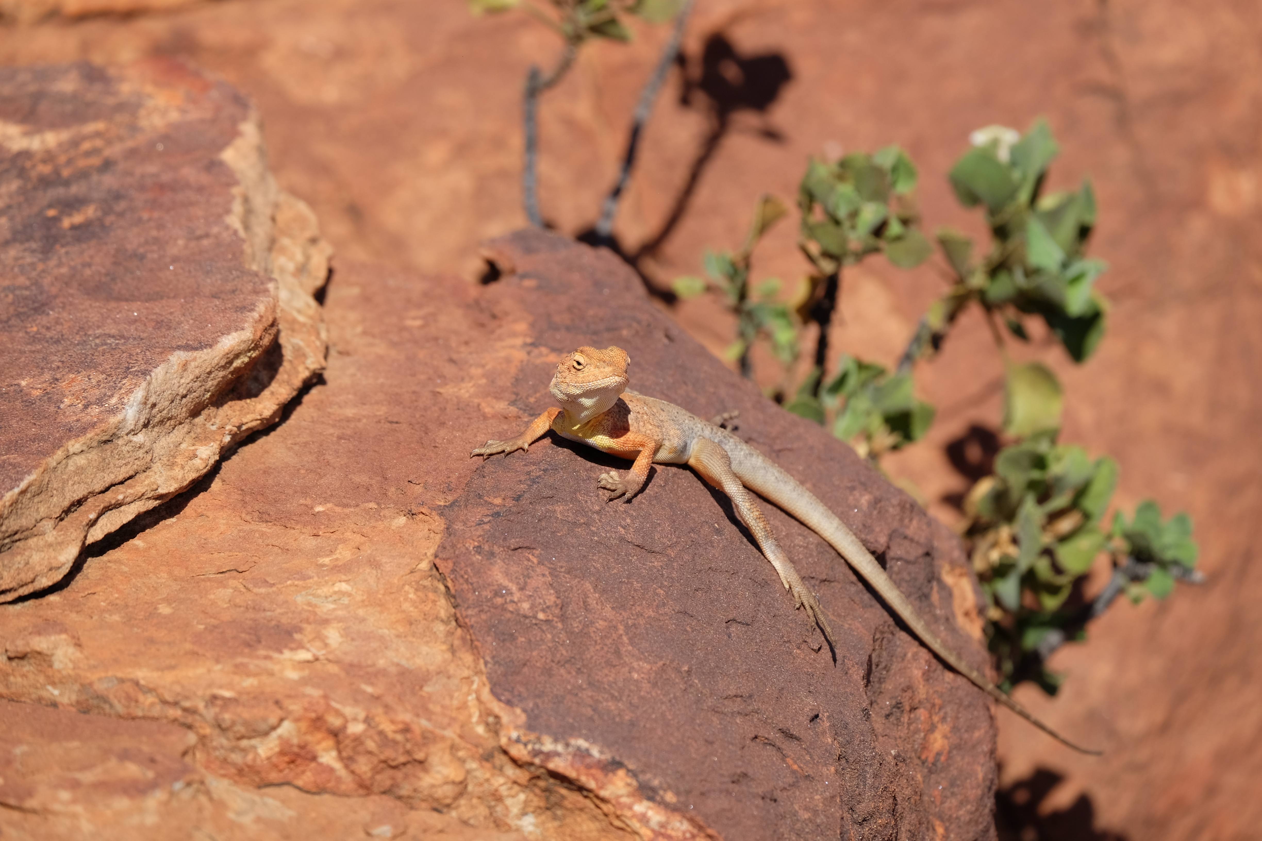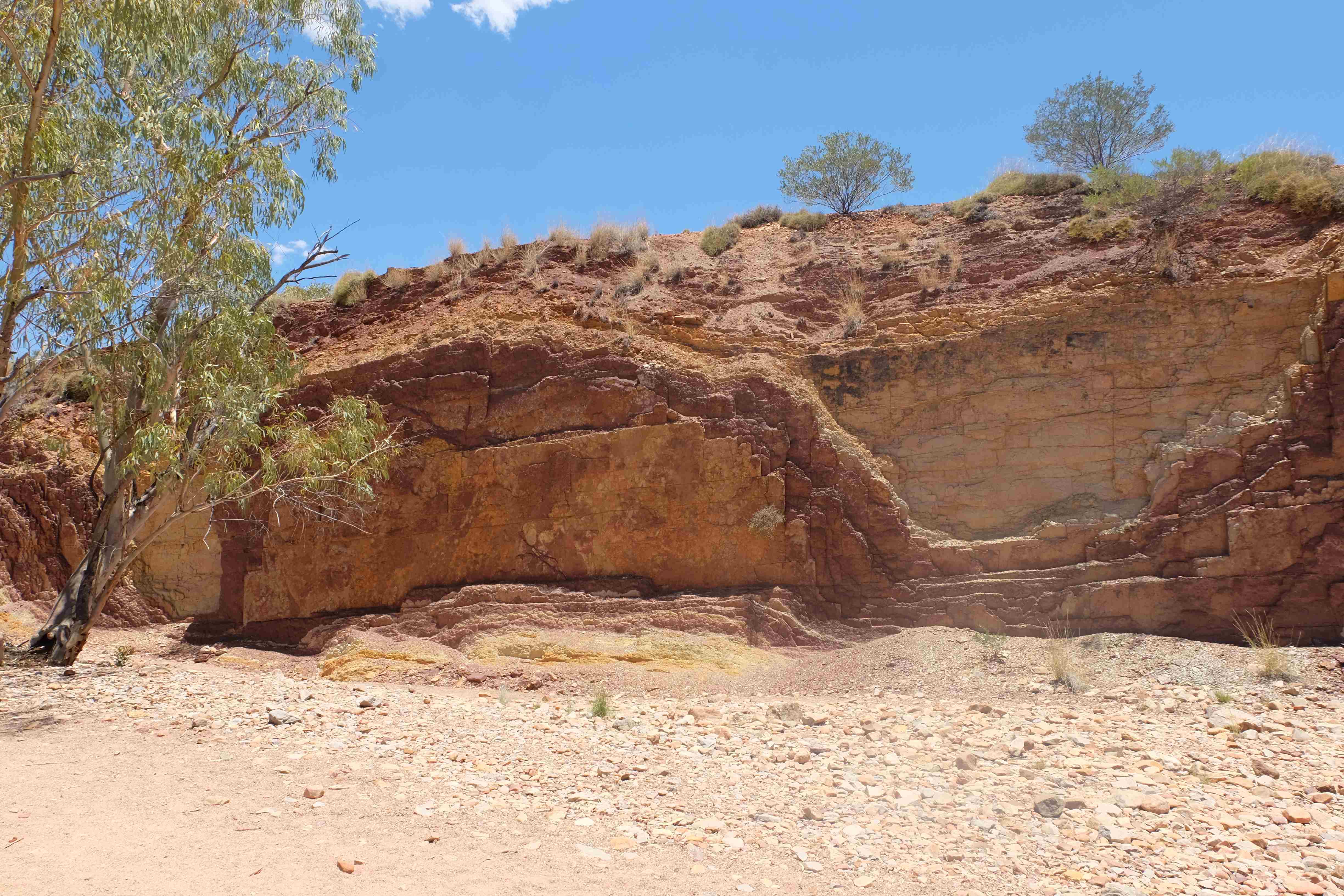 Nach der ersten im Auto verbrachten und mit einem unglaublichen Sonnenaufgang belohnten Nacht ging es morgens früh los – sehr früh, da die Wanderrouten hier aufgrund der lebensbedrohlichen Hitze und Dürre bereits um 9 Uhr morgens geschlossen werden. Wir unterschätzten ein wenig den Kampf gegen die aggressiven australischen Fliegen – die einem scharenweise beim Nasen- , Augen- und Ohrenputzen helfen wollen und sich somit in jedes Loch den Weg bahnen – sowie die vorgegebenen Flüssigkeitsmengen pro Stunden – 1 Liter Wasser pro Stunde ist doch nur normal wenn man der Gattung Kamel angehört! – Erschöpft und erschlagen erreichten wir nach guten 4 Stunden unsere Luxus-Residenz: unser neon-grünes Toyota, welches überhitzt auf uns auf dem Parkplatz wartete. Die Situation schrie einfach nur noch nach einer kalten Dusche, welche wir uns auch gönnten! Wo, fragt ihr euch? In einer der Duschanlagen der überteuerten Ressorts auf der Strecke, welche ebenfalls Mehrbetten-Zimmer mit geteilter Dusche anboten und wo wir uns einbrechermässig hereinschlichen – als seien wir zahlende Gäste – und uns erfrischten. 🙂 Da wir ja wussten, dass zwei weitere nächtliche Luxus-Aufenthalte in unserem Toyota folgten, mussten wir doch einen Weg finden unsere Geruchssinne zu schonen und – sei es auch nur einbrechermässig – zu duschen! 🙂 Frisch, sauber und als hätten wir nichts Unerlaubtes getan stolzierten wir aus den Duschanlagen heraus, begaben uns – als wären wir dortige Gäste – zu unserer schön im Schatten parkierten Luxus-Residenz und setzten unsere Reise fort. 🙂