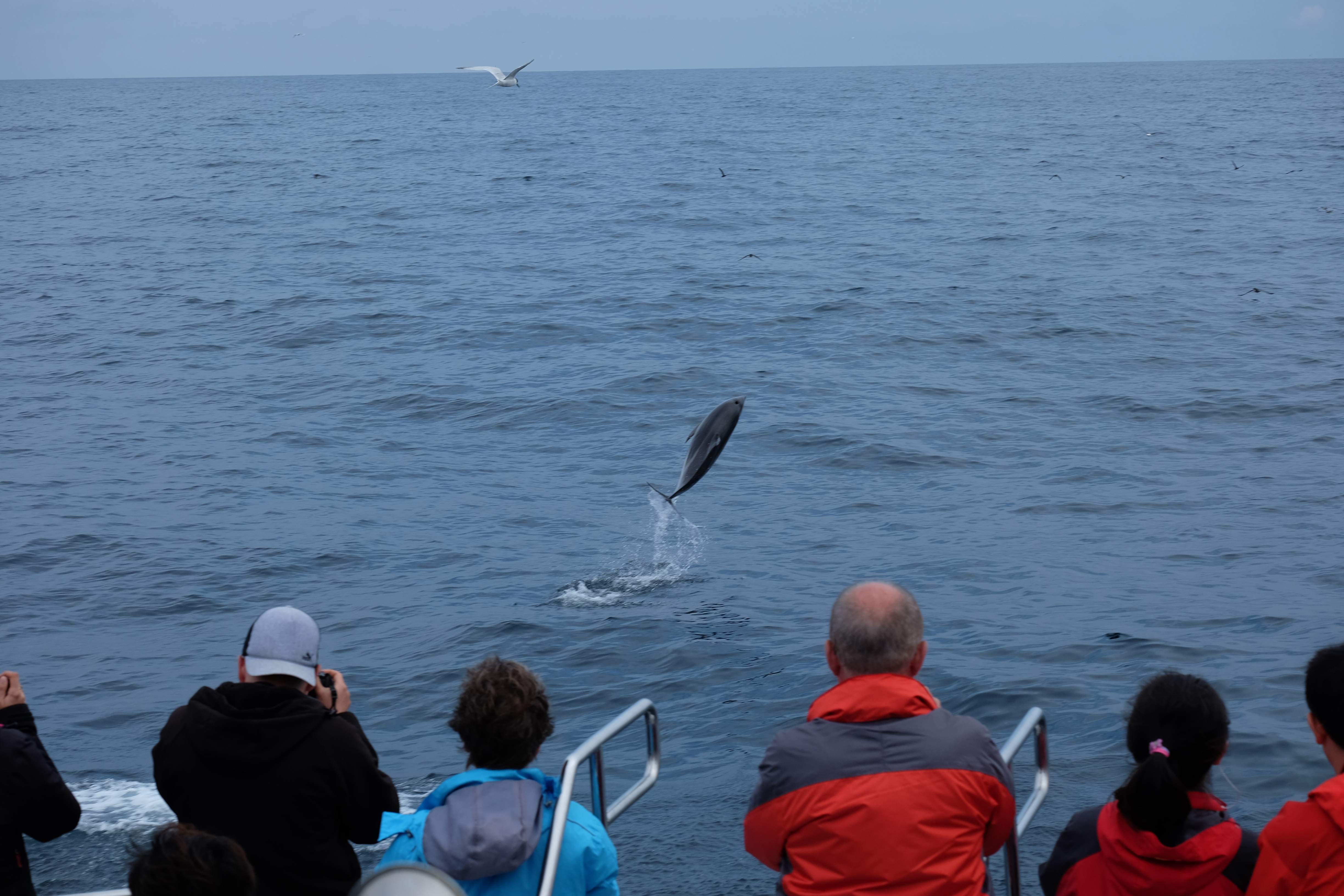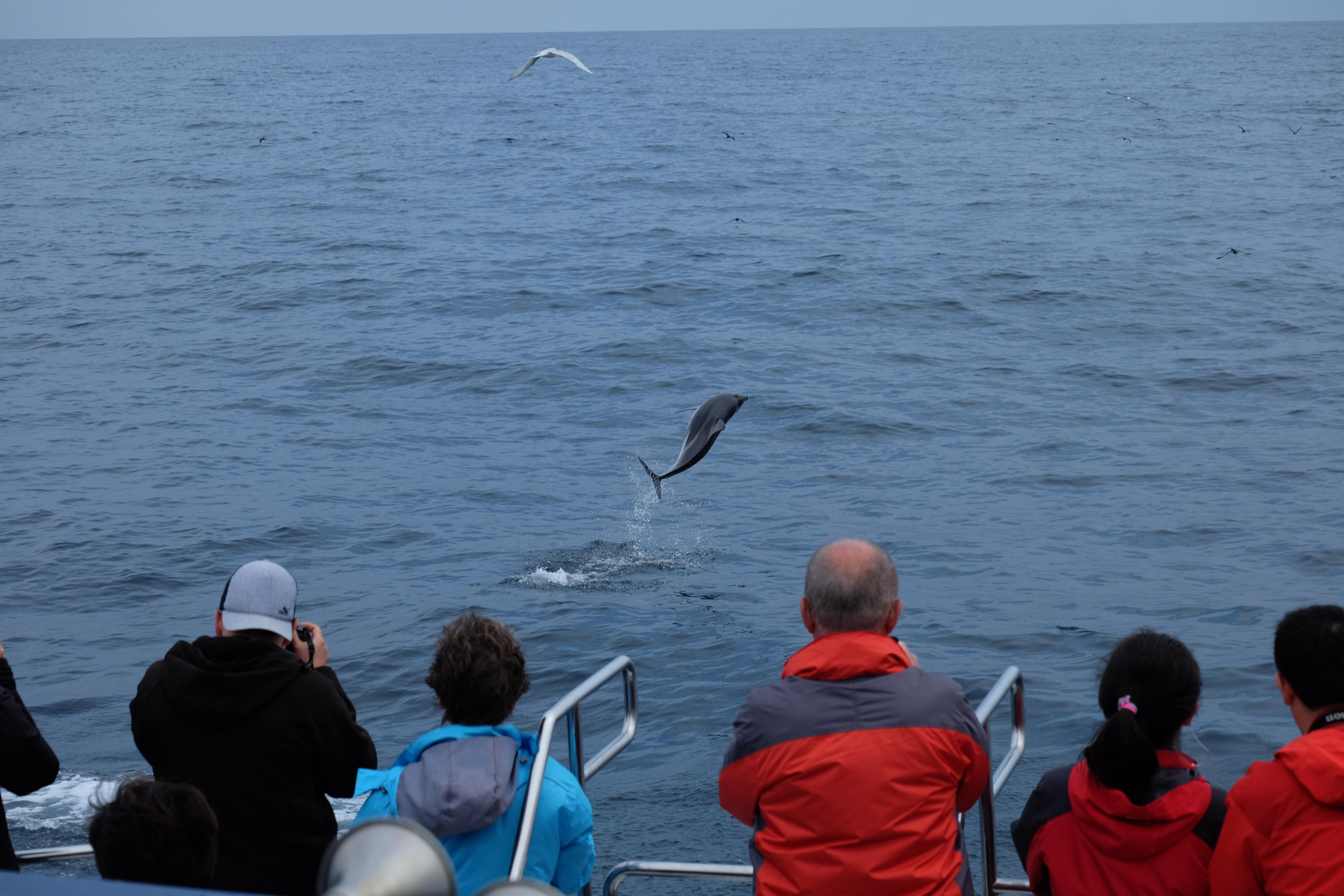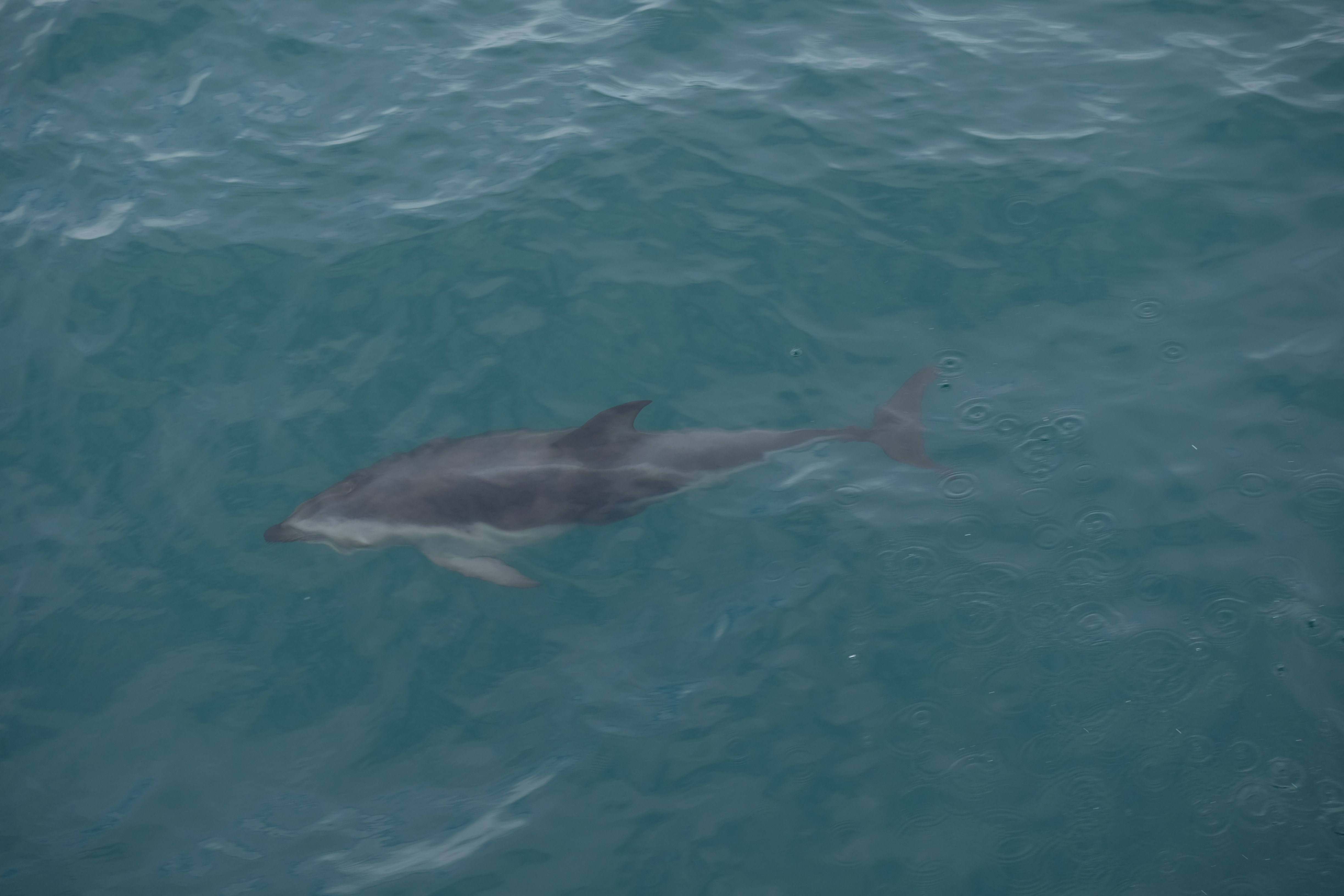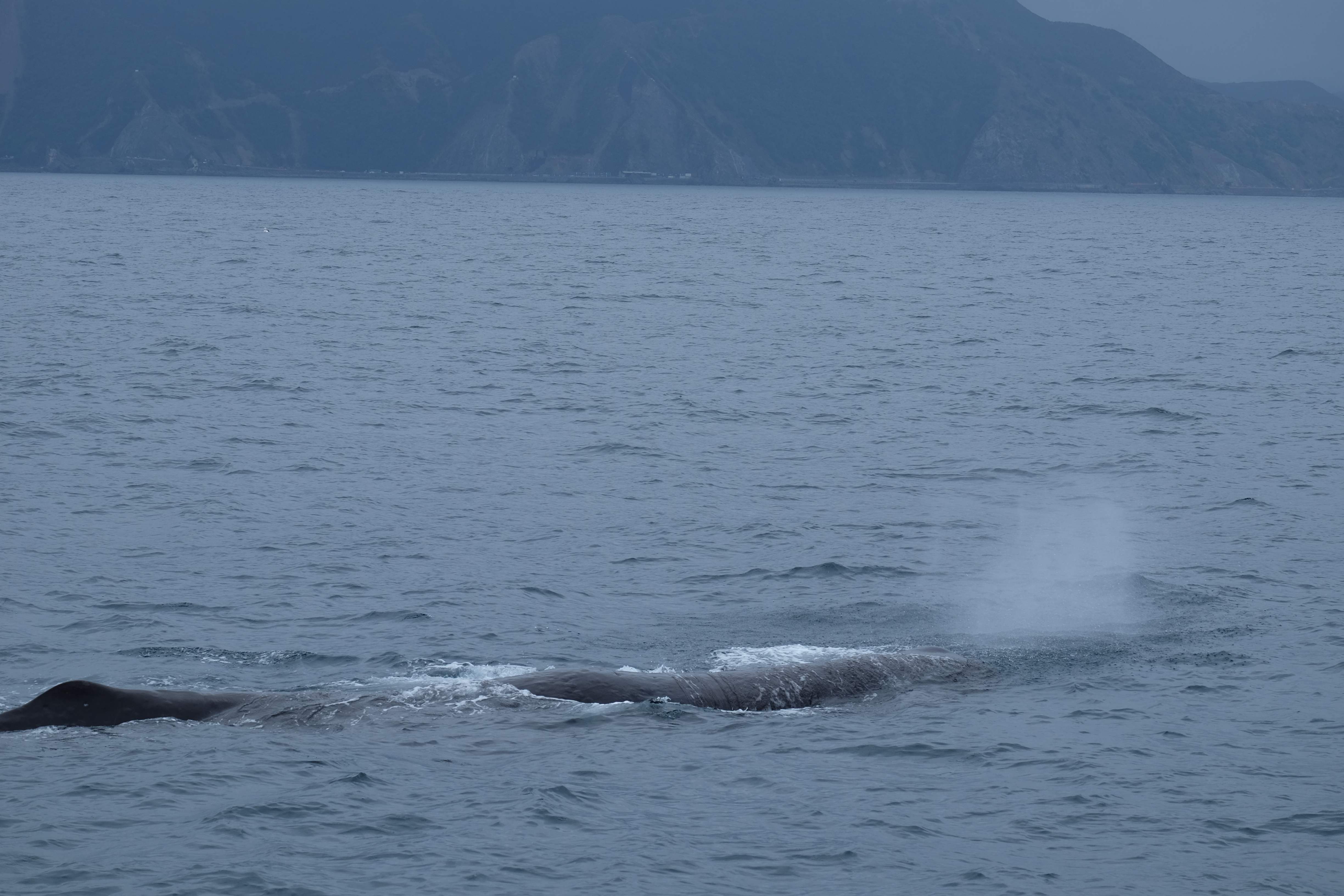 Aber die Enttäuschung hielt nicht lange an… am Nachmittag gingen wir nämlich auf die einzige dort existierende Walsichten-Tour. Die Firma gehört den Maori – die einheimische Bevölkerung Neuseelands vor der Ankunft der Europäer – und ist eine Erfolgsgeschichte. Vor Jahrzehnten, als die hiesige Maori-Bevölkerung in finanziellen Schwierigkeiten war, mussten sie eine Lösung finden. Da fiel ihnen ein, dass sie mit ihren Bräuchen und kulturellen Hinterlassenschaften eigentlich den Weg finden könnten. Die Maori sind eine Segel-Nation, sie sollen vor Tausenden von Jahren mit selbstgebauten Baumstamm-Booten die Ufer Neuseelands erreicht haben. Daher wussten sie immer, wo welche Tiere sich befanden und hatten die ganze Zeit eine sehr nahe Beziehung zur Wasser- und Unterwasserwelt. Als sie diese schweren Zeiten durchmachten, entstand die Idee den Leuten Touren anzubieten, um Wale zu sichten – da sie ja die einzigen waren, die wussten, wo sich diese aufhielten bzw. wie diese finden. Was als Miniatur-Geschäft mit einem Gummiboot anfing ist heute ein Millionen-Unternehmen mit 4 speziell für Walsichten gebauten Katamaranen.