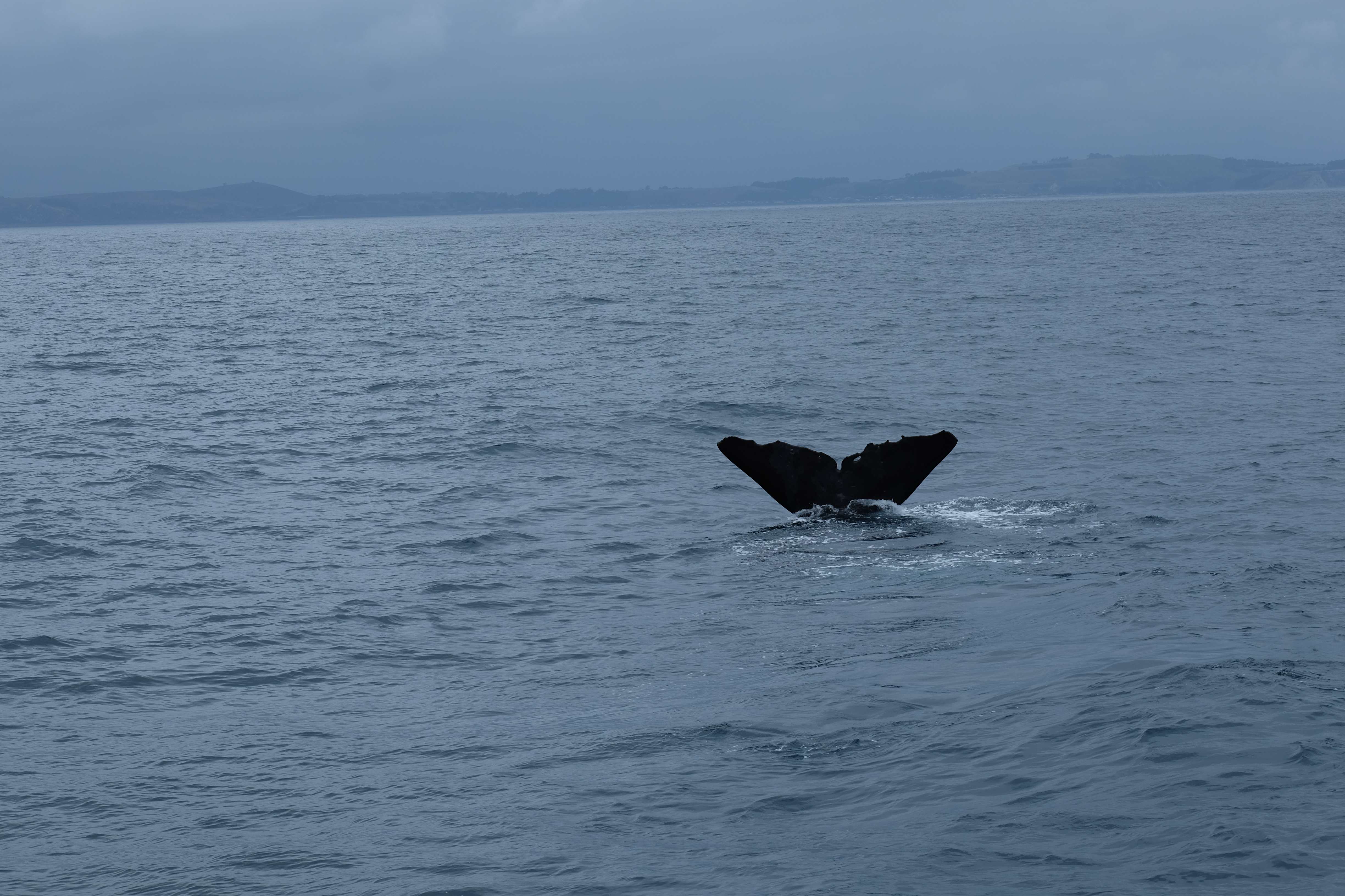 Also fuhren wir ins offene Meer hinaus, schauten voller Interesse dem Kapitän zu, wie er mit einem schlauchartigen, riesigen Hörgerät unter Wasser nach dem Atem der Wale suchte und hofften nur, dass die Wale nicht gleich wie die Safari-Tiere sich zu einem Ausflug ins benachbarte Australien entschieden als sie davon Wind bekamen, dass wir sie sehen kamen. 🙂 Anscheinend war es nicht der Fall und wir durften einem einmaligen, einzigartigen, aussergewöhnlichen, atemberaubenden, geheimnisvollen, faszinierenden, unglaublichen – ach was soll’s… denkt euch sämtliche Adjektive aus dem Superlativ-Bereich dazu – beiwohnen. Vor diesem Blog-Eintrag hatte ich am meisten Angst, da ich mir der Tatsache nämlich bewusst war, dass ich dem Erlebten mit Worten und Beschreibungsversuchen nicht gerecht werde.