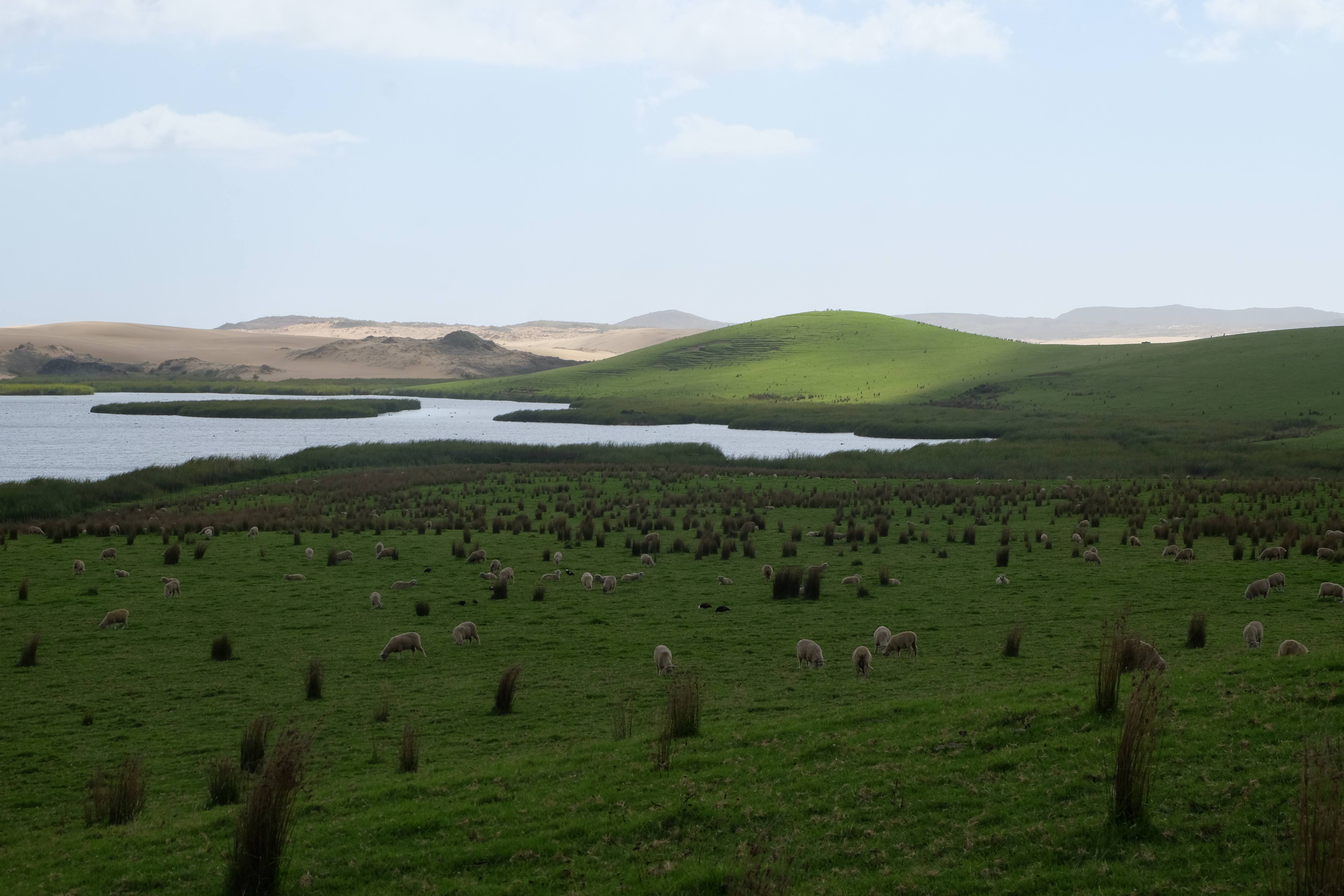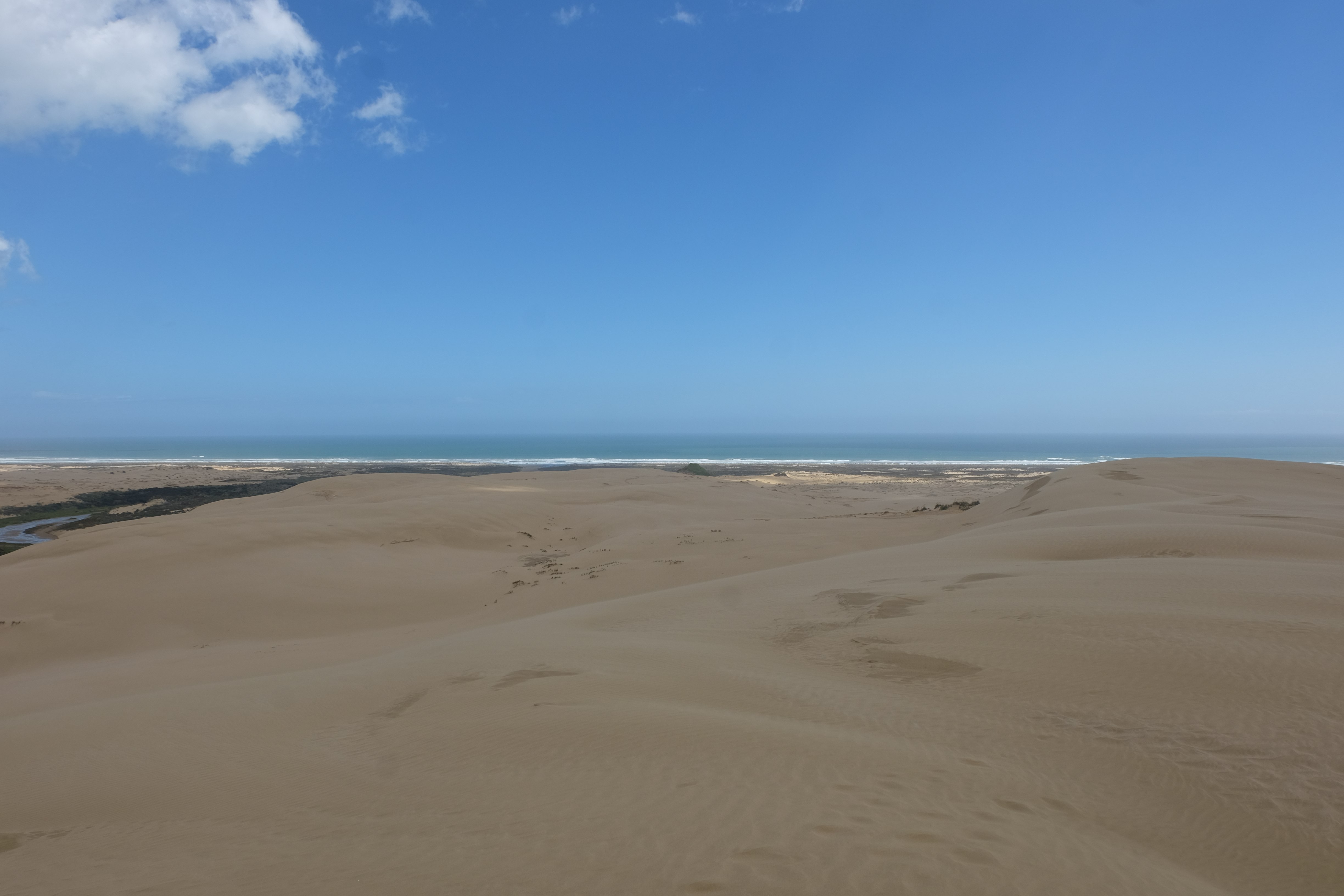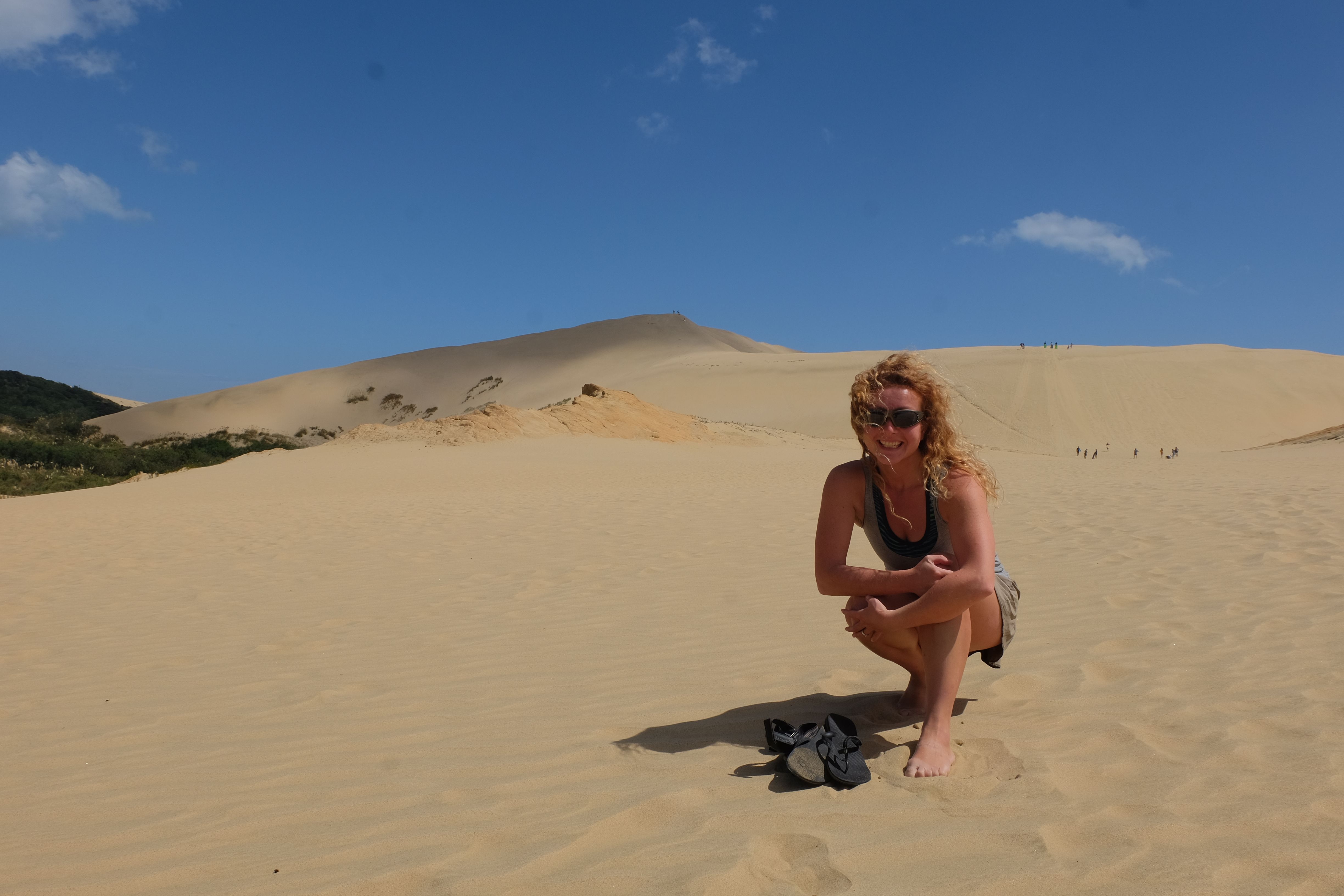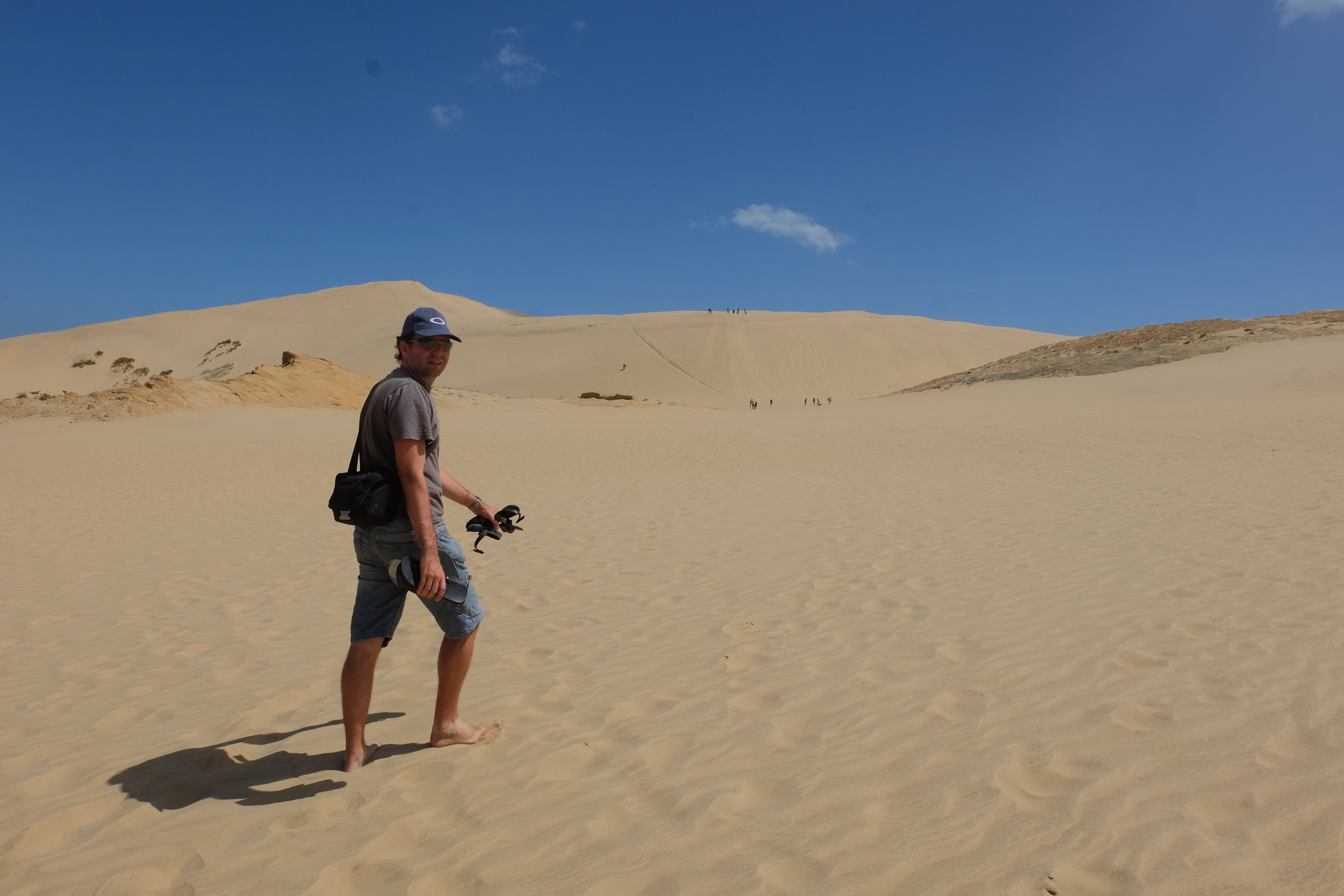 Mai in nord, da, insa cat de in nord? Ei, daca facem ceva, atunci sa o facem pana la capat! O zi lunga, un drum si mai lung si multe ore de condus in acea zi, insa ne-am dus pana la dunele de nisip gigante. Da, ati citit bine si nu, nu ne-am ratacit din nou… ne aflam inca in Noua Zeelanda si nu intr-un desert tropical… si totusi: dune de nisip! De-a dreptul incredibil: in mijlocul dunei de nisip o dunga verde: padure deasa! Ascuns in spatele unor coline de nisip, un peisaj stancos si pe partea cealalta oceanul. Ceva unic! La fel de unic ca si arsurile superficiale cu care ne-am ales in timp ce am urcat desculti pe duna. Bineinteles ca aveam pantofii la noi si am vrut sa ii incaltam cel tarziu in momentul in care talpile noastre au devenit de un roz aprins… insa ia incercati voi sa va luati pantofii in picioare in timp ce va aflati pe un deal de nisip. Mult noroc! La urma urmei a trebuit sa alegem intre arsuri la fund sau la talpi. Si am decis… 🙂