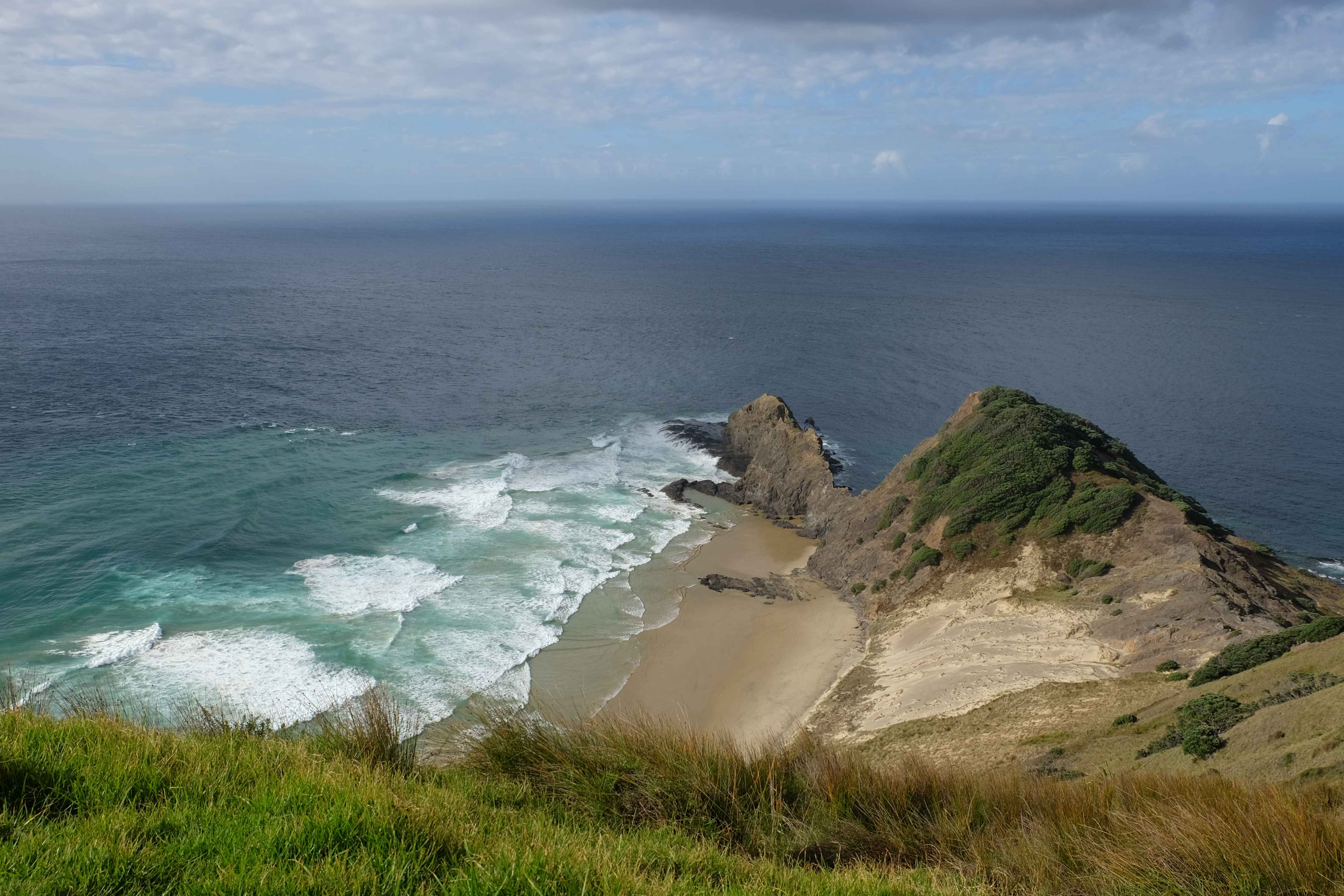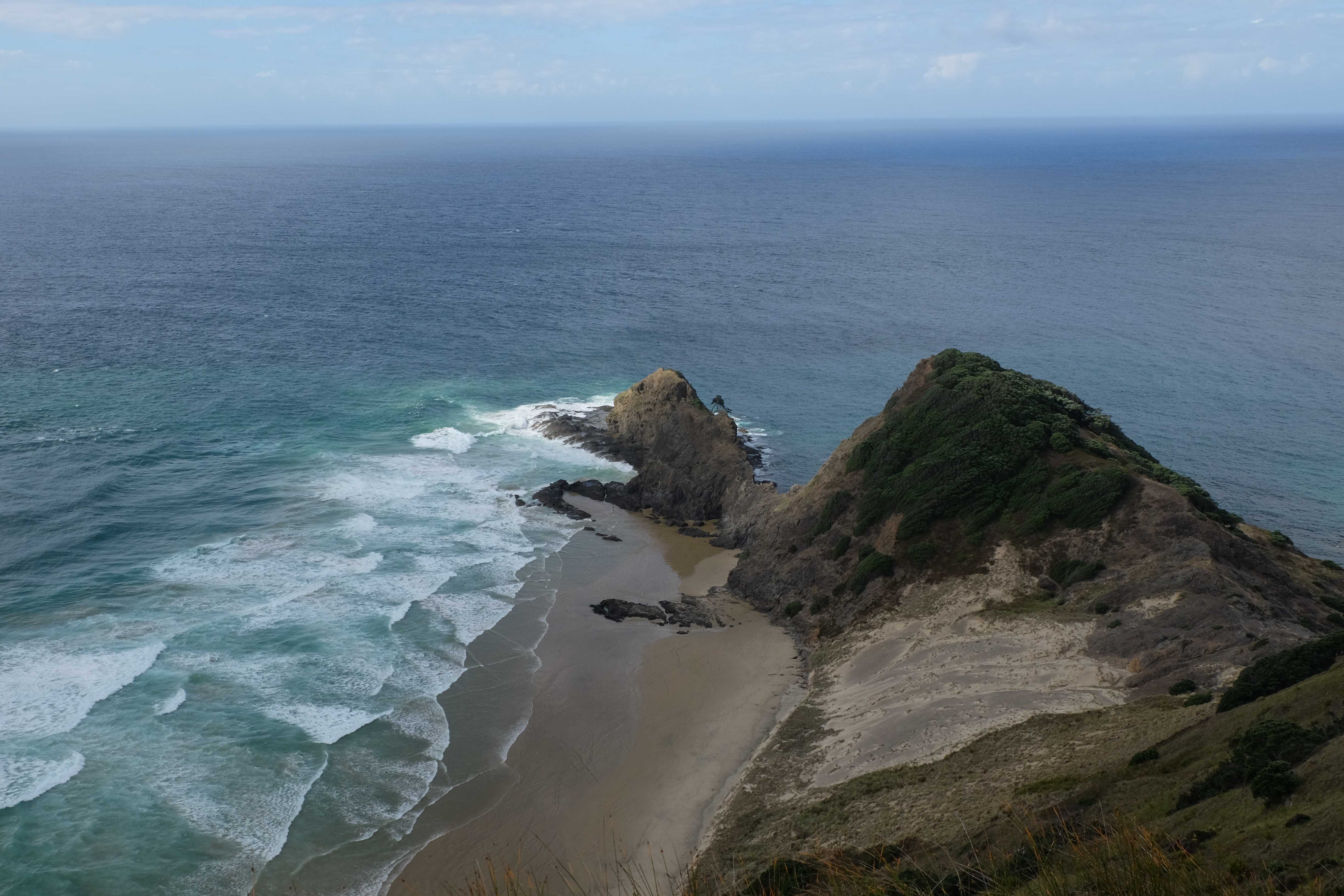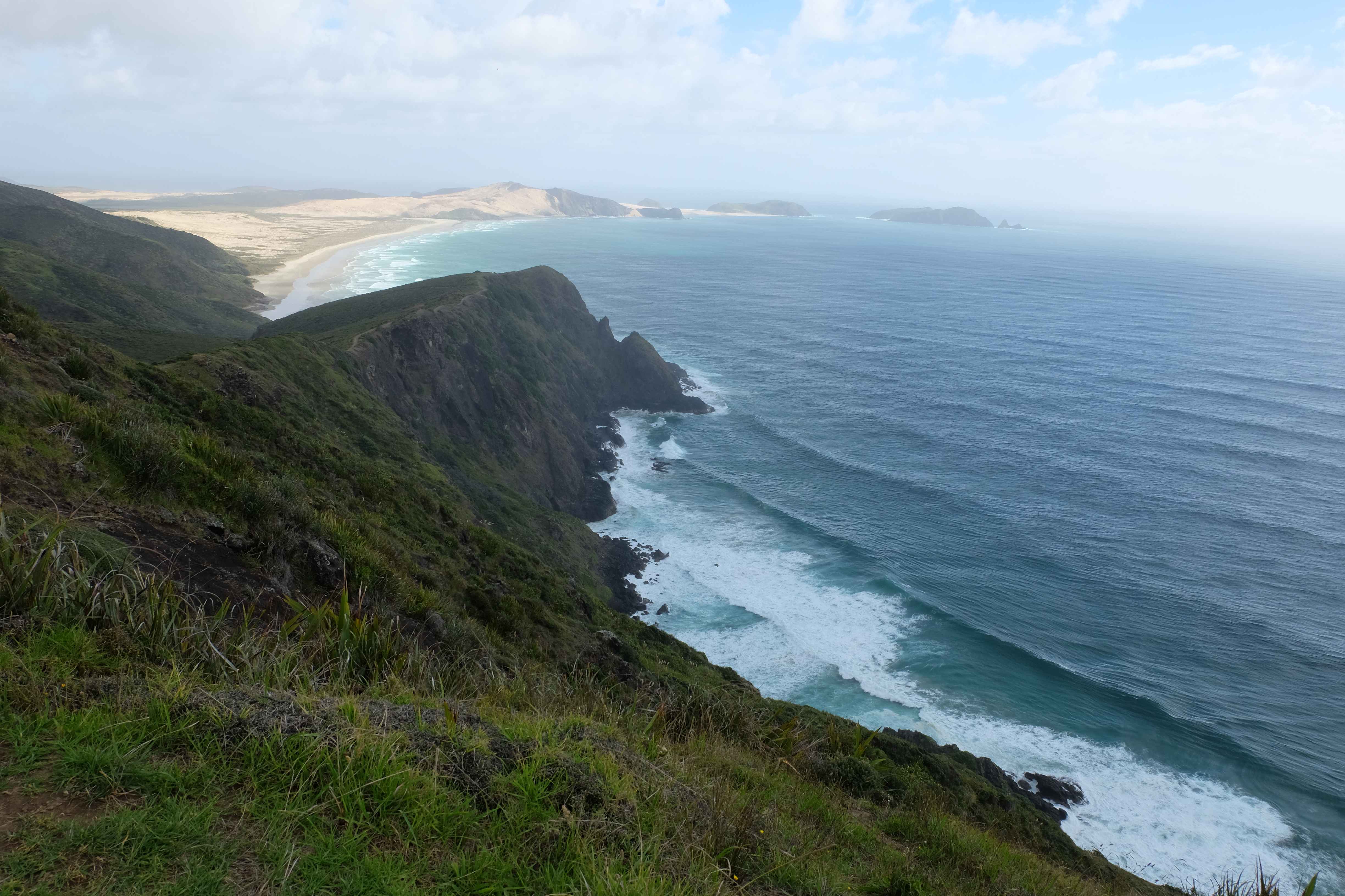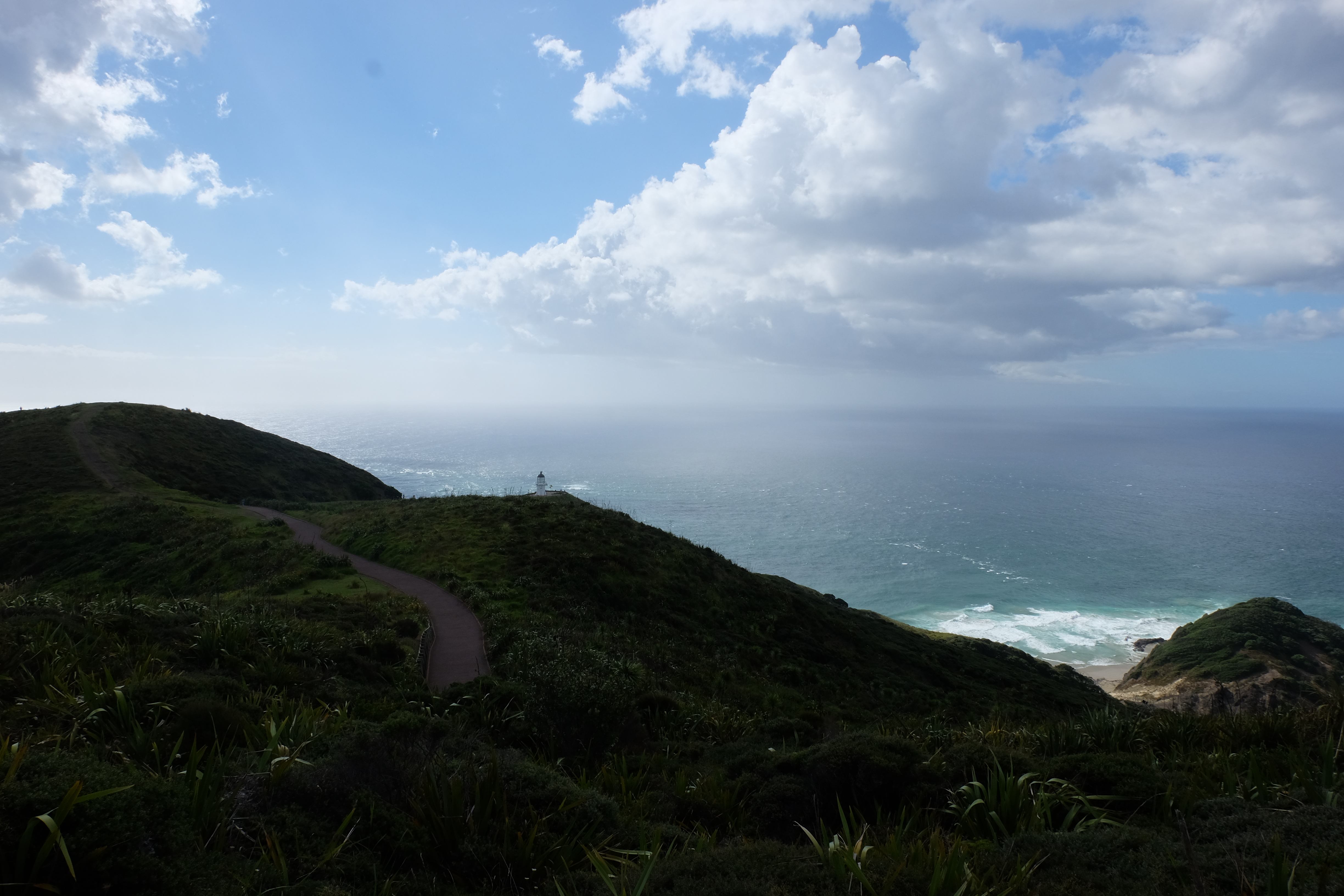 Nach der einmaligen Erfahrung und den guten dort verbrachten 2 Stunden mussten wir entscheiden, ob wir doch den nördlichsten Punkt Neuseelands berühren wollten, oder uns die 15 extra Fahrtminuten ersparten und uns auf den Rückweg machten. Die Entscheidung wurde sehr einfach gefällt: Cape Reinga, here we come! Und wie froh wir waren, diese Entscheidung zu treffen! Cape Reinga, ein für die Maori-Kultur sehr bedeutender Ort – der Ort, von welchem die Geister der Verstorbenen sich verabschieden und ihre Reise nach Hause, zu den Wurzeln der maorischen Bevölkerung antreten… Ein spirituell geladener und landschaftlich wunderbarer Ort. Ich weiss gar nicht so richtig, wie ihn genau beschreiben – dramatisch, ja war er mit den Felsklippen, welche aus dem Ozean herausragten und den schaumigen Wellen über Jahrhunderte hinweg standhielten! Melancholisch und nostalgisch veranlagt, ja auch – mit dem Wegweiser und den Kilometerangaben zu den verschiedensten Orten auf dieser Welt. Dieser Wegweiser bestätigte, was wir bereits wussten: wir befanden uns am anderen Ende der Welt, weit weg von Zuhause während die Wellen, der Wind und die unendliche Weite vor unseren Augen uns versicherten, dass wir es vermissen durften, es aber keinesfalls bereuen sollten. Aber was ist Zuhause? Ok, lasst uns nicht darauf eingehen, sonst wird dies kein Blog-Eintrag, sondern ein mehr bändiger Roman. 🙂  Cape Reigna… ein für mich magischer Ort und zusammen mit den Sanddünen die ausschlaggebenden Erfahrungen um die ursprüngliche Frage zu beantworten: die Süd- oder die Nordinsel? Entgegen meistvertretener Meinung der Reisenden „definitely north!“ 🙂