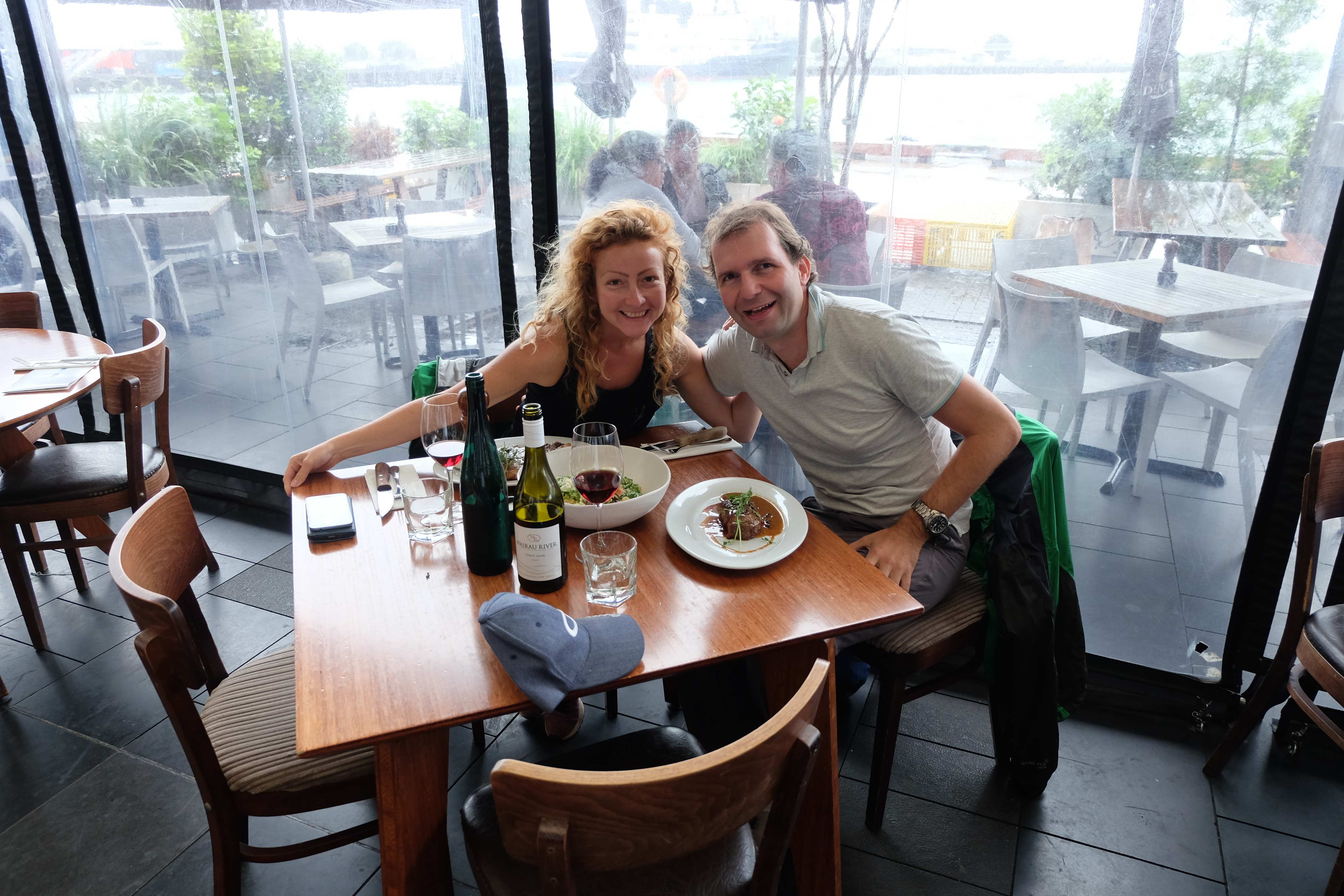 Und da waren wir, zurück in Auckland. Hudel Wetter par excellence, aber da mussten wir durch. Die letzten Tage in Neuseeland, der letzte zu erkundende Ort: das Zentrum der grössten Stadt des Landes. Bei Regenwetter und grauen Wolken verabschiedeten wir uns von diesem Land – natürlich mit einem feinen Stück Fleisch (ausnahmsweise nicht unter der Motorhaube gekocht!) und einem feinen hiesigen Wein! Obwohl das Wetter hierzulande nicht das Beste ist, hat Neuseeland (für mich!) das gewisse Etwas, was mich beeindruckt und verführt.