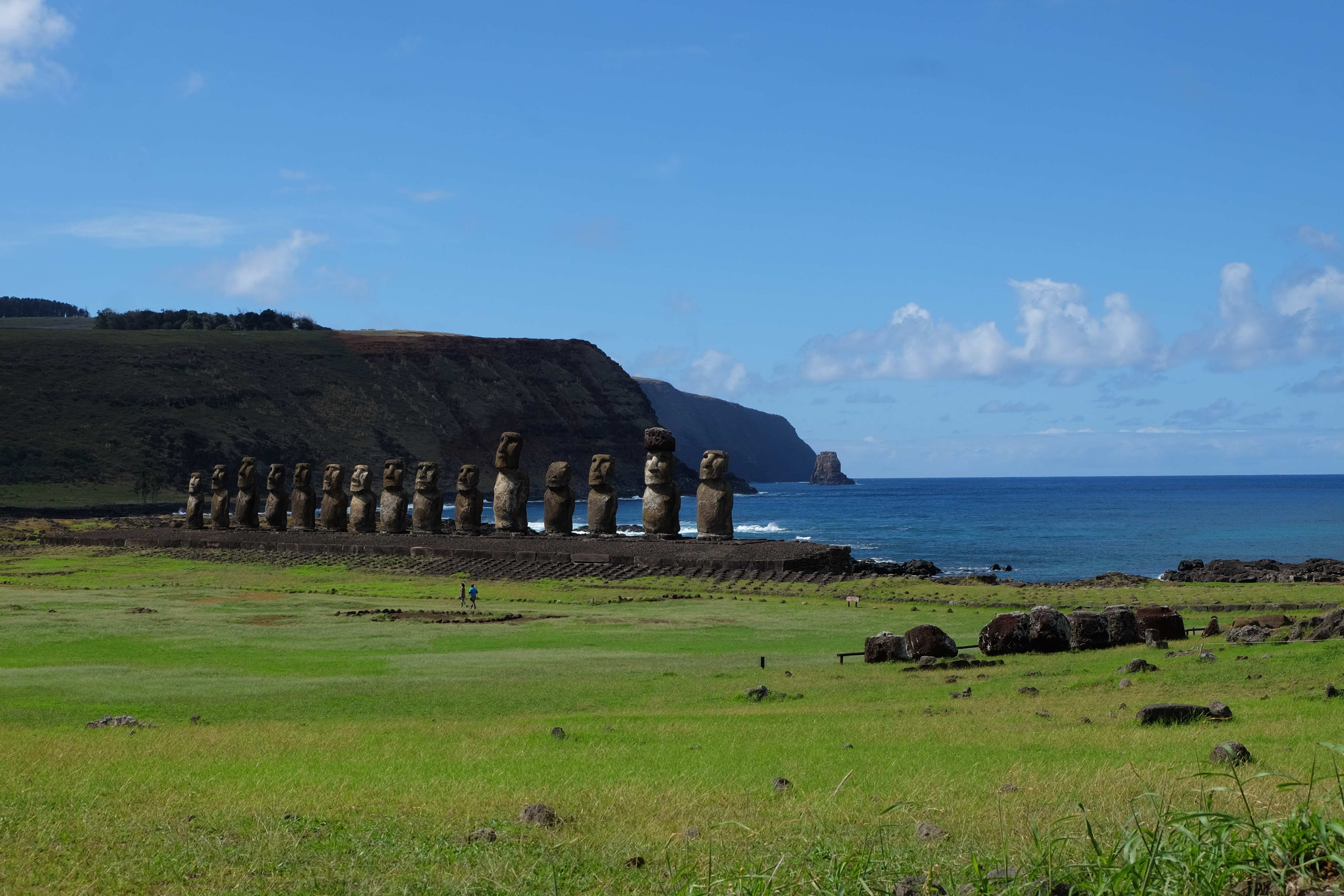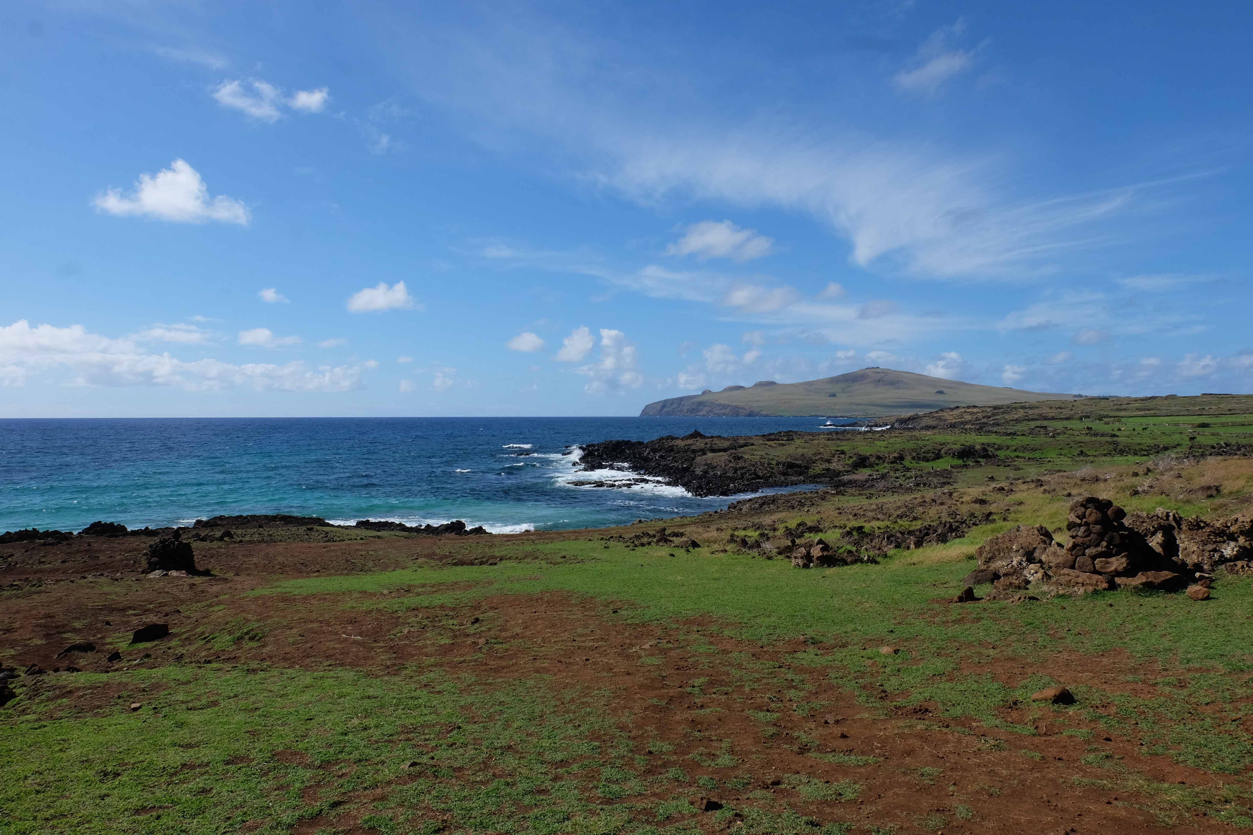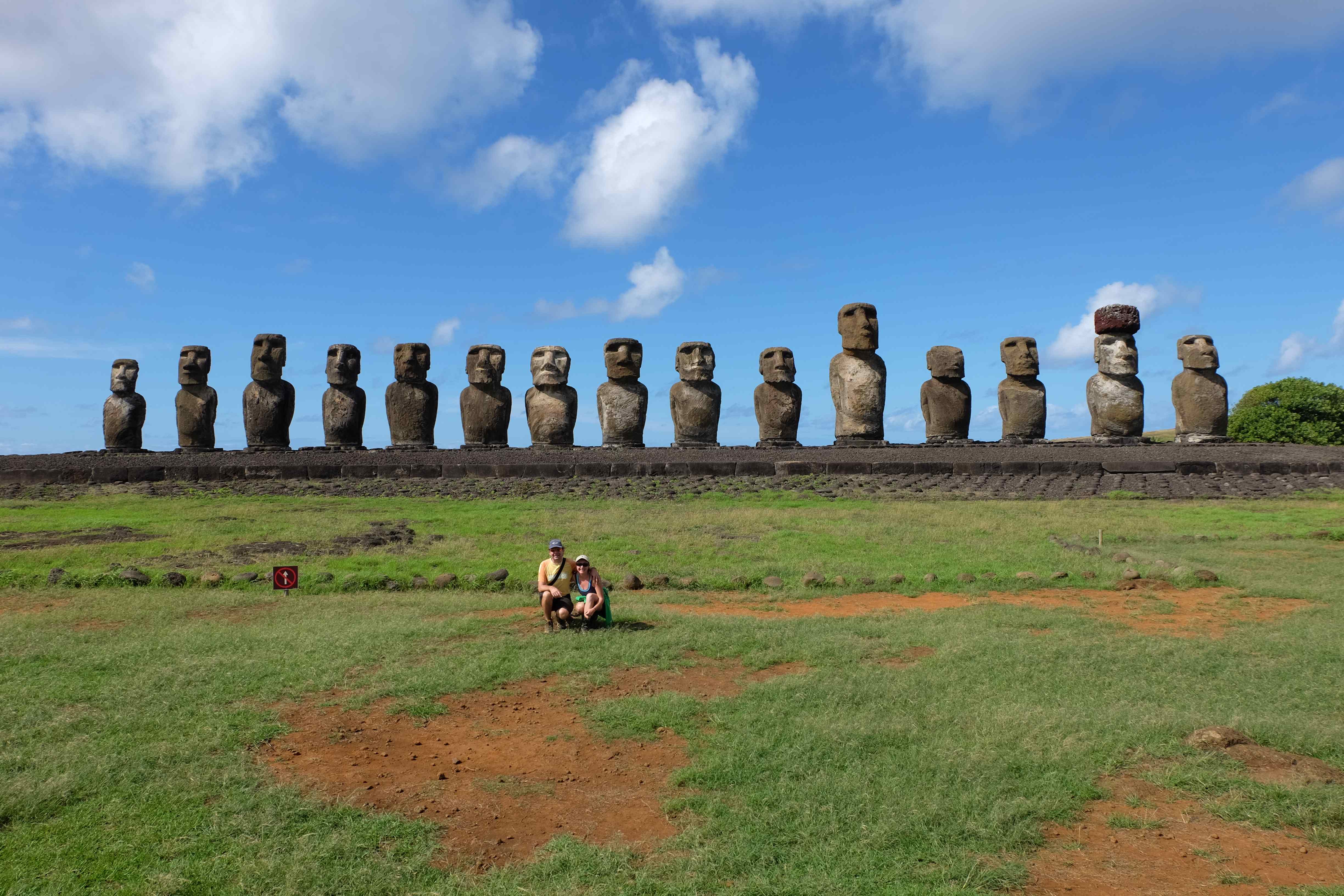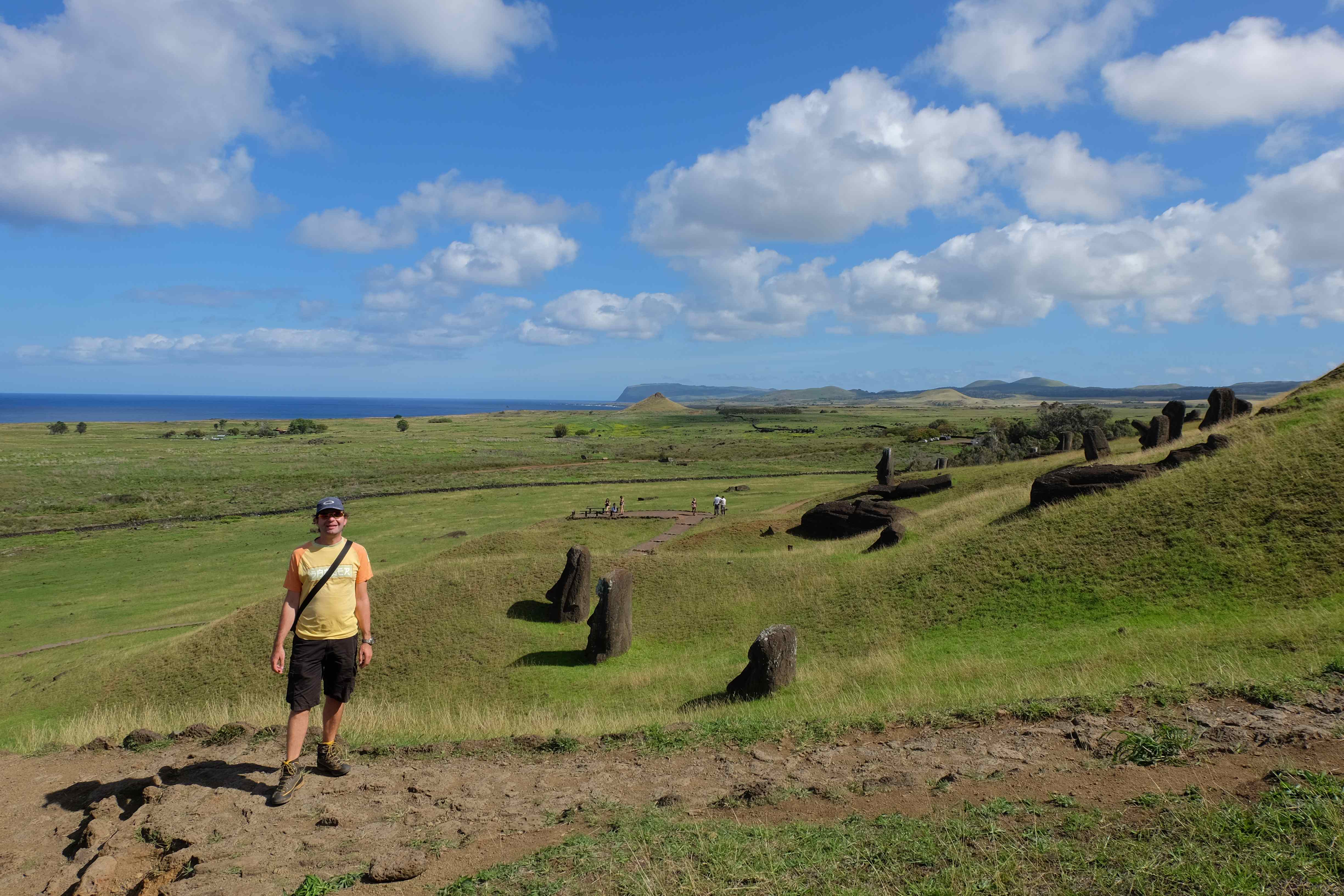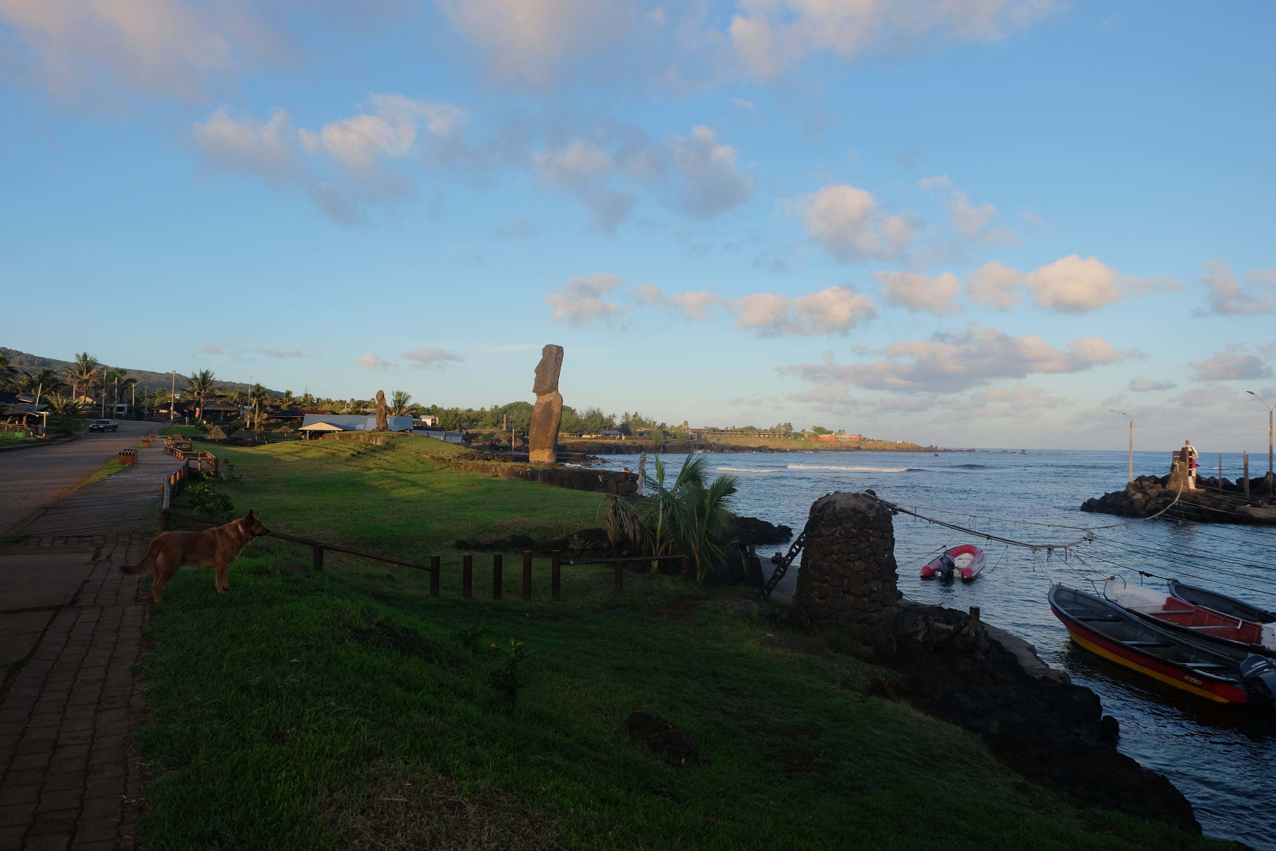 Auf der Osterinsel gibt es vieles zu erkunden sobald man die Hauptsiedlung verlässt. Spuren einer alten Kultur warten auf einen um ihm die Geschichte der ersten Segler zu erzählen, welche auf einem Boot hierhin gekommen waren und die Rapa Nui Kultur auf diesen Landfleck mitten im Ozean mit sich brachten. Riesige, imposante Steinstrukturen zu Männern, legendären Vorfahren und für die Einheimischen nicht nur interessanten, sondern auch bedeutungstragenden Gesichtern geformt weisen von einer mystischen und mythischen Zeit zugleich, welche hierzulande, weit weg vom Rest der Welt – während die Inkas, Mayas und Azteken dem südamerikanischen Kontinenten zu einer Blütezeit verhalfen – die Wiege einer eigenen Kultur schuf: die Rapa Nui. Es war ein unglaublich schönes, gewaltiges jedoch unerklärbar mystisches Gefühl diesen riesigen Steinen in menschlicher Gestalt gegenüberzustehen, ihre Präsenz lediglich als unaufgeklärte Nichtkenner wahrzunehmen und dabei trotzdem den Hauch einer gewissen zeitüberdauernden Hinterlassenschaft zu spüren. Riesige Zeremonie-Anlagen, ganze Hügel voller alten steinigen Gestalten, aus dem Nichts herausragende und geheimnisvolle „Männlein mit Hut“… und das überall, an allen Seiten einschränkende Wasser, welches einen ständig erinnerte, dass man sich lediglich auf einem Fleck Land befindet… die Kombination all dieser Gegebenheiten verwandelten die Osterinsel in einen speziellen Ort, an welchem man sich fremd und wohl zugleich fühlte.