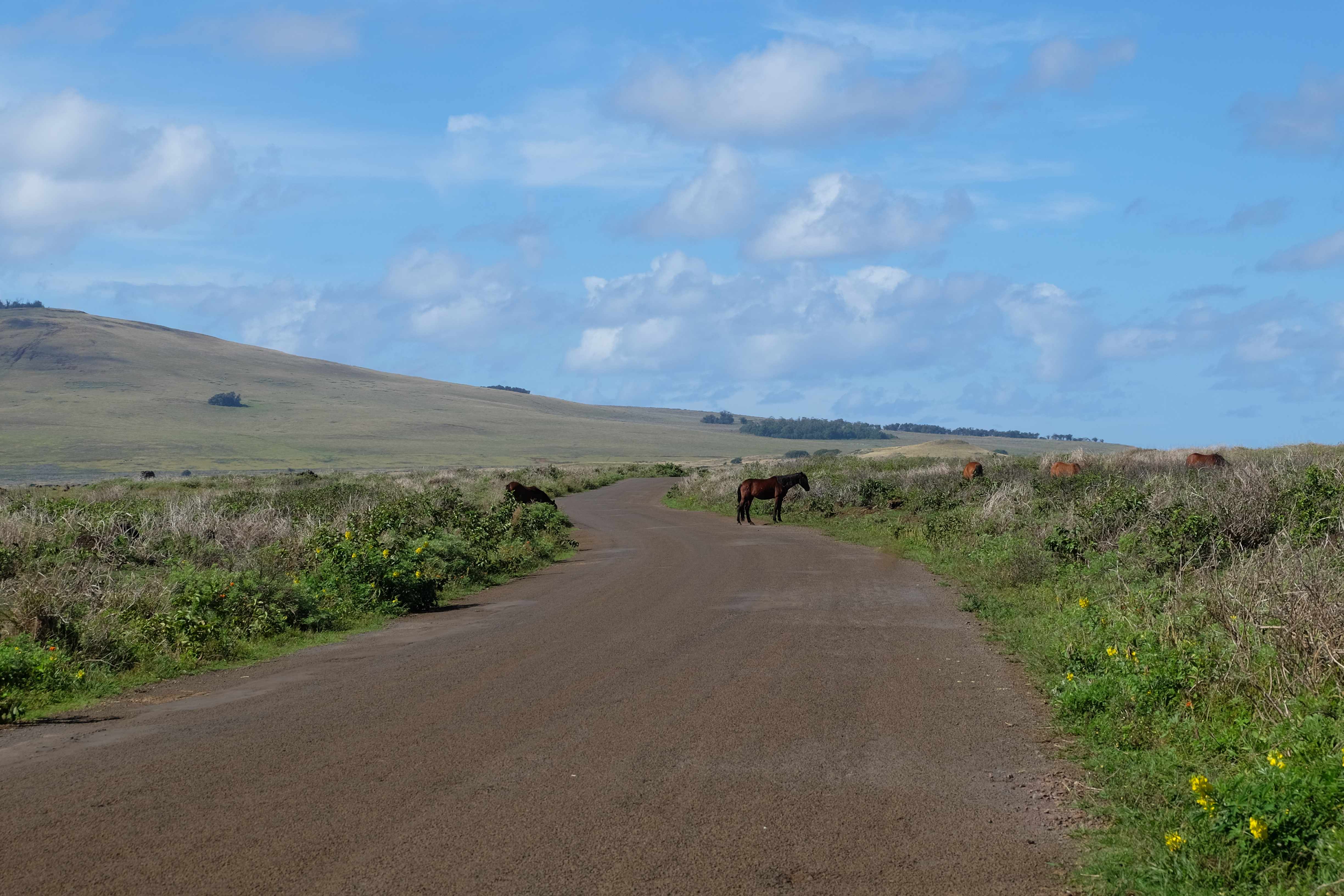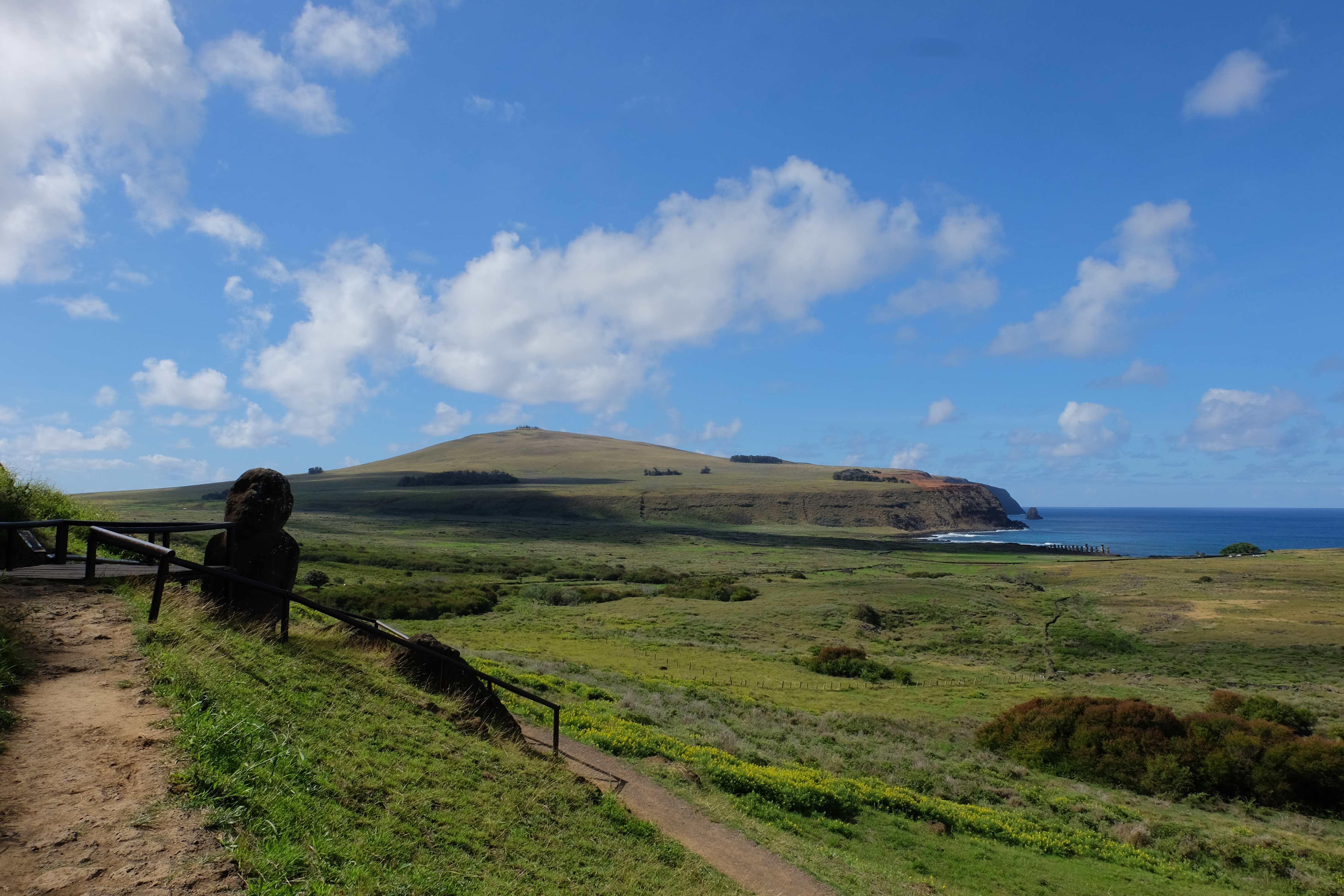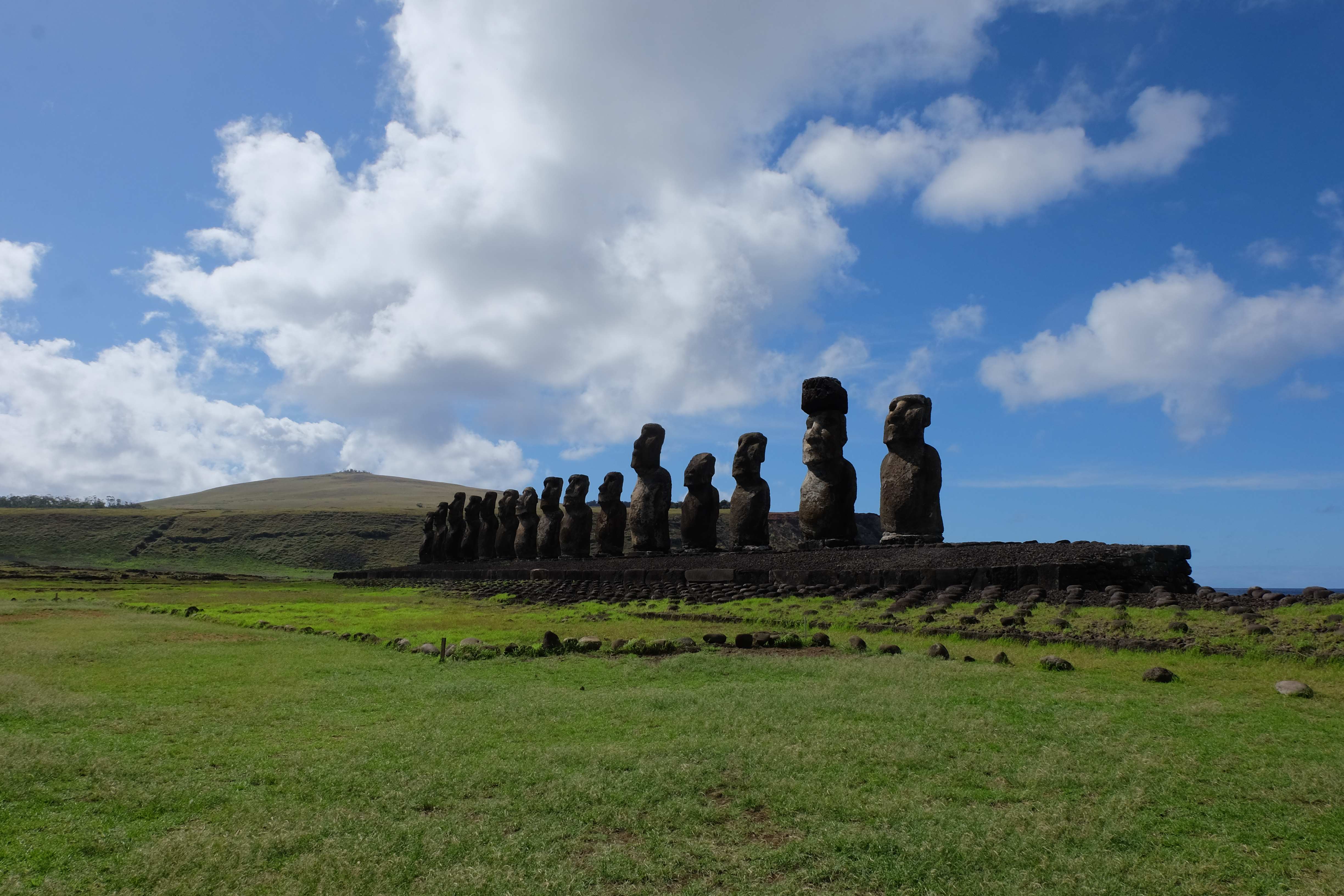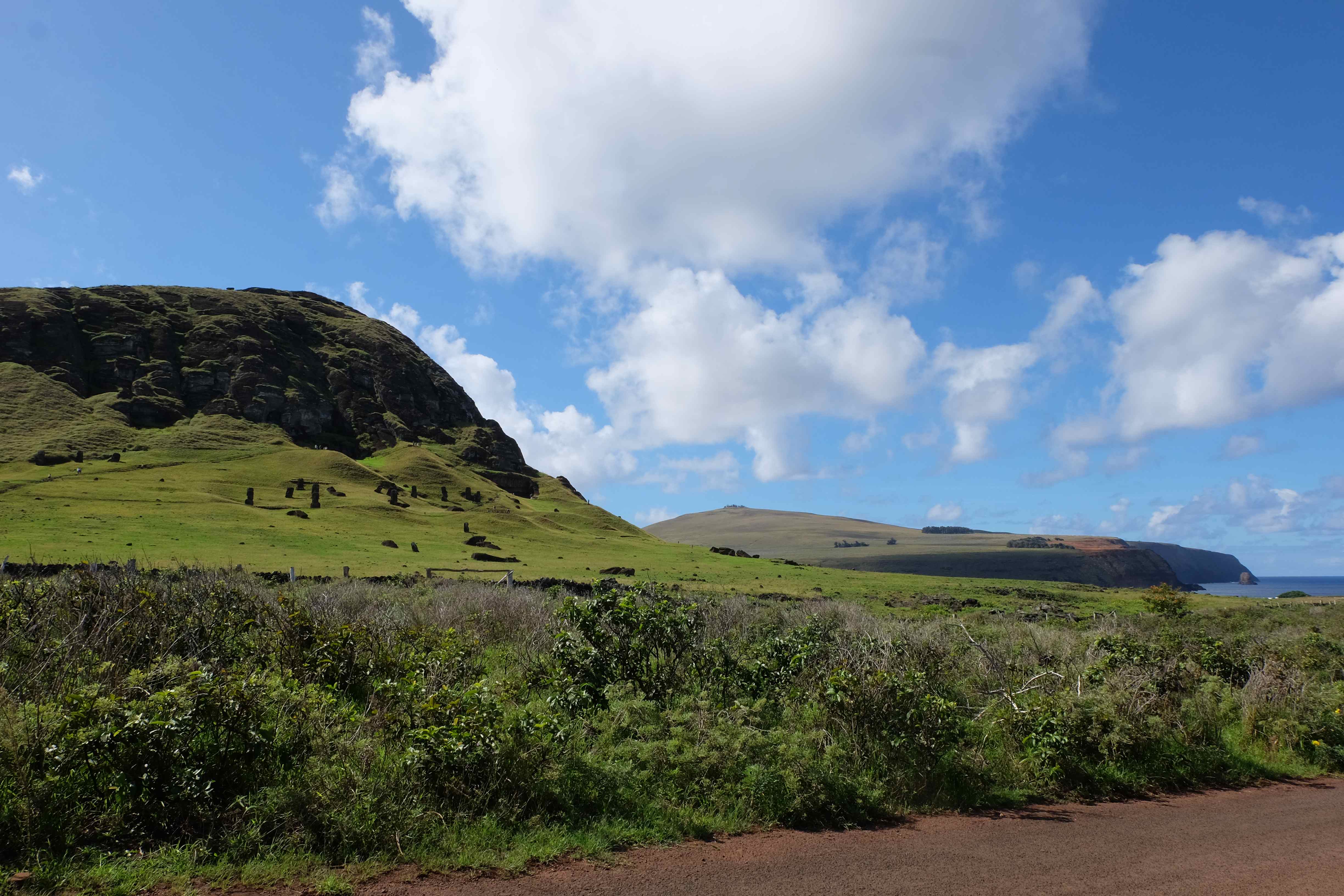 Auf der Osterinsel gibt es vieles zu erkunden sobald man die Hauptsiedlung verlässt. Spuren einer alten Kultur warten auf einen um ihm die Geschichte der ersten Segler zu erzählen, welche auf einem Boot hierhin gekommen waren und die Rapa Nui Kultur auf diesen Landfleck mitten im Ozean mit sich brachten. Riesige, imposante Steinstrukturen zu Männern, legendären Vorfahren und für die Einheimischen nicht nur interessanten, sondern auch bedeutungstragenden Gesichtern geformt weisen von einer mystischen und mythischen Zeit zugleich, welche hierzulande, weit weg vom Rest der Welt – während die Inkas, Mayas und Azteken dem südamerikanischen Kontinenten zu einer Blütezeit verhalfen – die Wiege einer eigenen Kultur schuf: die Rapa Nui. Es war ein unglaublich schönes, gewaltiges jedoch unerklärbar mystisches Gefühl diesen riesigen Steinen in menschlicher Gestalt gegenüberzustehen, ihre Präsenz lediglich als unaufgeklärte Nichtkenner wahrzunehmen und dabei trotzdem den Hauch einer gewissen zeitüberdauernden Hinterlassenschaft zu spüren. Riesige Zeremonie-Anlagen, ganze Hügel voller alten steinigen Gestalten, aus dem Nichts herausragende und geheimnisvolle „Männlein mit Hut“… und das überall, an allen Seiten einschränkende Wasser, welches einen ständig erinnerte, dass man sich lediglich auf einem Fleck Land befindet… die Kombination all dieser Gegebenheiten verwandelten die Osterinsel in einen speziellen Ort, an welchem man sich fremd und wohl zugleich fühlte.