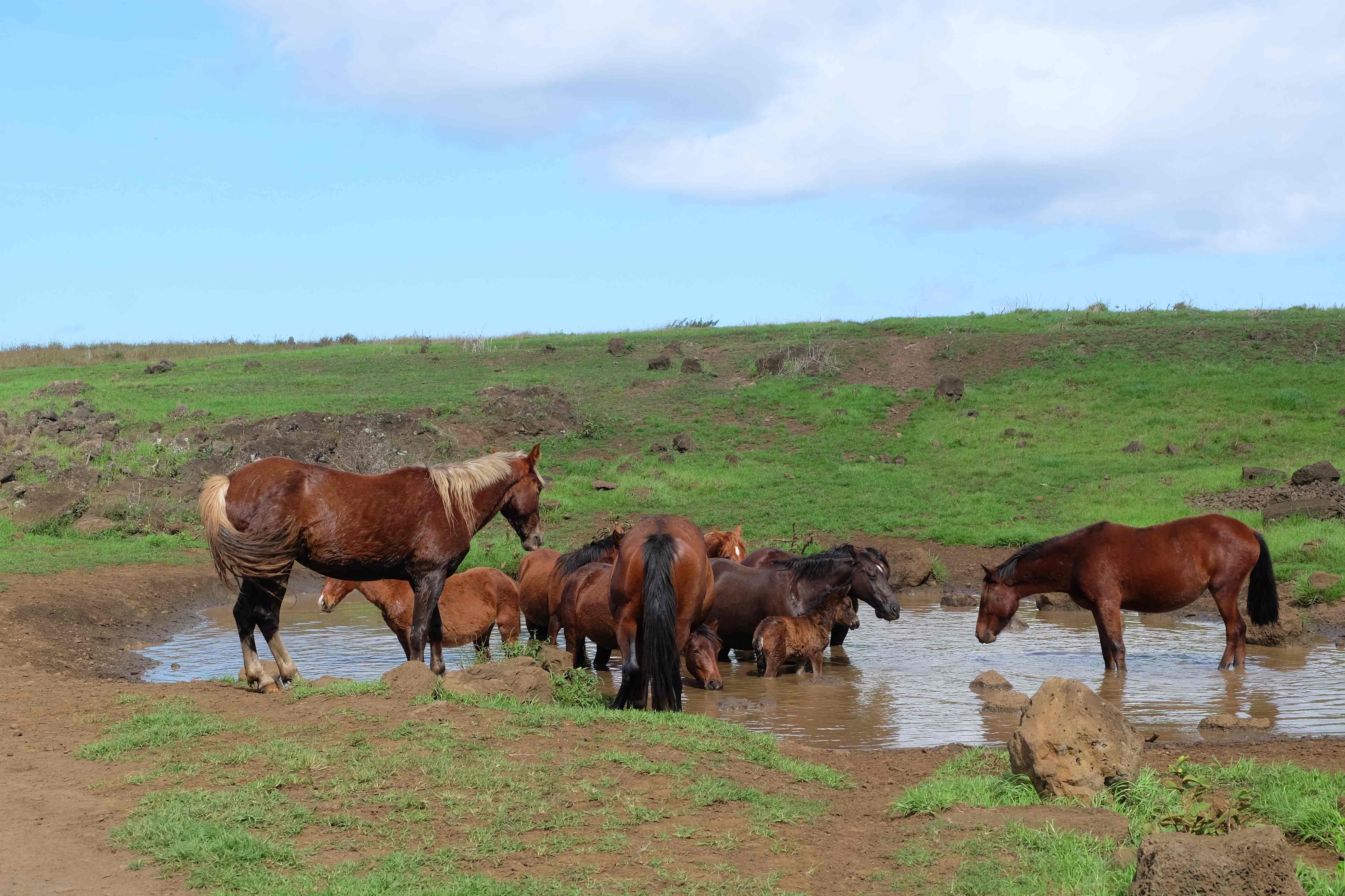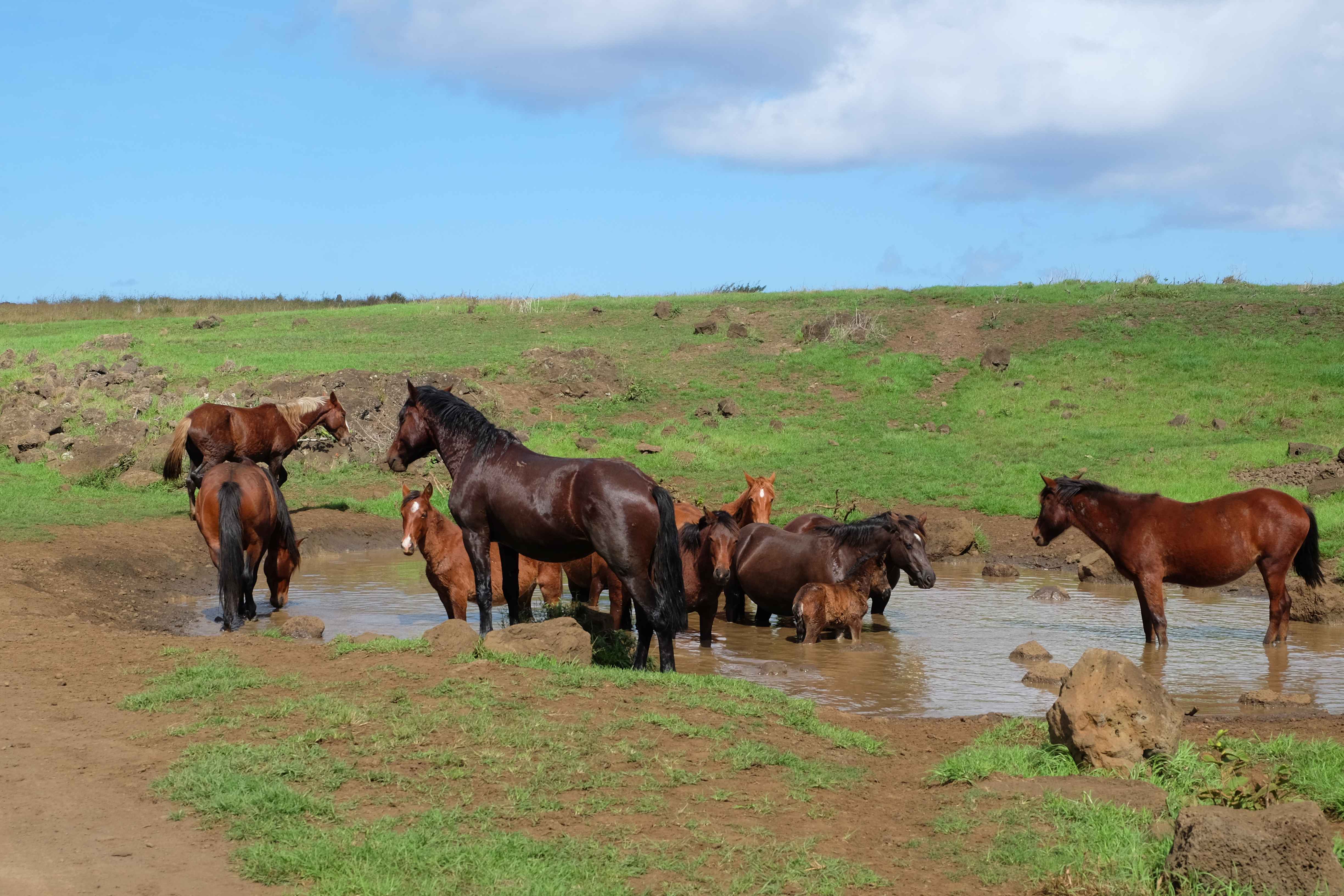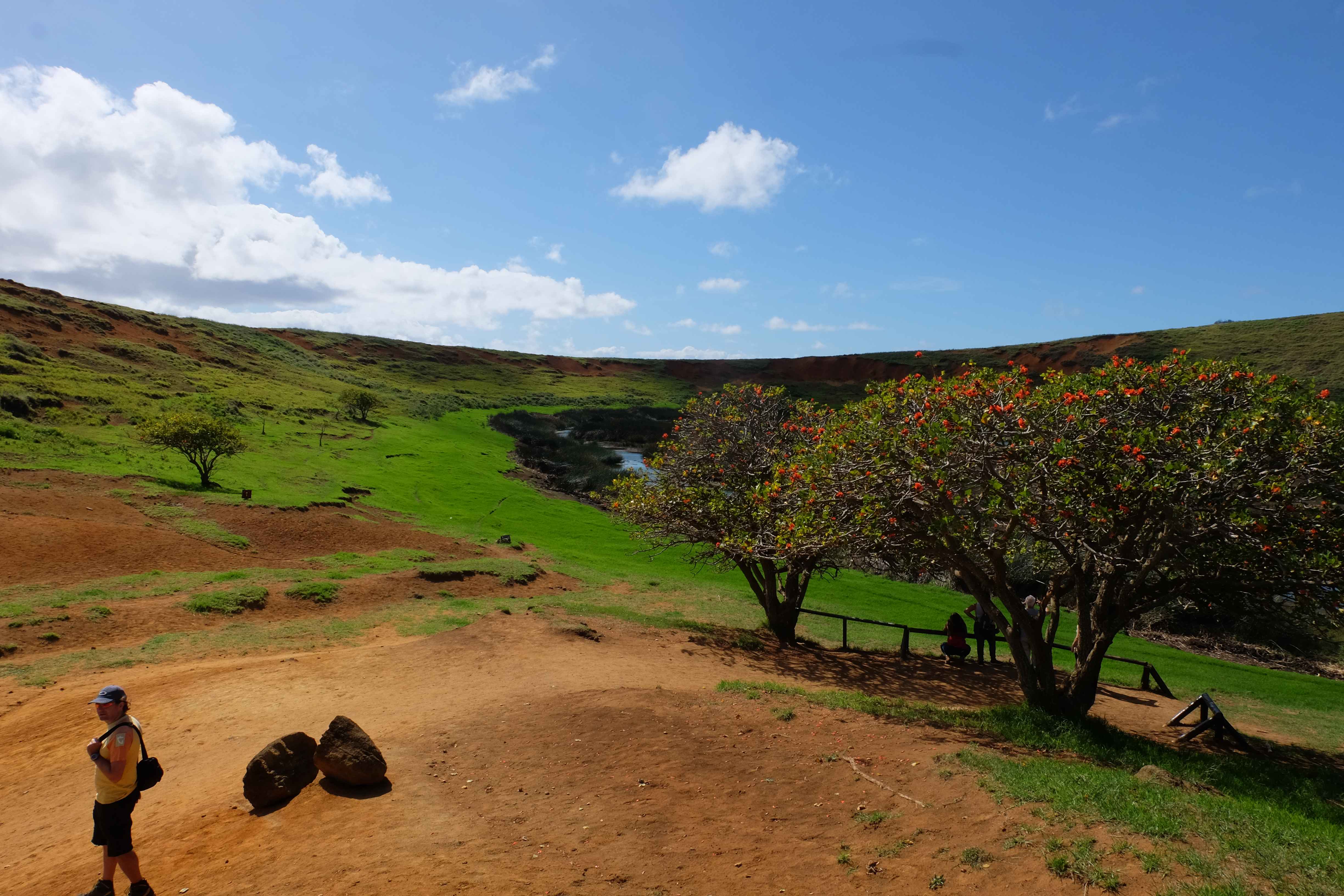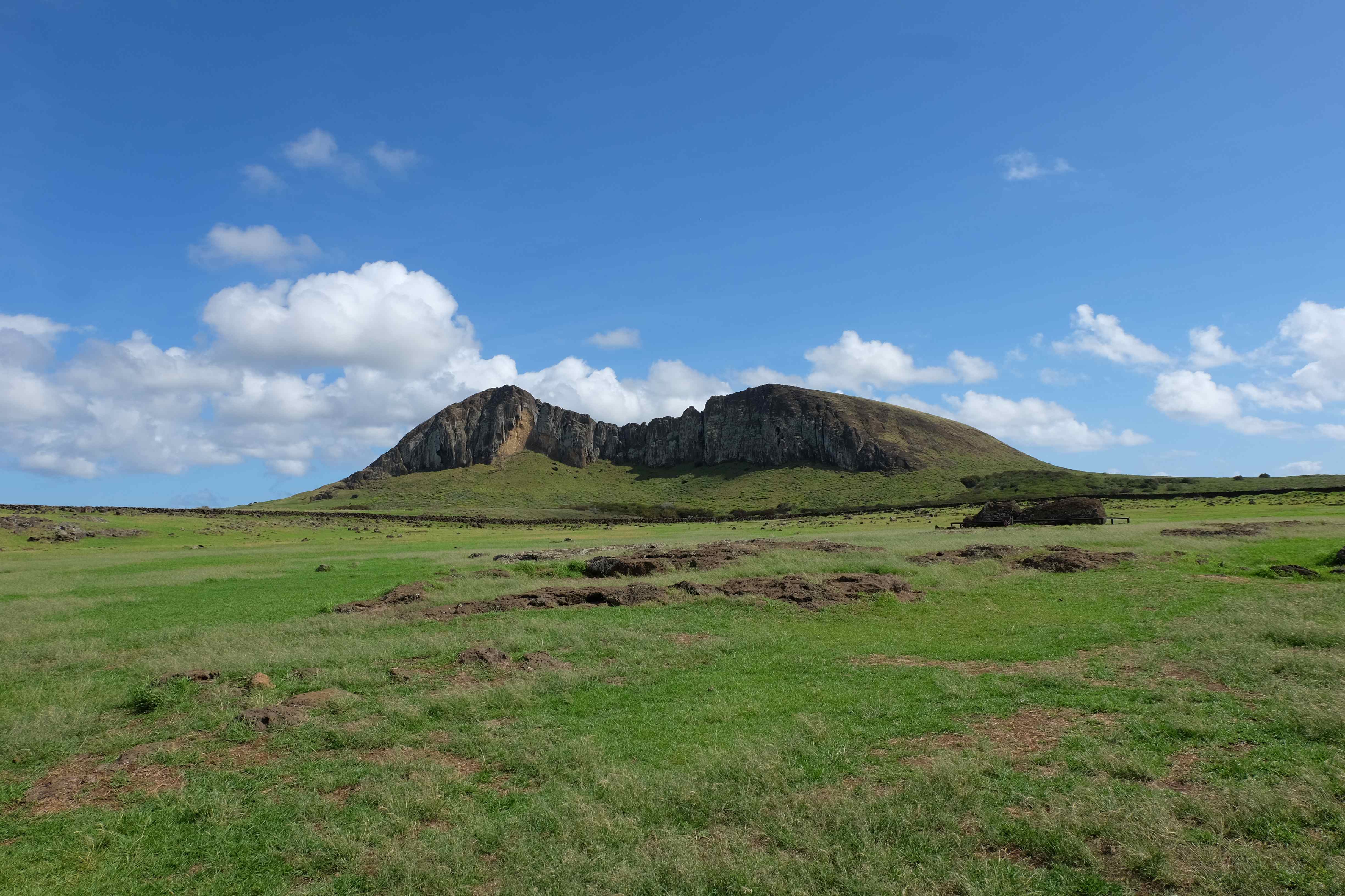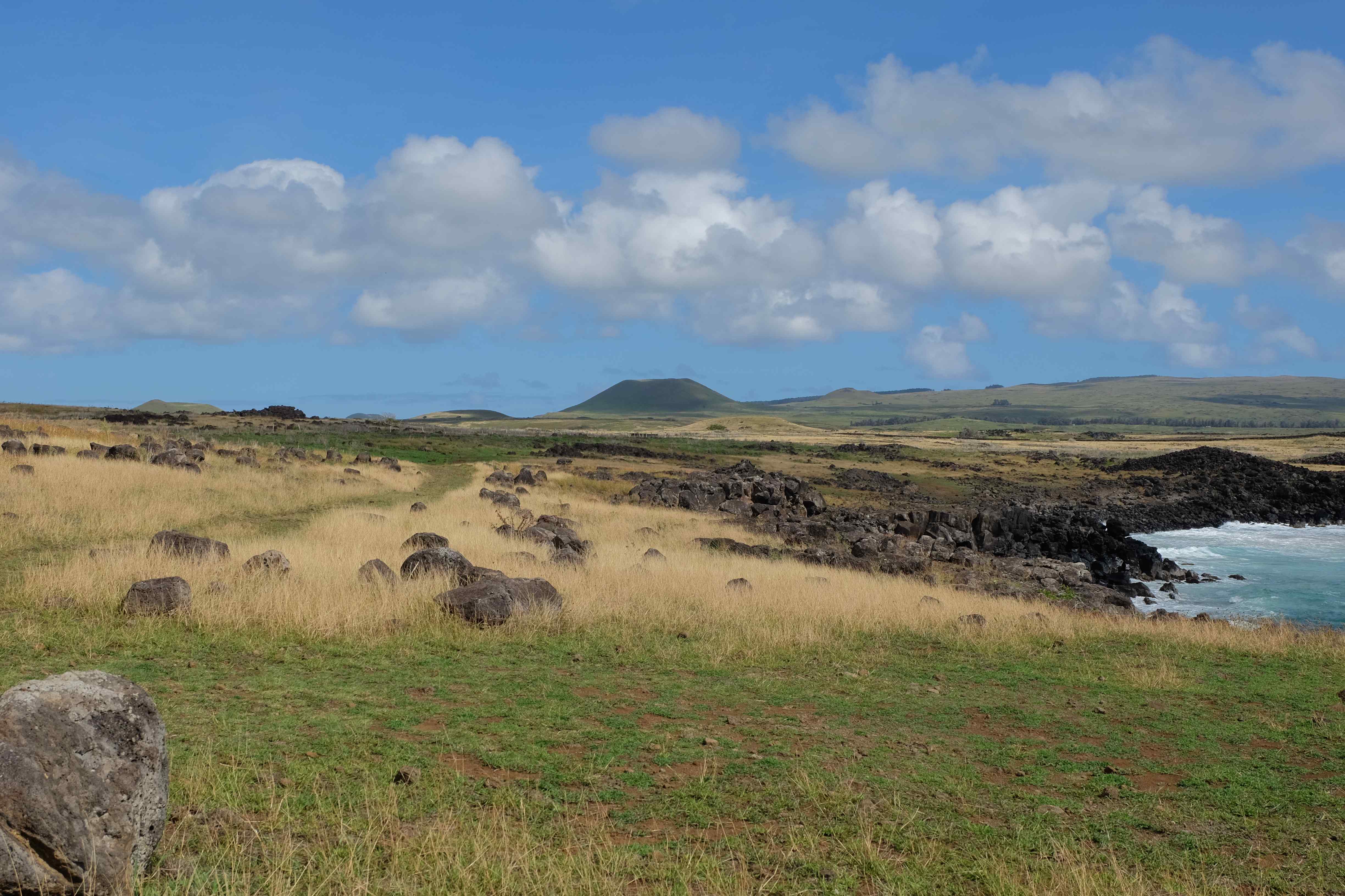 Auf der Osterinsel gibt es vieles zu erkunden sobald man die Hauptsiedlung verlässt. Spuren einer alten Kultur warten auf einen um ihm die Geschichte der ersten Segler zu erzählen, welche auf einem Boot hierhin gekommen waren und die Rapa Nui Kultur auf diesen Landfleck mitten im Ozean mit sich brachten. Riesige, imposante Steinstrukturen zu Männern, legendären Vorfahren und für die Einheimischen nicht nur interessanten, sondern auch bedeutungstragenden Gesichtern geformt weisen von einer mystischen und mythischen Zeit zugleich, welche hierzulande, weit weg vom Rest der Welt – während die Inkas, Mayas und Azteken dem südamerikanischen Kontinenten zu einer Blütezeit verhalfen – die Wiege einer eigenen Kultur schuf: die Rapa Nui. Es war ein unglaublich schönes, gewaltiges jedoch unerklärbar mystisches Gefühl diesen riesigen Steinen in menschlicher Gestalt gegenüberzustehen, ihre Präsenz lediglich als unaufgeklärte Nichtkenner wahrzunehmen und dabei trotzdem den Hauch einer gewissen zeitüberdauernden Hinterlassenschaft zu spüren. Riesige Zeremonie-Anlagen, ganze Hügel voller alten steinigen Gestalten, aus dem Nichts herausragende und geheimnisvolle „Männlein mit Hut“… und das überall, an allen Seiten einschränkende Wasser, welches einen ständig erinnerte, dass man sich lediglich auf einem Fleck Land befindet… die Kombination all dieser Gegebenheiten verwandelten die Osterinsel in einen speziellen Ort, an welchem man sich fremd und wohl zugleich fühlte.