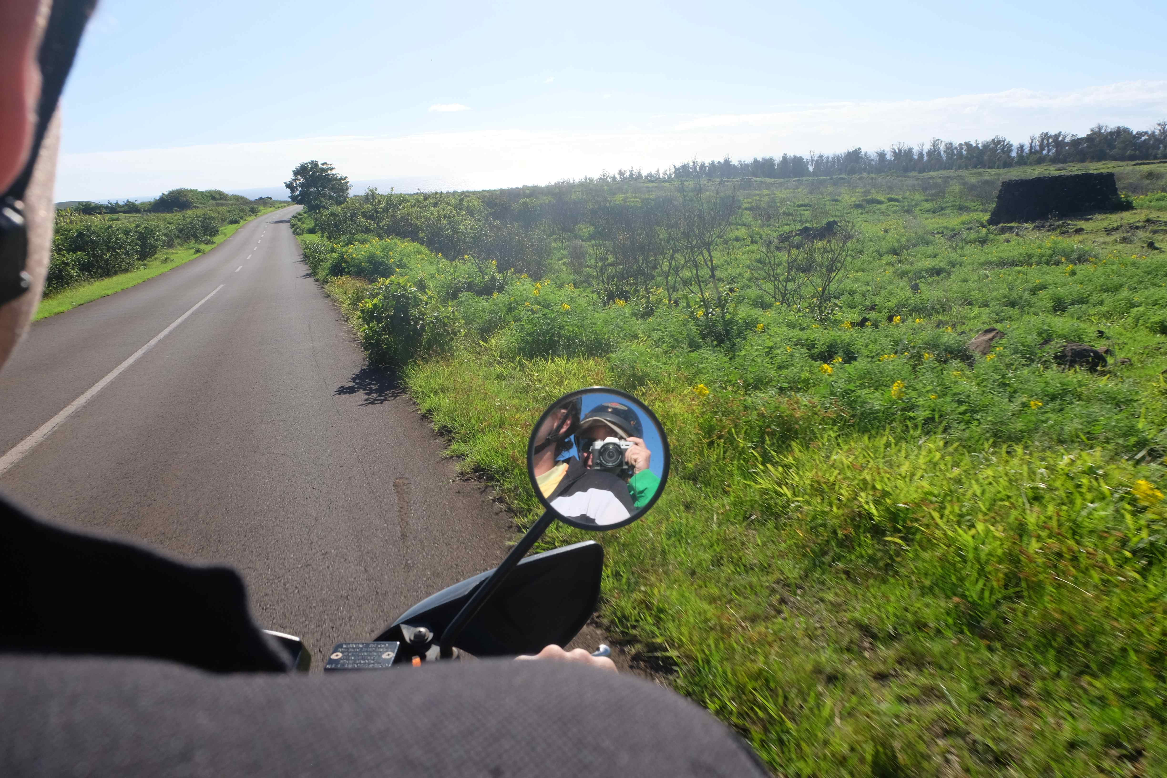 Obwohl wir bei Bob Marley und seinen Freunden zuhause (einfach ohne Bob Marley) landeten, waren wir hier trotzdem sehr aktiv: ich meinerseits setzte mich sehr viel mit Tauchen auseinander, liess mich in einigen Bereichen weiterzertifizieren und bestand sogar Prüfungen – und wir erkundeten die Insel. Wie macht man denn das an einem solch teuren Ort? Selbstverständlich auf abenteuerliche Art und Weise mit dem Transportmittel, welches am günstigsten zu mieten ist: ein Scooter! 🙂 Natürlich erhielten wir die dazugehörigen Helme, welche sehr nützlich waren, vor allem als Rafi zu viel Freude auf den hügeligen und nichtasphaltierten Wegpartien hatte und sein Training für die Osterinsel-Scootermeisterschaft absolvieren wollte – und dabei vergass, dass er hinten jemanden hatte, dessen Hintern nach einem ganzen Tag die Form des Sattels angenommen hatte. 🙂