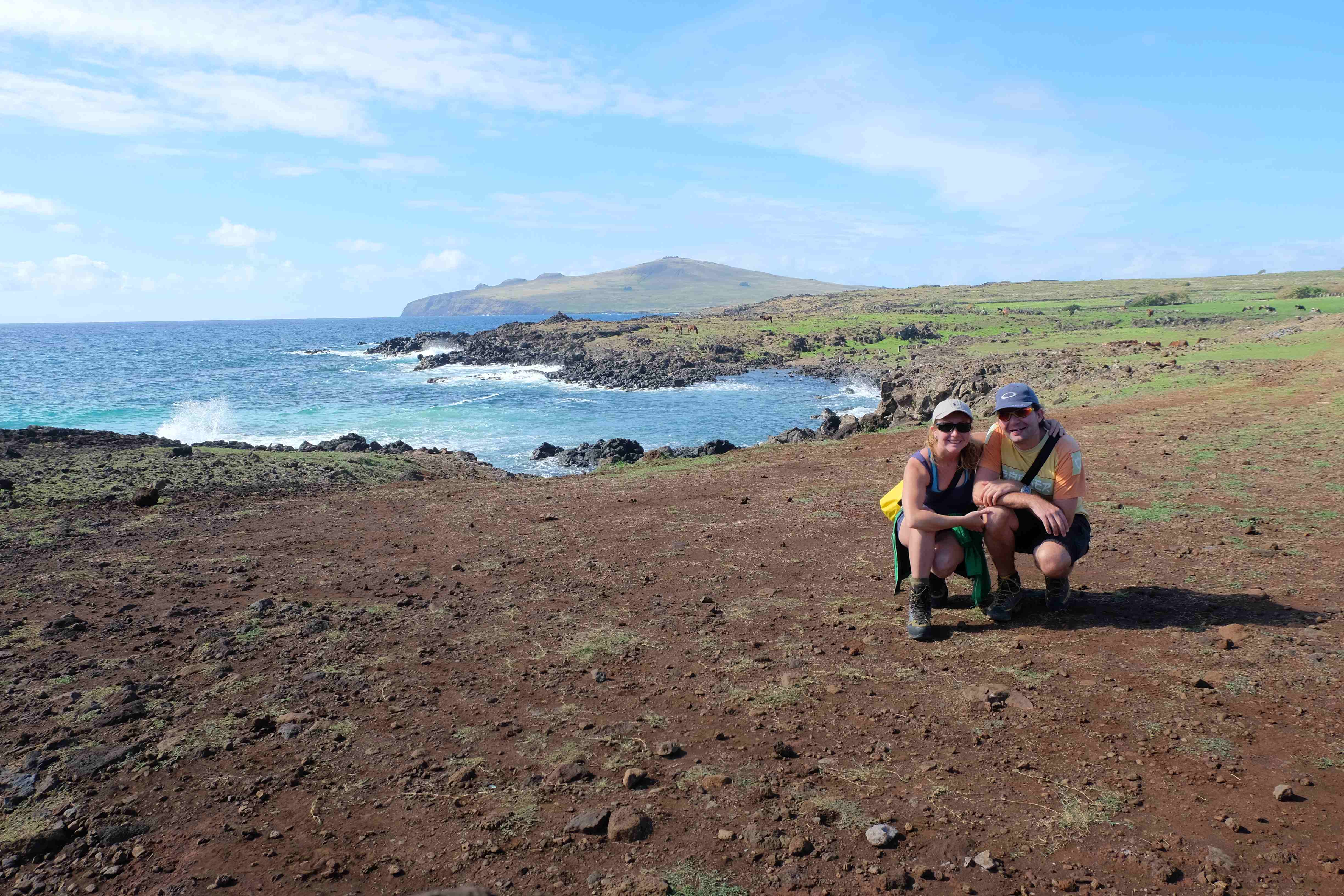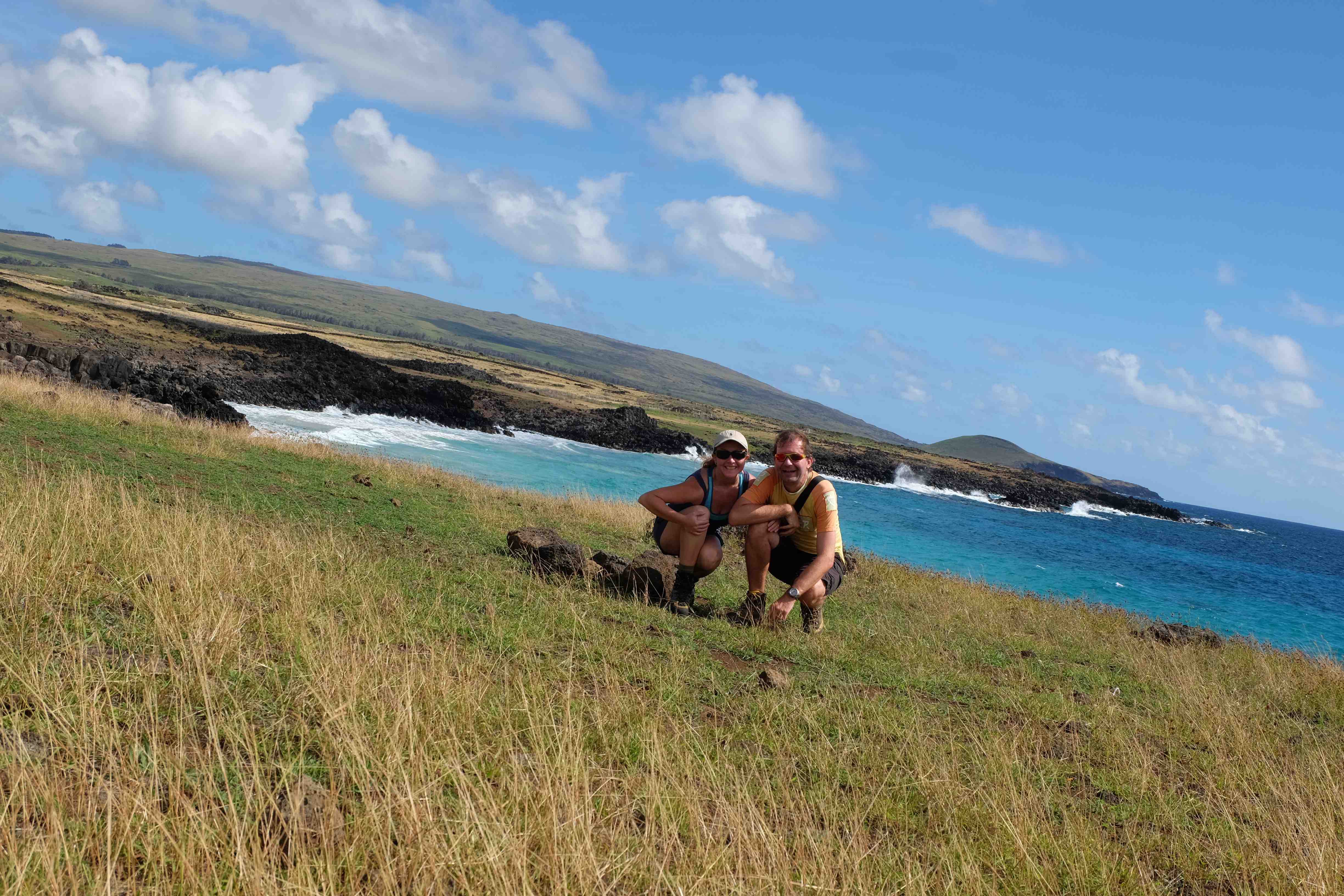 Pe Insula Pastelui exista multe de vazut si de descoperit odata ce ai iesit din asezarea principala. Urme ale unei culturi de mult uitate care incearca sa iti spuna povestea primilor navigatori care au ajuns cu niste barci simple pe aceste meleaguri si au adus cu ei cultura Rapa Nui pe acest petec de pamant inconjurat de ocean. Structuri de piatra impresionante si impozante carora in urma cu secole le-a fost data forma de barbati, stramosi legendari sau fizionomii (pentru bastinasi cel putin) nu doar interesante ci si pline de semnificatie fac dovada unor zile de multe apuse, a unei epoci mitice si mistice deopotriva care a creat pe aceste meleaguri – in timp ce civilizatiile Inca, Maya si Azteca se dezvoltau intr-o epoca de aur a continentului sudamerican – leaganul unei culturi proprii: cultura si civilizatia Rapa Nui. Ne-a incercat un sentiment nespus de frumos, puternic si inexplicabil de mistic cand ne-am aflat vis-a-vis de aceste blocuri de piatra cu forma umana, cand le-am perceput prezenta doar cu ochii unor laici necunoscatori si nelamuriti cu privire la incarcatura lor semnificativa sau simbolica, insa am simtit totusi un aer de transcendenta, de mostenire culturala lasata in urma pentru intreaga omenire. Locuri de ceremonii religioase de dimensiuni impresionante, dealuri intregi pline de personaje de piatra, „omuleti cu palarie” care se inaltau din nimic peste tot cu un aer de mister… si nu in ultimul rand apa care se zarea in fiecare parte unde cautai orizontul cu ochii si iti aducea aminte ca te afli doar pe un mic petec de pamant… combinatia acestor elemente au transformat Insula Pastelui pentru noi intr-un loc special, plin de incarcatura pozitiva, un loc in care ne-am simtit bine si straini deopotriva.