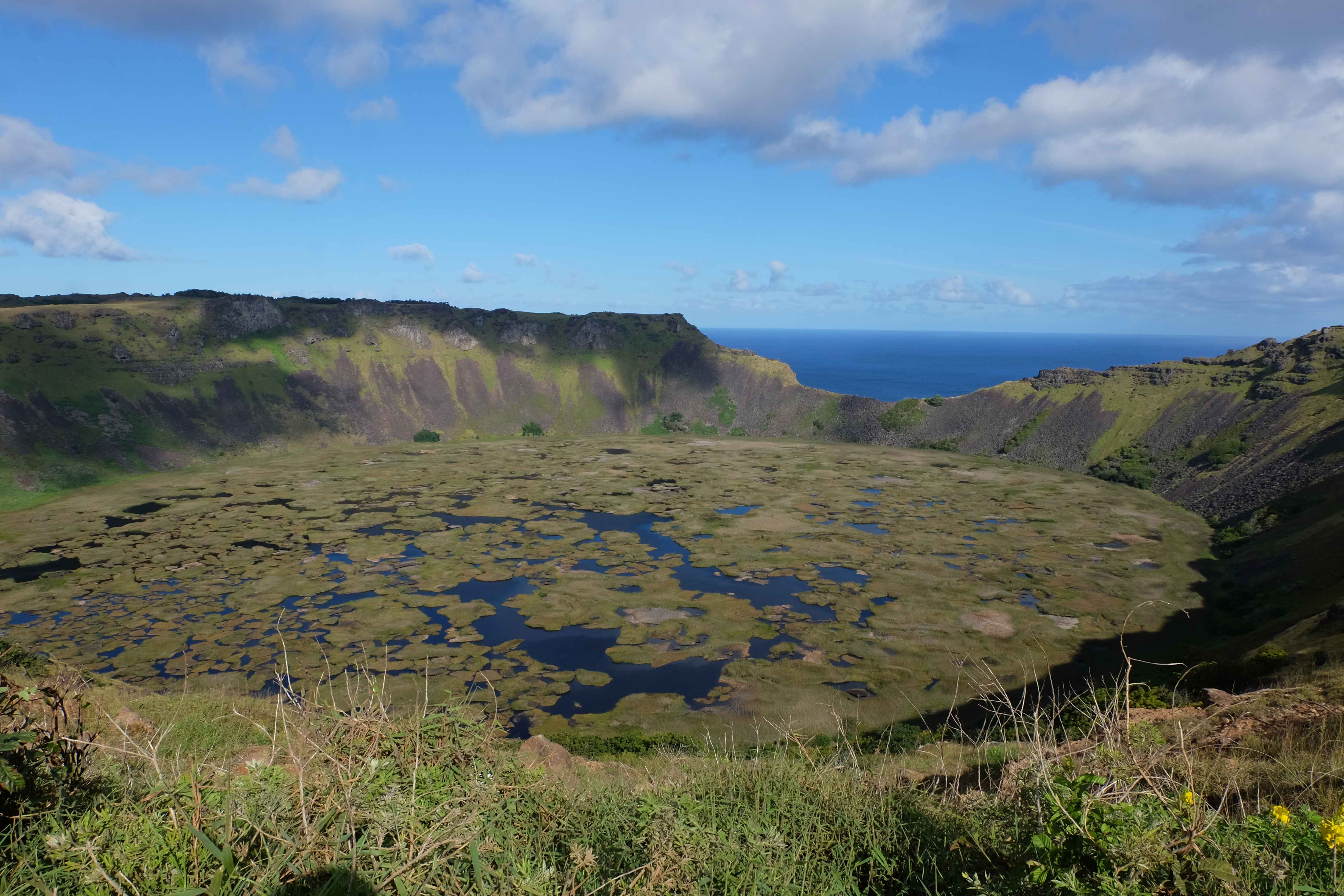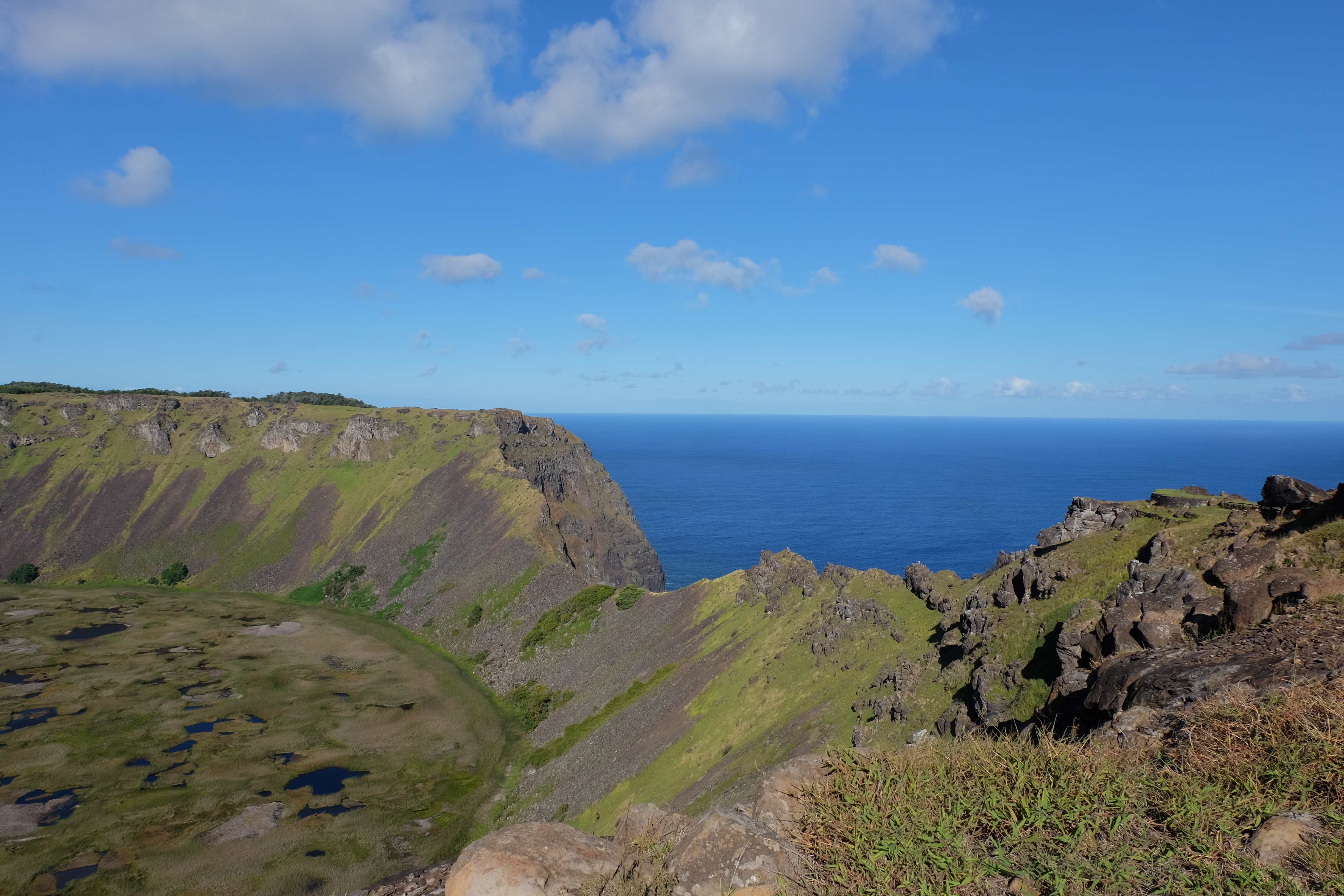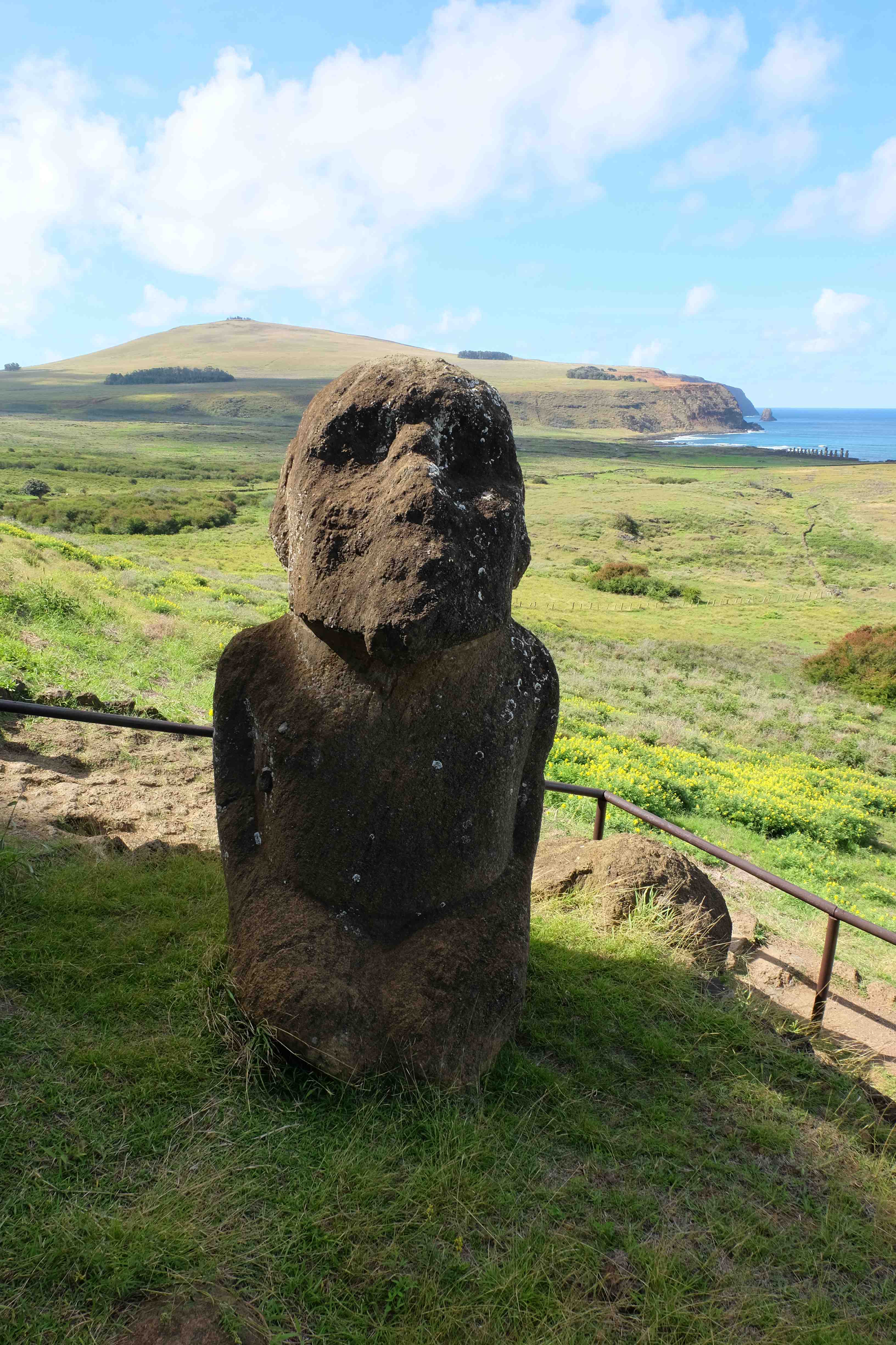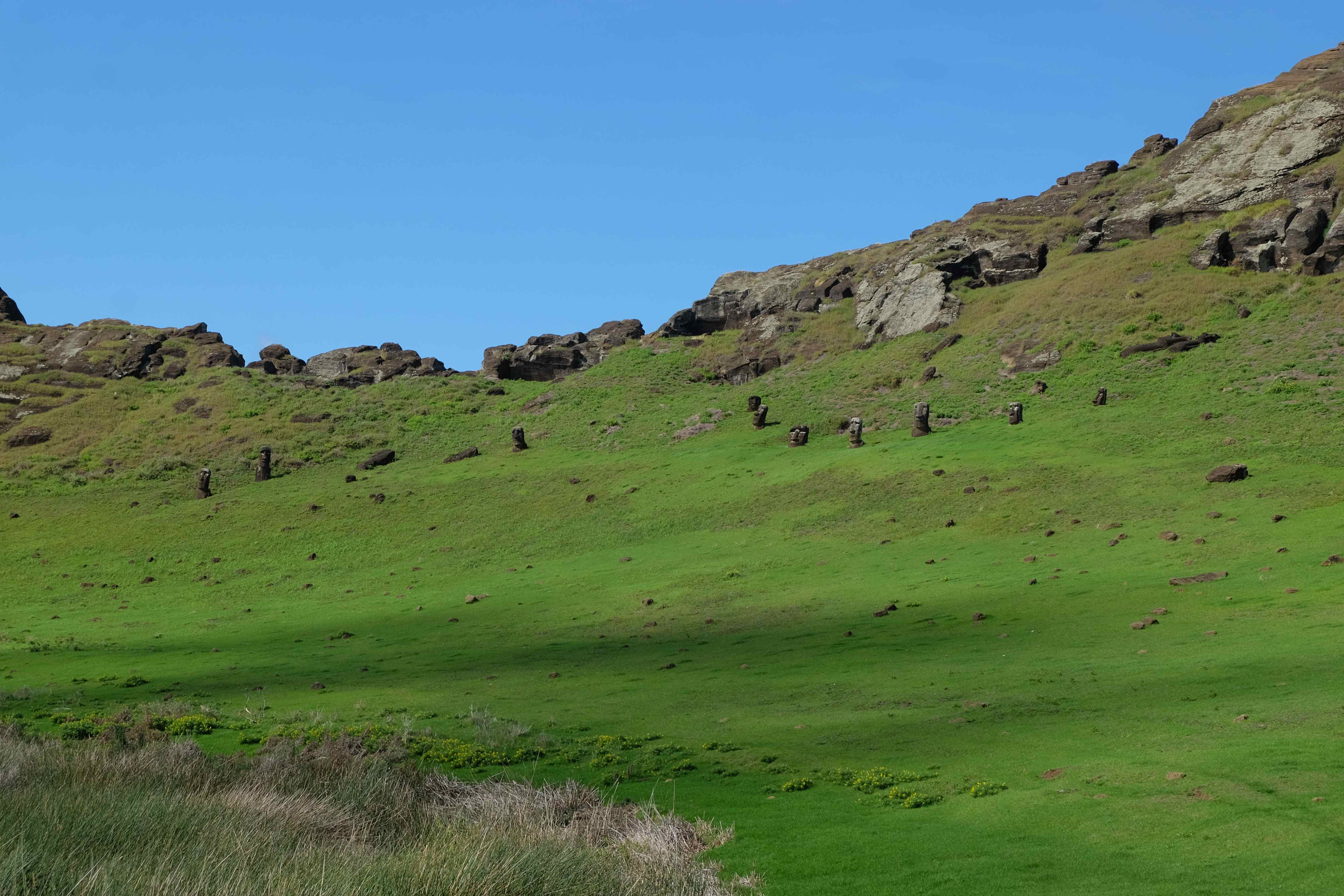 Insula Pastelui… de ce se numeste asa? Oare pentru ca acolo se sarbatoreste Pastele pe parcusul intregului an? Locuieste cumva iepurasul aici? Sau poate se hranesc toti iepurii de aici cu atata iarba, pana cand cred ca sunt iepurasul? Totul este gratis de Paste? Sau poate ca cepele enorme care se gasesc aici pe insula (vezi poze) sunt semanate sau recoltate de Paste? 🙂 Nu, nici vorba, se pare ca numele se datoreaza doar faptului ca a fost descoperita de Paste. Denumirea bastinasa autohtona este insa Rapa Nui si nu are nimic de-a face cu sarbatoarea cristina.