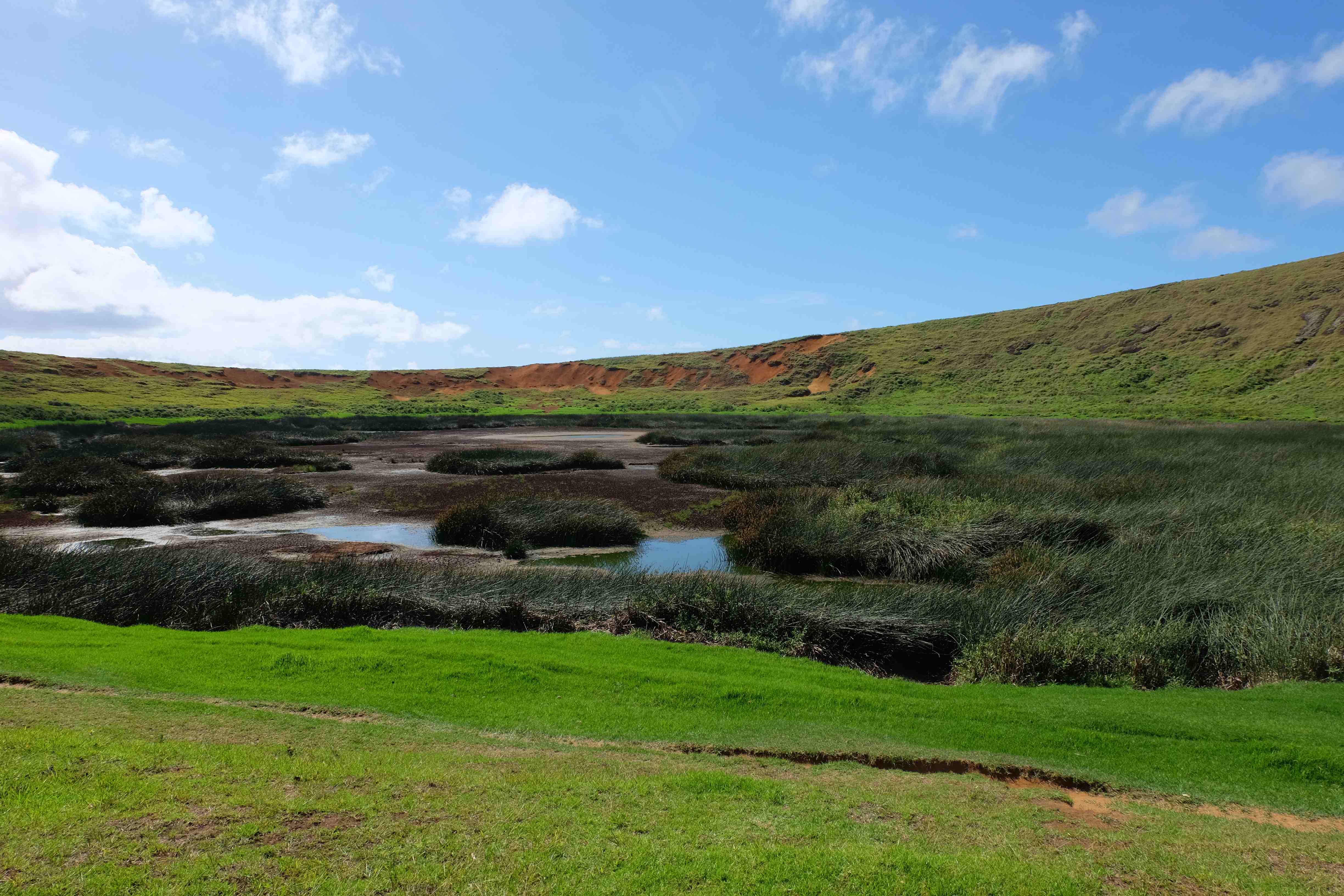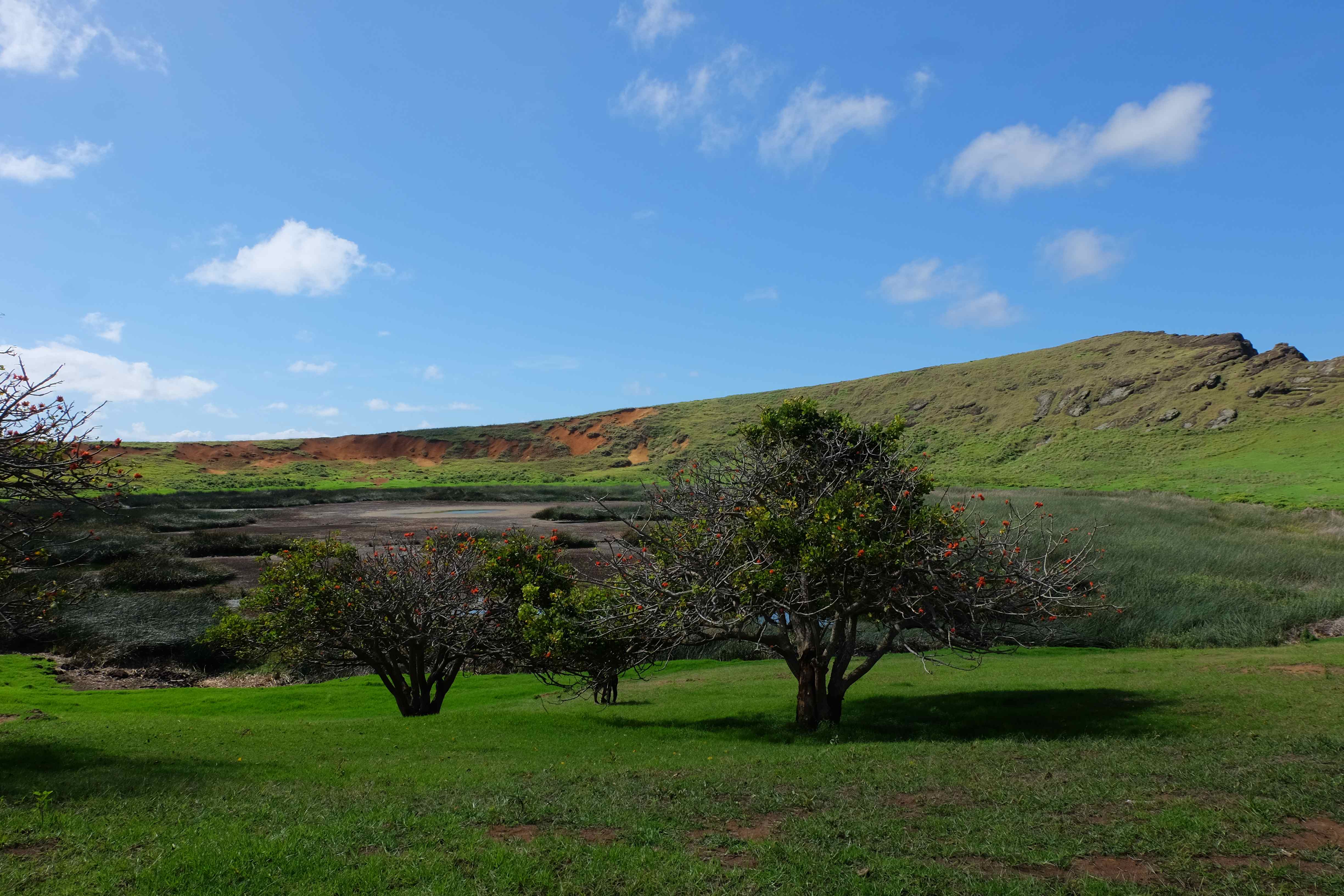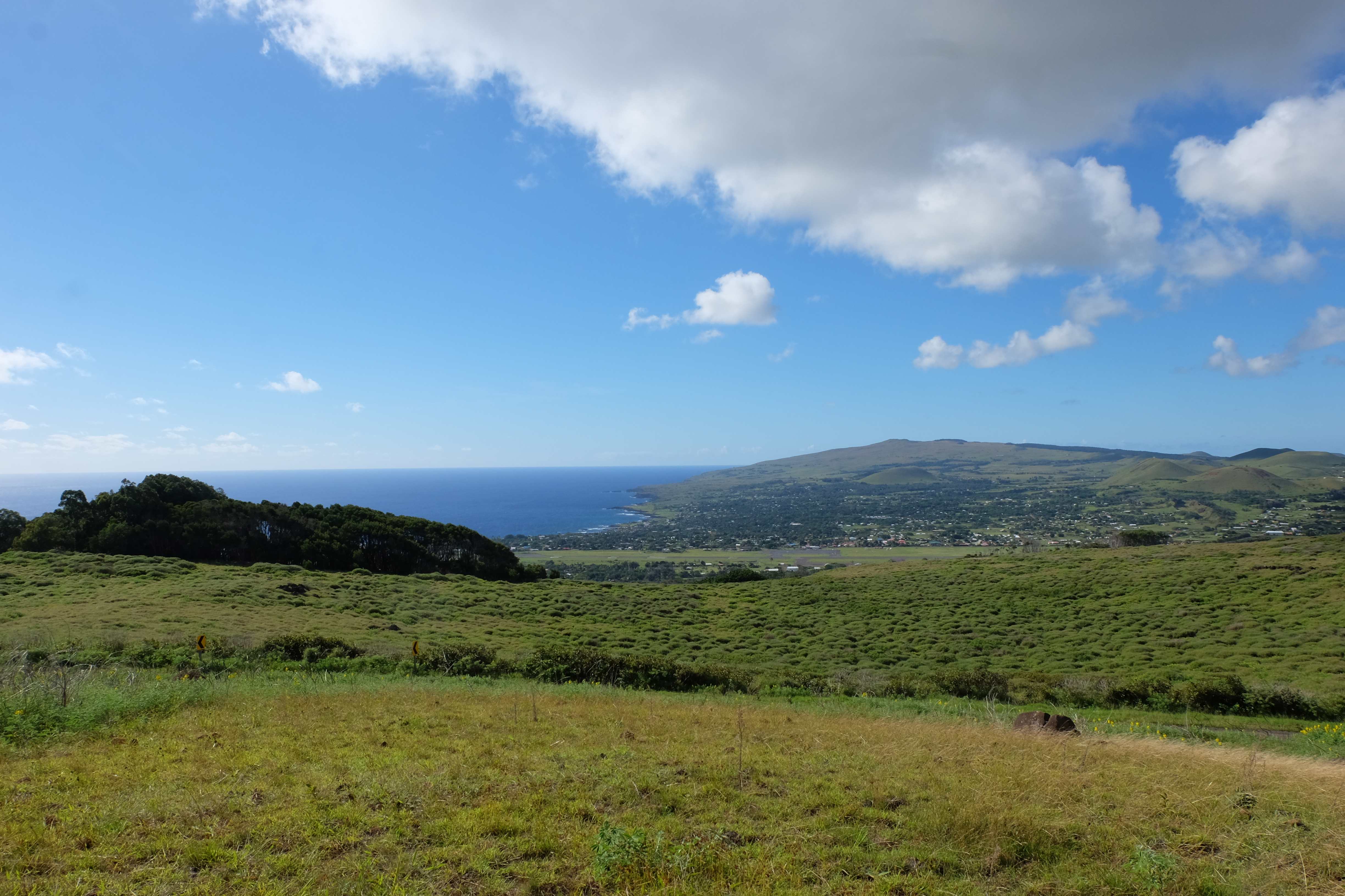 Eine Insel mitten im Nirgendwo, die zwar politisch zu Chile gehört, kulturell polynesisch ist, modern eine eher amerikanische Orientierung anstrebt und doch nichts (mehr) von den Dreien wirklich versinnbildlicht. Nach einer 10-minütigen Unterhaltung mit unserem Gastgeber und seinen Freunden – alle Festland-Chilenen, welche zum Nichtstun bzw. höhere Stundenlöhne kassieren und diese gleich darauf für Bier ausgeben hierhin ausgewandert waren – stellten wir fest, dass die Osterinsel für die Chilenen das Indien der Europäer war: ein Ort an welchem man einfach sein konnte, das Lockere des Insellebens geniessen und das Nichtstun erleben, eine gewisse Regellosigkeit bzw. Lockerheit, welche ein Entkommen oder Flucht von der Hektik des Festlandes garantierten. Ein Ort so weit weg vom Rest der Welt, dass es kein Schwein kümmerte, was man hier anstellte oder ob man einen Drogengarten in dem Zimmer versteckte, welches man seinen Couchsurfern angeboten hatte. 🙂 „Gras“… es hatte sehr viel davon auf der Osterinsel – und nicht nur am Boden! 🙂 Ein ursprünglich einheimisches Pflanzenmittel (genauso wie die Coca-Blätter in Bolivien und Peru oder die Betelnüsse in Papua Neuguinea), welches mal Bestandteil der lokalen Kultur war – heutzutage jedoch von anderen Kulturen aufgenommen, in den eigenen Koordinaten eingebettet und dementsprechend missverstanden und somit zu einem Fluchtmittel aus der eigenen Realität missbraucht. Dieses Gefühl hatte man zumindest als man Seite an Seite Einheimische und Festland-Chilenen rauchen sah. Was einem jedoch durch den Kopf ging, als man den durchs ganze Haus verteilte Rauch einatmete bzw. die darin getränkten Rucksäcke und eigene Kleider roch, war eher: hoffentlich werden wir beim Ausreisen am Flughafen nicht von der Polizei angehalten! 🙂