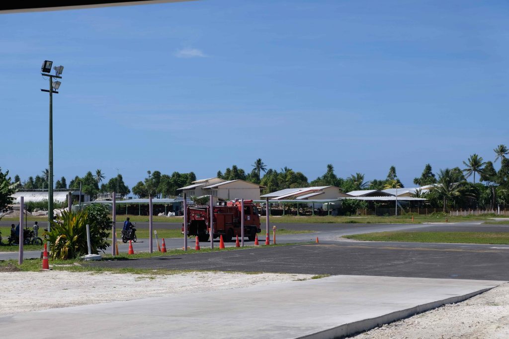 Insa inapoi la anuntul nostru: Tuvalu, sosim! Si inca ce sosire! Credeti-ne, aterizarea aici este o experienta aparte: pilotul anunta clar si raspicat ca toata lumea trebuie sa se pregateasca de aterizare, in urechi se resimte un pocnit usor (in afara de cei care ca si mine sunt de cateva zile locuitori de pestera si au urechea dreapta infundata!), te uiti pe fereastra si realizezi ca avionul pierde altitudine si ca este pe punctul de a ateriza – si iata-te ca deja te pregatesti sa scormonesti dupa vesta de salvare caci, da-o naibii de treaba, o sa aterizam in apa fratilor! Sau totusi nu? Insula principala a atolului principal (unde se afla de altfel aeroportul) este intr-atat de ingusta, incat nu o vezi din avion cand pilotul se indreapta spre ea… si anume atat de ingusta: