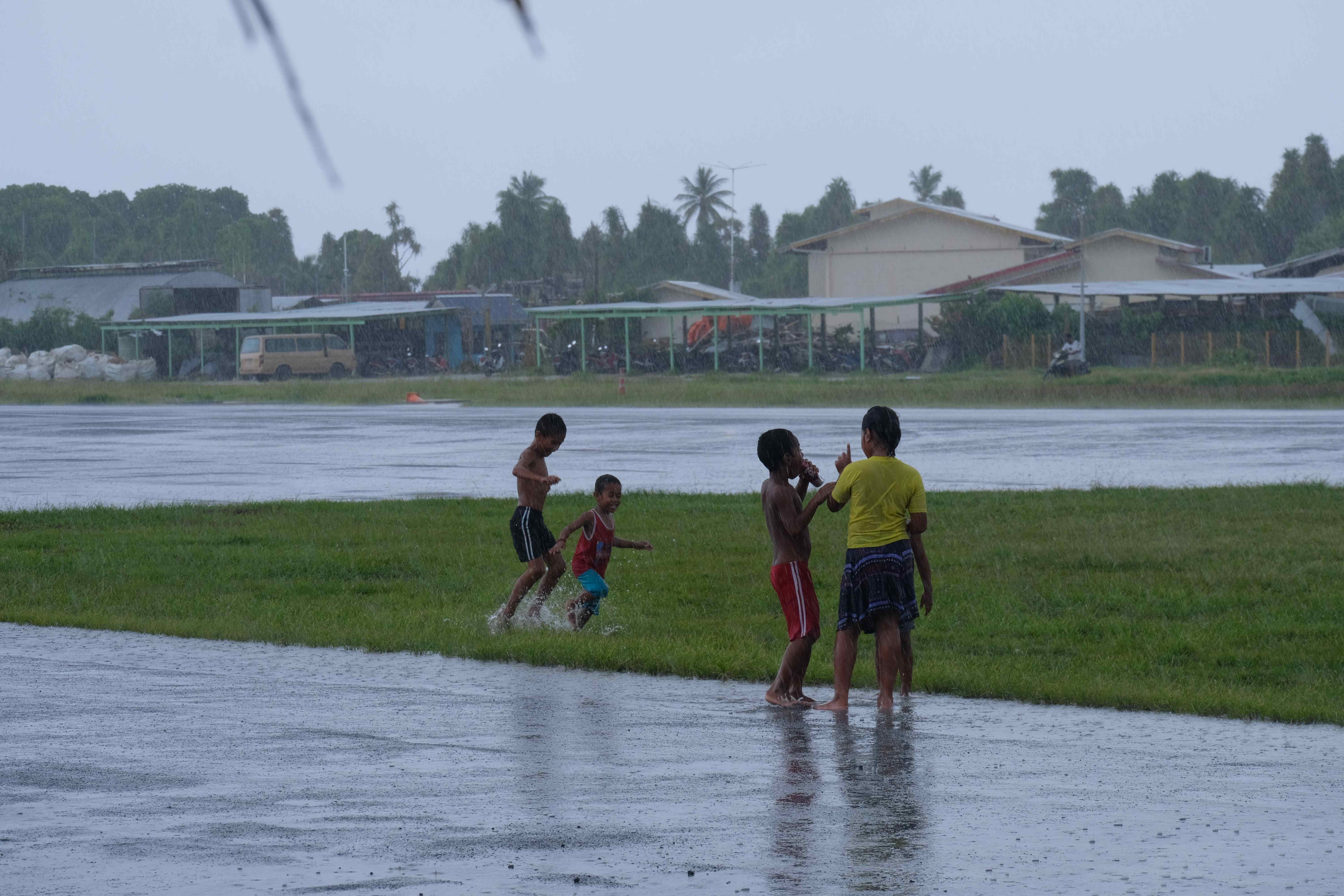Am Tag darauf ging es ziemlich früh los: viele bürokratische Sachen standen auf dem Programm: mit den Fisheries (die Behörde, welche das Angeln sowie den Schiffstransport in der Region überwacht) Kontakt aufnehmen um das Tauchen zu organisieren, zum Gemeindehaus gehen um die Tour in die Marine Conservation Area zu planen; ins Spital um mein verstopftes Höhlenohr anschauen zu lassen und schlussendlich ins Zentrum um ein paar Alltagsfotos von den Einheimischen und den im Regen spielenden Kindern zu schaffen. Huch, ganz schön anstrengend! Aber schön der Reihe nach! Bei den Fisheries erlebten wir mal tuvaluische Hilfsbereitschaft: während sämtliche Taucher auf den Ausseninseln waren und 16 Tage lang dort verweilen mussten (natürlich, genau dann, wann ich komme!) und meine „kommt jemand von euch mit mir tauchen und mietet ihr mir die Ausrüstung“-Bitte mit einem Nein beantwortet wurde, reichten meine Verzweiflung und ein mit Hundeäuglein formuliertes „Bitte schön“ bereits aus, um dieses ursprüngliche Nein in ein „kommt am Montag, das kriegen wir schon irgendwie hin“ zu verwandeln. Alles ist machbar hier, Zeit und Geduld muss man haben, die Inselkultur und den hiesigen Rhythmus muss man respektieren können und schon klappt alles! Also ab zum Gemeindehaus, wo wir die Erlaubnis einholen mussten die Marine Conservation Area zu betreten. Natürlich ging das schnell: gezahlt wird nach der Tour, es kostet so und so viel, der Bootsfahrer erwartet euch am Dienstag Morgen um 9 Uhr (samt der von den Fisheries gemieteten Tauchausrüstung) hier! Ganz ehrlich: so etwas in Europa zu organisieren hätte mindestens 3 Mal so lange gedauert! Also durften wir ziemlich früh mit unserer To-Do Liste weitermachen: Spital um die taube Ina wieder aus der Höhle heraus zu kriegen. Während wir in Auckland darauf verzichteten, da wir bei einem Preis von ca. 400 CHF vor der Konsultation wie vor dem Teufel zurückschreckten, stolzierten wir hier voller Mut ins Krankenhaus, nach dem Motto: lieber ärmer als ganz taub! Wenig ahnten wir, dass mehrere Überraschungen hier auf uns warten würden: nein, das Spital ist kein aus Stroh zusammengeflochtenes Haus, welches beim Eingang Whiskey als Anästhetikum verteilt; nein, man muss weder andere umbringen um vor ihnen dran zu kommen, noch das Bett von zuhause mitnehmen, weil man hier übernachten muss bis man von einem Arzt gesehen wird: alles ist schön organisiert und es geht ziemlich schnell! Und… es geht noch weiter: bei der Patienten-Triage fanden wir nicht nur heraus, dass ich – wie immer – einen sehr tiefen Blutdruck habe, sondern auch, dass Madalina ein tuvaluischer Name ist. Während des Arztbesuches fanden wir auch heraus, dass mein Ohr seinen Wohnort in eine Höhle verlegte, weil es nämlich voller hart(näckig)em Wachs war, welches ich mit Spezialtropfen während des Wochenendes auflösen sollte. Und… ich hoffe, ihr sitzt: beim Beziehen ebendieser Tropfen in der krankenhauseigenen Apotheke fanden wir auch heraus, dass ich weder arm noch taub – sondern eher sprachlos – bleiben würde, da hierzulande jeder Spitalbesuch samt Medikamentenvergabe gratis ist!