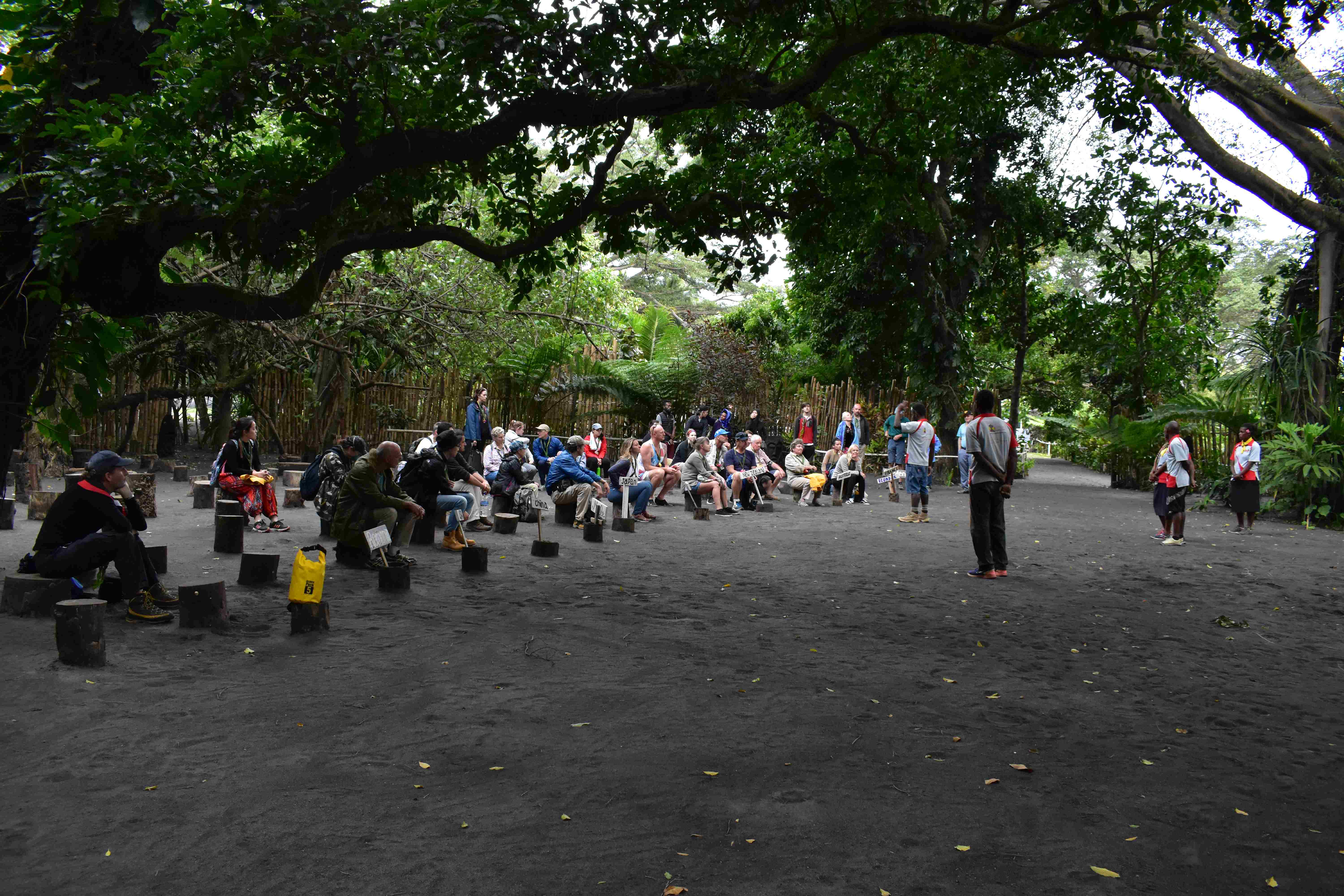 Mit einem 18-Plätzer legten wir die lediglich 45 Minuten lange Flugstrecke zurück. Während unsere Mitpassagiere das Erlebnis aus verschiedenen Winkeln dokumentieren mussten, wirkten wir bereits wie unbeeindruckte Routiniers, welche sie fast auslachten: ein 18-Plätzer? Noch nie zuvor gesehen?! Pffffffffff! 🙂 Eine Nacht erwartete uns in Tanna, eine einzige, denn sie genügte um dem Naturspektakel beizuwohnen. Auf der spärlich besiedelten und abgelegenen Insel standen uns zwei Übernachtungsmöglichkeiten zur Auswahl: sehr einfache einheimische Matratzen am Boden-keine Dusche habende-sich mitten in der Nähe des Vulkans befindende billige Räumlichkeiten, welche aber nur mit einem überteuerten Transport erreicht werden konnten – oder aber ein teures Hotel (viel zu teuer für das, was es anbot), dafür gratis Transport. Nach einer hochmathematischen Berechnung stellten wir fest, dass der Preis schlussendlich identisch war. In Anbetracht der frühen Abflugzeit am Tag darauf und keine allfälligen und zum Verpassen des Fluges führende Transportrisiken eingehen wollend, entschieden wir uns fürs Hotel – kamen allerdings bereit: zum Zeitpunkt des Abendessens verzichteten wir (sehr zum Schock des Personals) auf die Bestellung der im Preis nicht inbegriffenen und überteuerten Mahlzeit und knabberten fleissig an unseren Käse-, Biscuit- , Eier- und Apfelresten aus dem Rucksack. Ausserdem gab es nach der Vulkan-Tour auch ein Miniatur-Möchtegern-Schatten von einem Apéro, auf welchen wir uns trotzdem wie hungrige Studenten freuten, welche manchmal einfach am Uni- oder ETH-Eventschluss auftauchten um gratis den Bauch zu füllen. 🙂