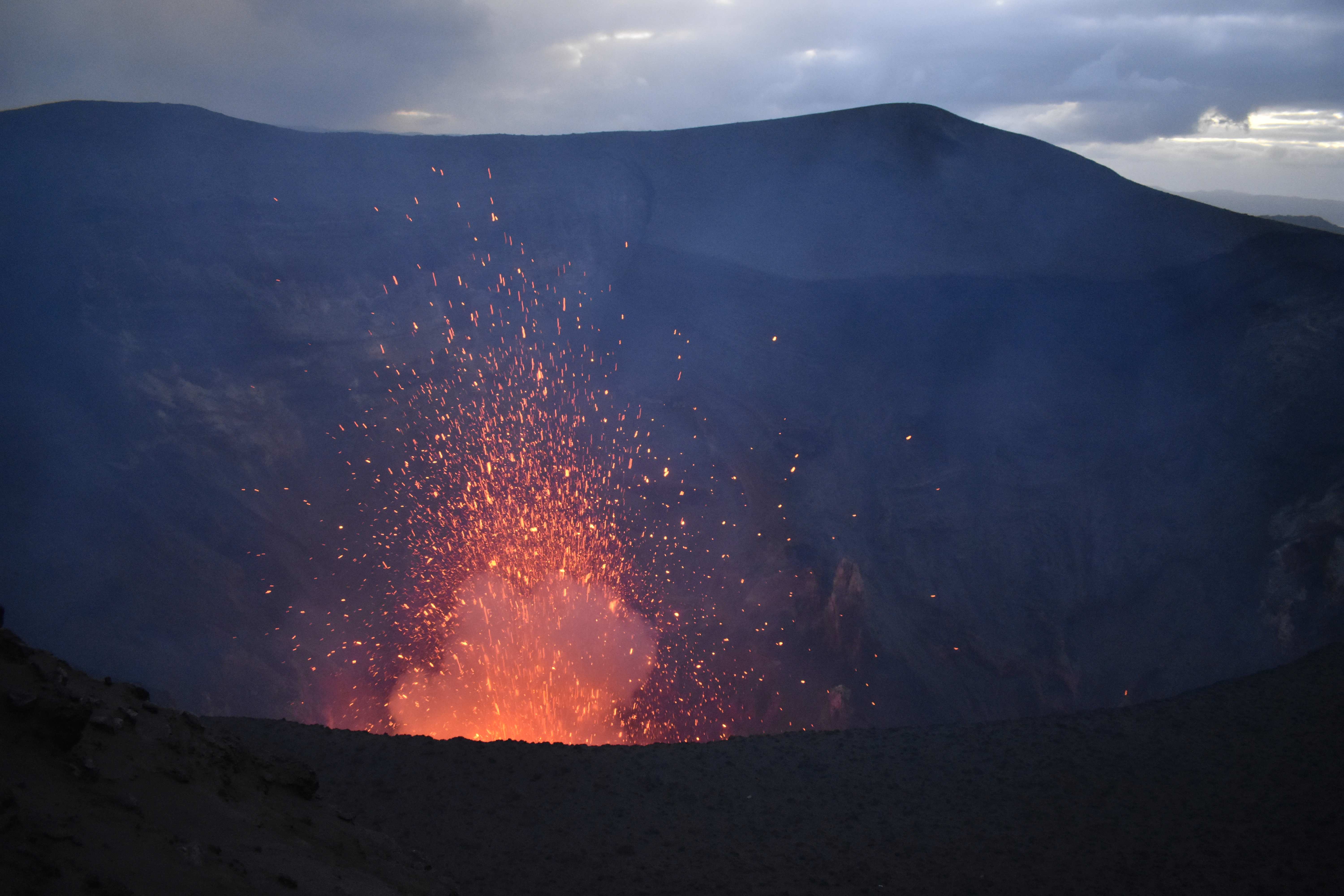 Schon mal auf einer Insel mit einem Vulkan gewesen? Ja, wir auch! Schon mal am Krater des Vulkanes gestanden und diesen aus der Nähe betrachtet? Ja, wir auch! Schon mal Vulkanasche in der Luft schweben gesehen? Ja, wir auch! Schon einen Vulkan Rauch herausspucken erlebt? Ja, wir auch! Hmmm… mal schauen ob wir da etwas Abwechslung reinbringen können! Schon mal einen Vulkan zittern, beben und wie aus einem Kochtopf unter Druck donnern und dröhnen erlebt? Nein, wir auch nicht! Schon mal neben der Asche auch feuerwerkartige Glutfontänen aus dem Vulkan herausragen gesehen? Nein, wir auch nicht! Schon mal diese in der Nacht, am Kraterrand des hoch aktiven Vulkanes stehend bewundert? Nein, wir auch nicht! Also was soll’s… tönt überteuert aber einmalig! Klingt nach einem Fall für das Spezialteam „Rafi und Ina unterwegs!“ 🙂