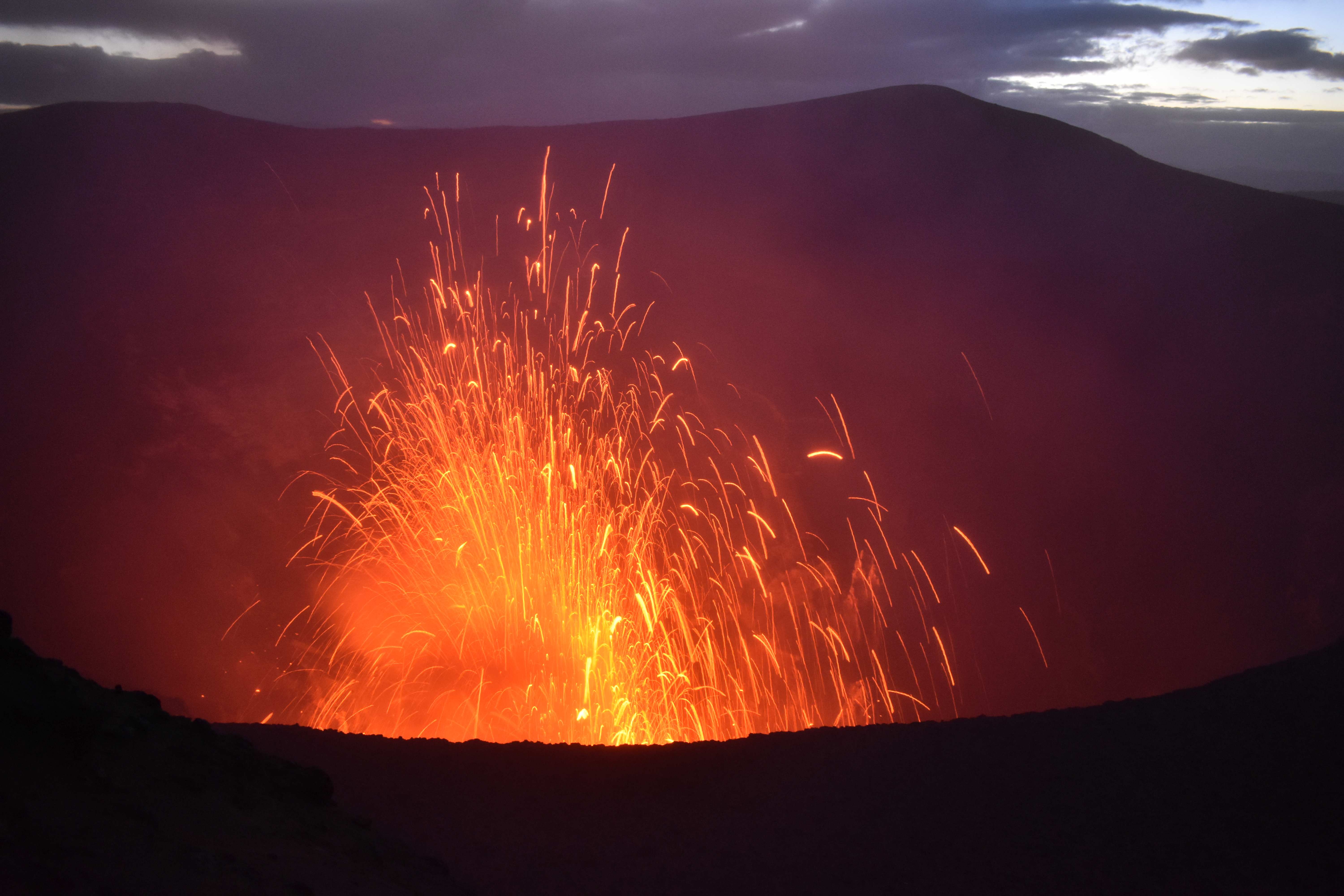 Ati fost vreodata pe o insula cu un vulcan? Da, si noi! Ati fost vreodata la gura craterului unui vulcan si l-ati privit de aproape? Da, si noi! Ati vazut vreodata cenusa de vulcan care pluteste prin aer? Da, si noi! Ati vazut vreodata cum un vulcan scuipa fum? Da, si noi! Hmmmm… sa vedem daca putem sa dezmortim lucrurile un pic aici! Ati trait sentimentul de a fi aproape de un vulcan care bubuie, trepideaza si face un zgomot de parca ar fi un monstru ancestral care suspina din adancuri? Nu, nici noi! Ati vazut vreodata arteziene de magma care tasnesc dinlauntrul vulcanului? Nu, nici noi! Ati stat vreodata la marginea craterului unui vulcan activ pe timp de noapte? Nu, nici noi! Suna piperat de scump, insa unic… suna ca si un caz pentru echipa speciala „Rafi si Ina in actiune!“ 🙂